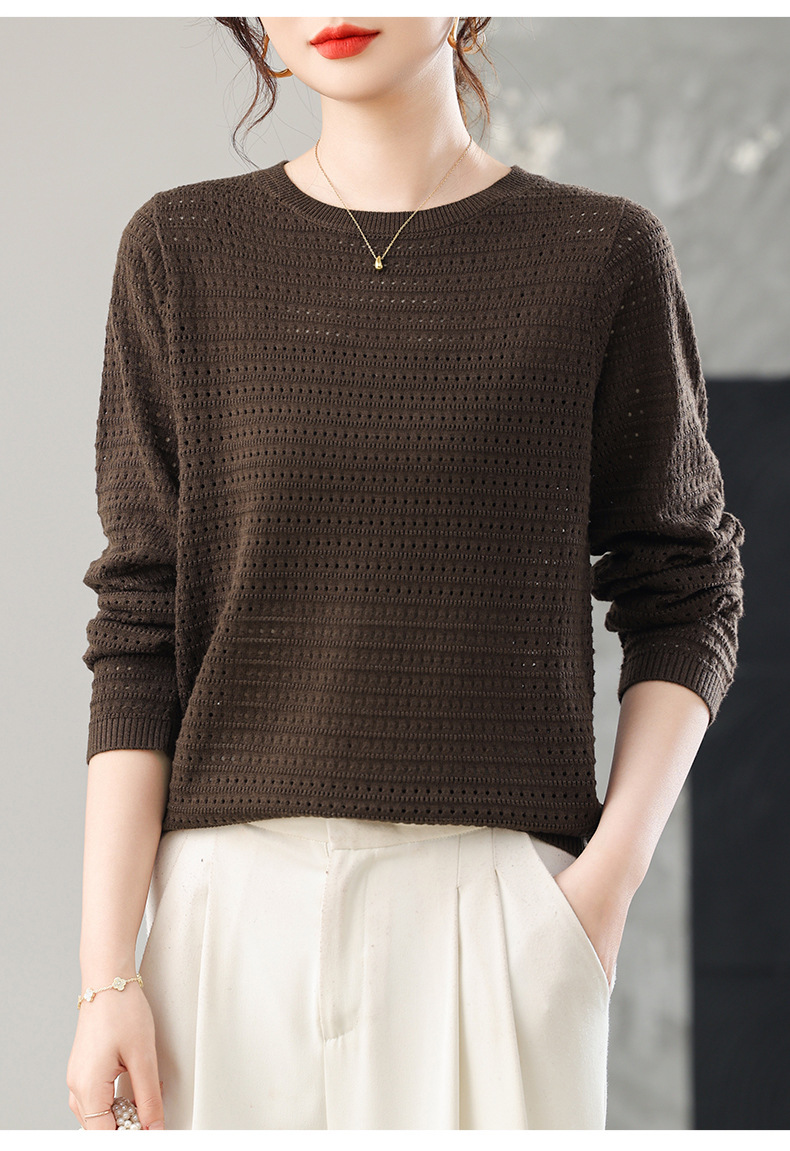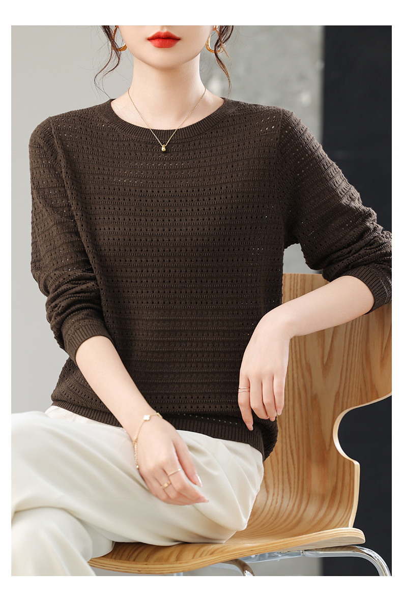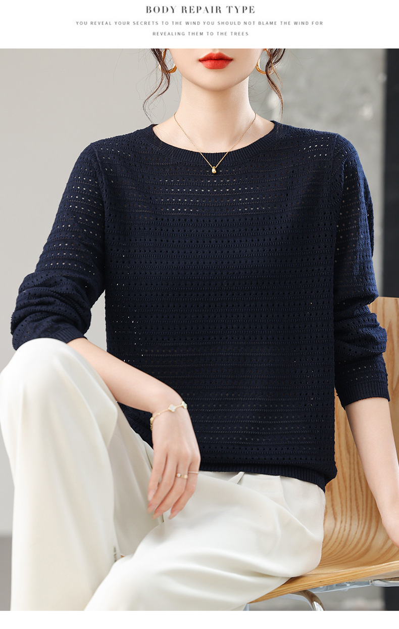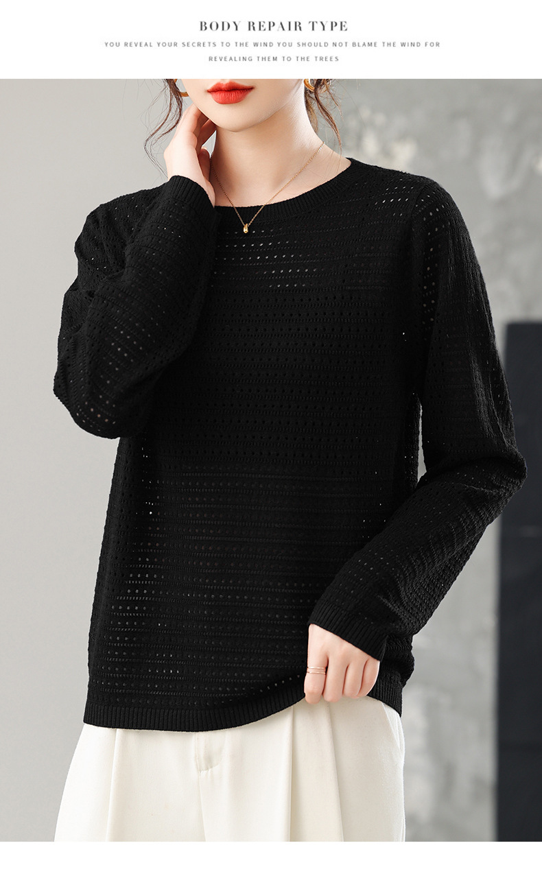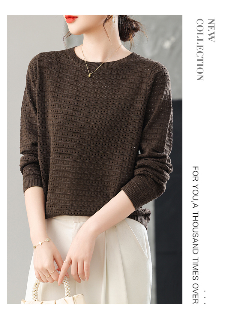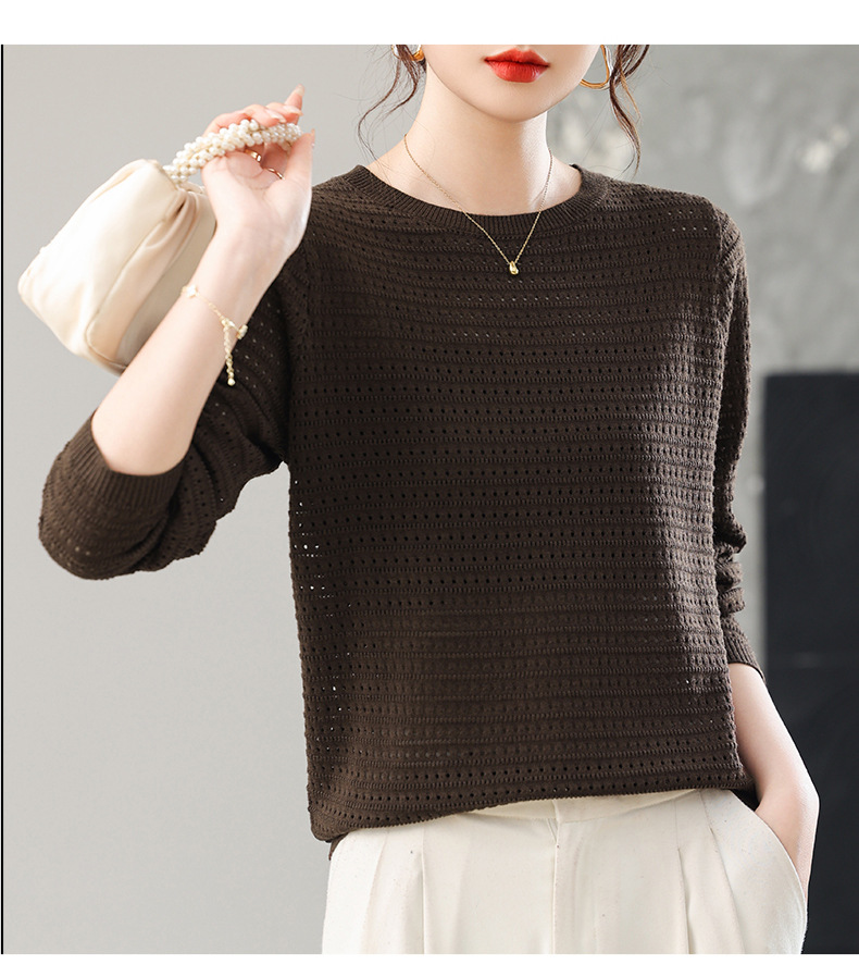 CC早秋薄款针织衫长袖镂空上衣秋装2025新款女装圆领宽松打底衫毛衣