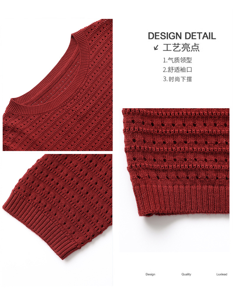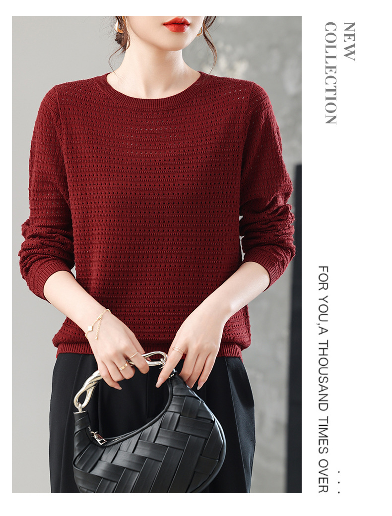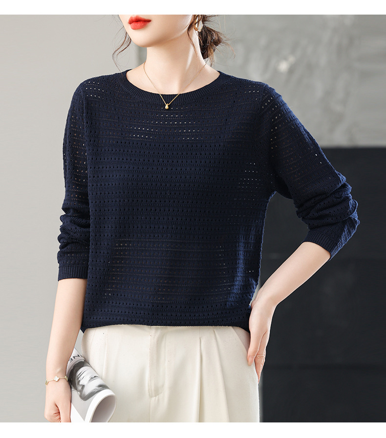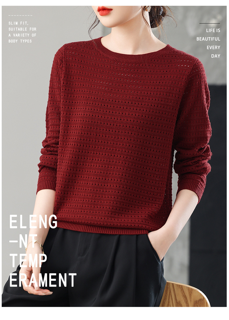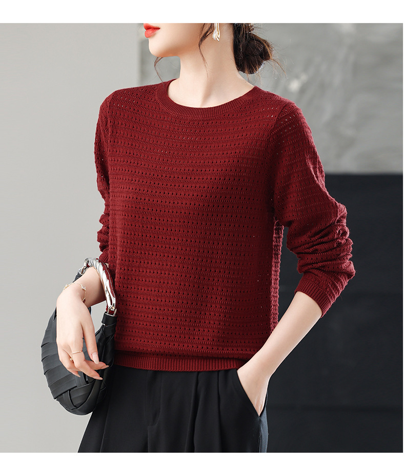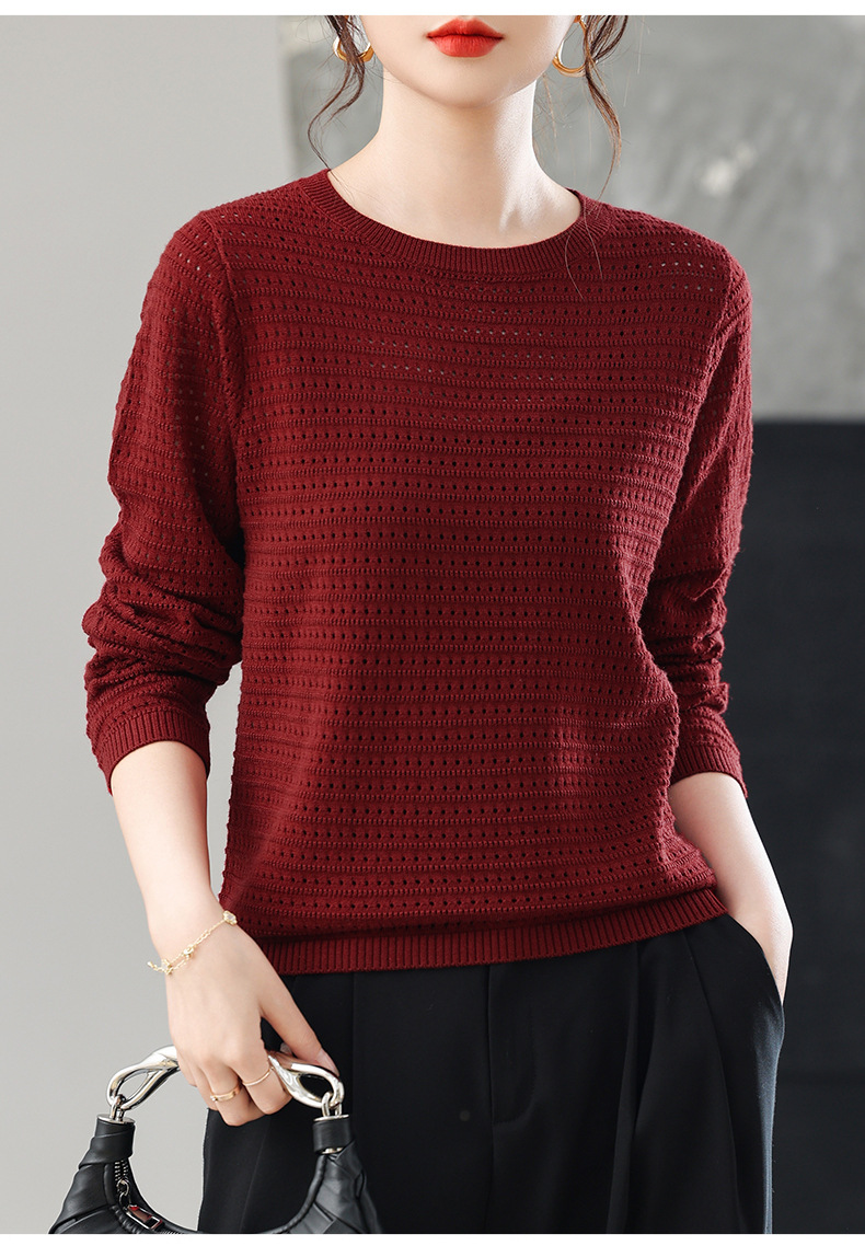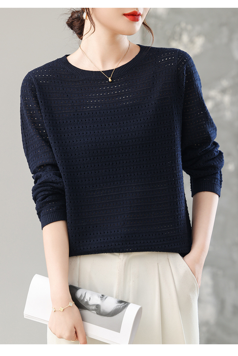 CC早秋薄款针织衫长袖镂空上衣秋装2025新款女装圆领宽松打底衫毛衣
