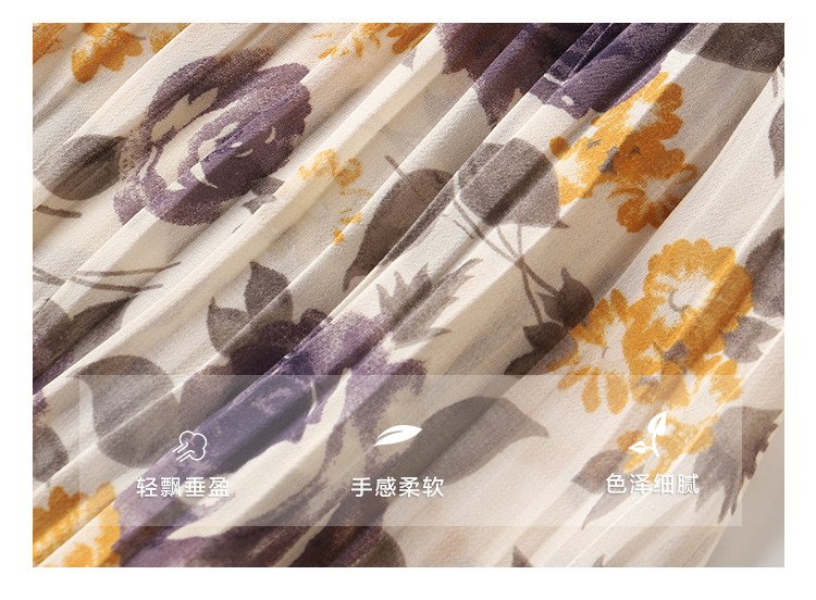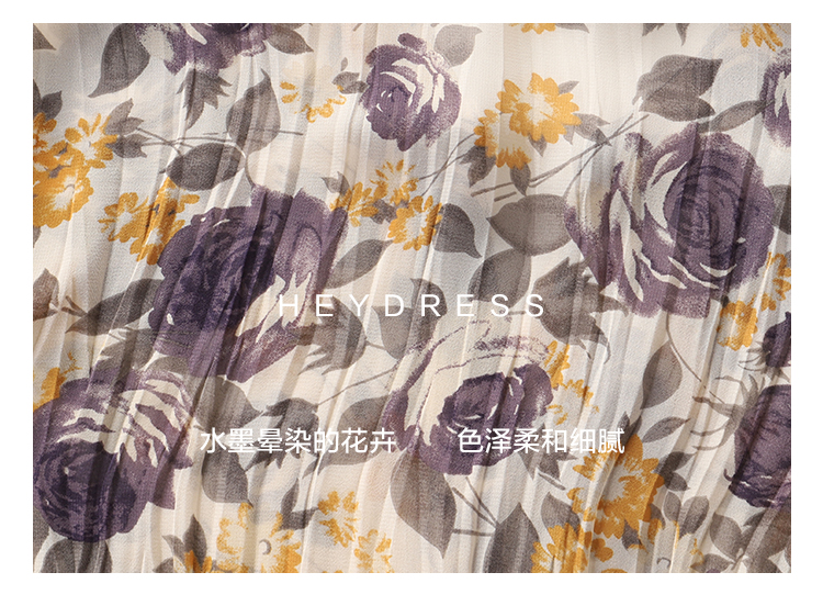 为了让花色更加的鲜亮灵动, 在原有垂坠轻柔的雪纺上,进行后工艺高温压褶处理, 自然形成的不规则褶皱, 配合上水墨晕染的花卉充满了浪漫的艺术情绪。 轻飘垂盈,贴合肌肤,雅致的水印色泽柔和细腻。 内里有添有雪纺裙衬和小吊带, 细节售后处处显示出扎实的分量感。 低调有内涵,朦胧的文艺美感一触即发。 |