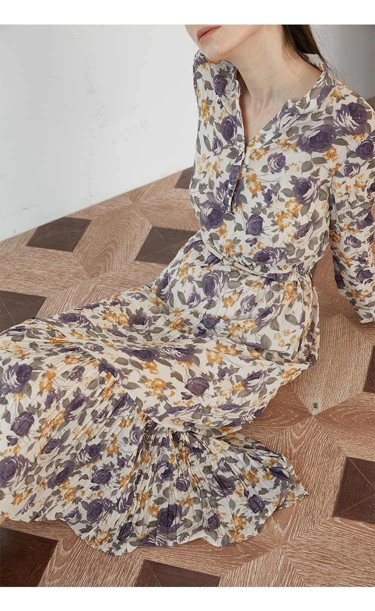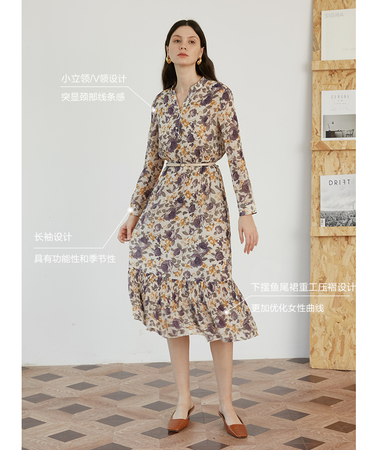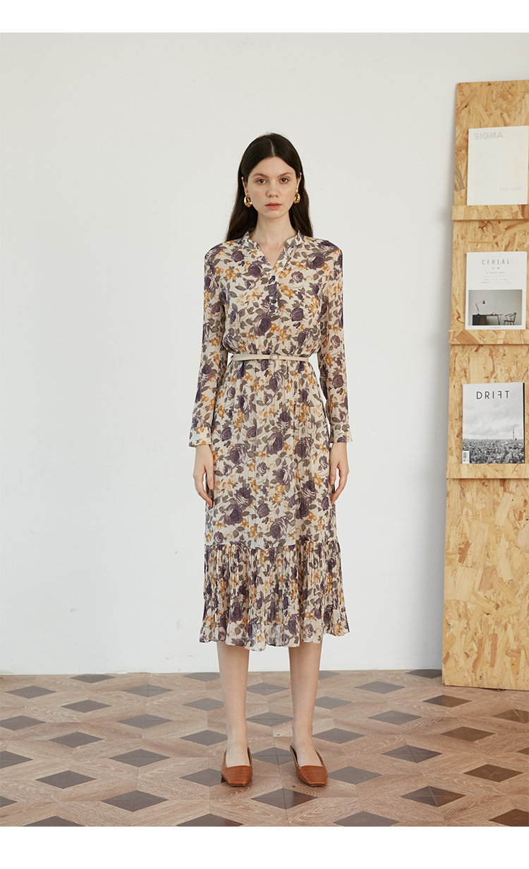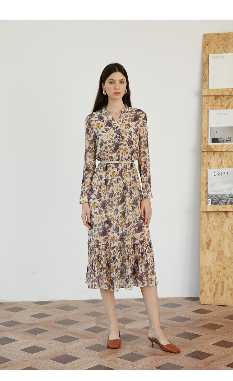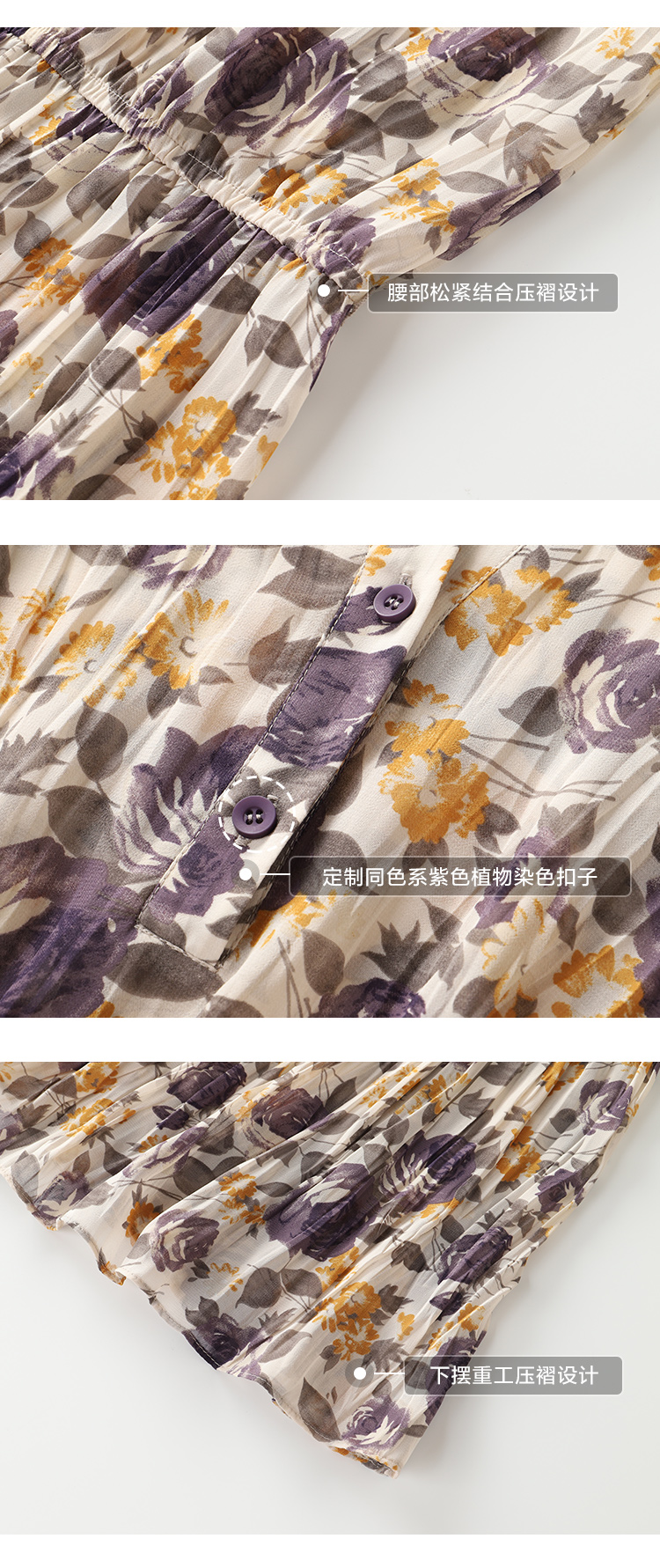 穿上碎花裙的你,自有风情! 干净清新的奶油底色, 晕染蔓延出层层墨韵般黄紫色的花影 柔和自然蜷蜷温柔, 浪漫的要掐出水来。 大面积的花色使用隐隐绰绰, 别有一番艺术情绪, 斑斓的色彩及褶皱肌理的叠加, 上身一刻很美! 整体气质偏向轻熟一些的风格, 恬淡幽静,朦胧的文艺美感一触即发。 初秋的轻盈浪漫体现的恰到好处~ 予生命一身温柔的想象,出片率很高哦。