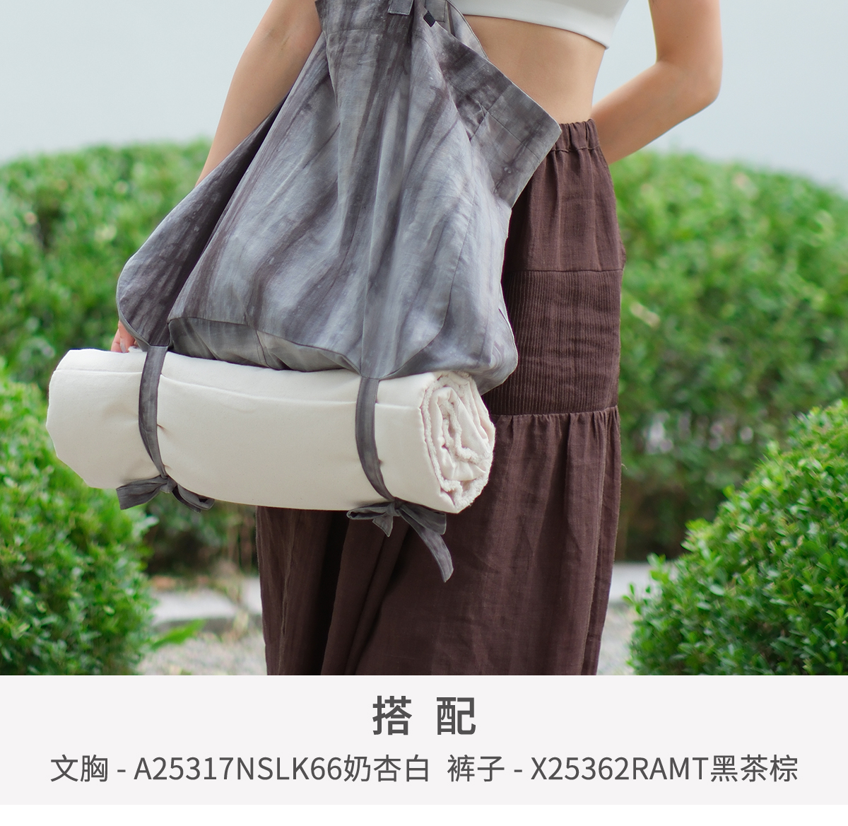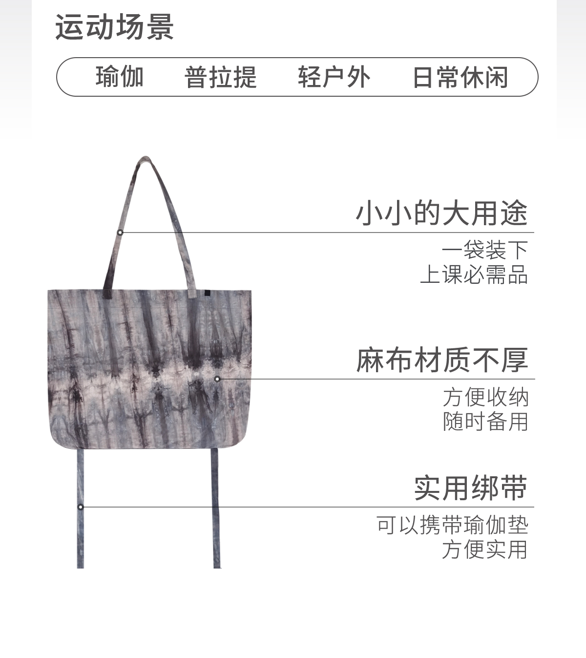 爱暇步2025秋新款国风流年瑜伽运动健身包女大容量扎染棉麻单肩包