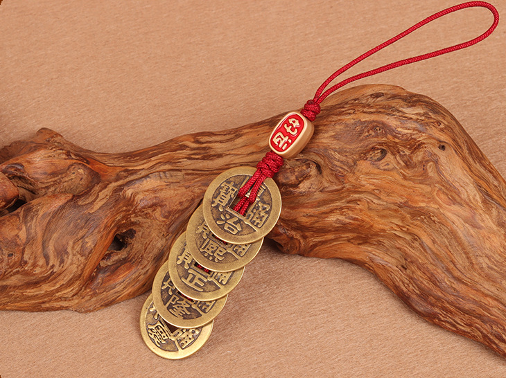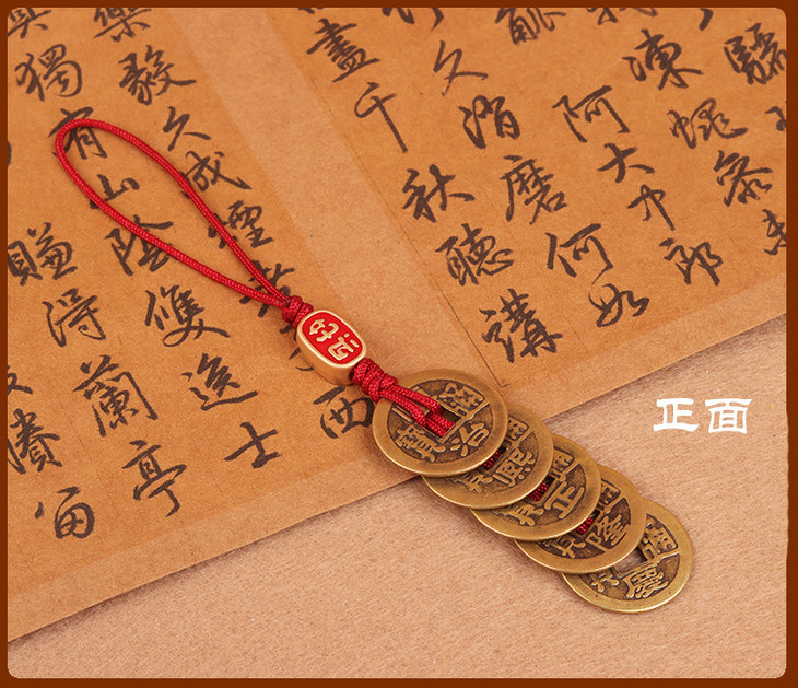 太清黄铜五帝钱汽车钥匙扣挂件