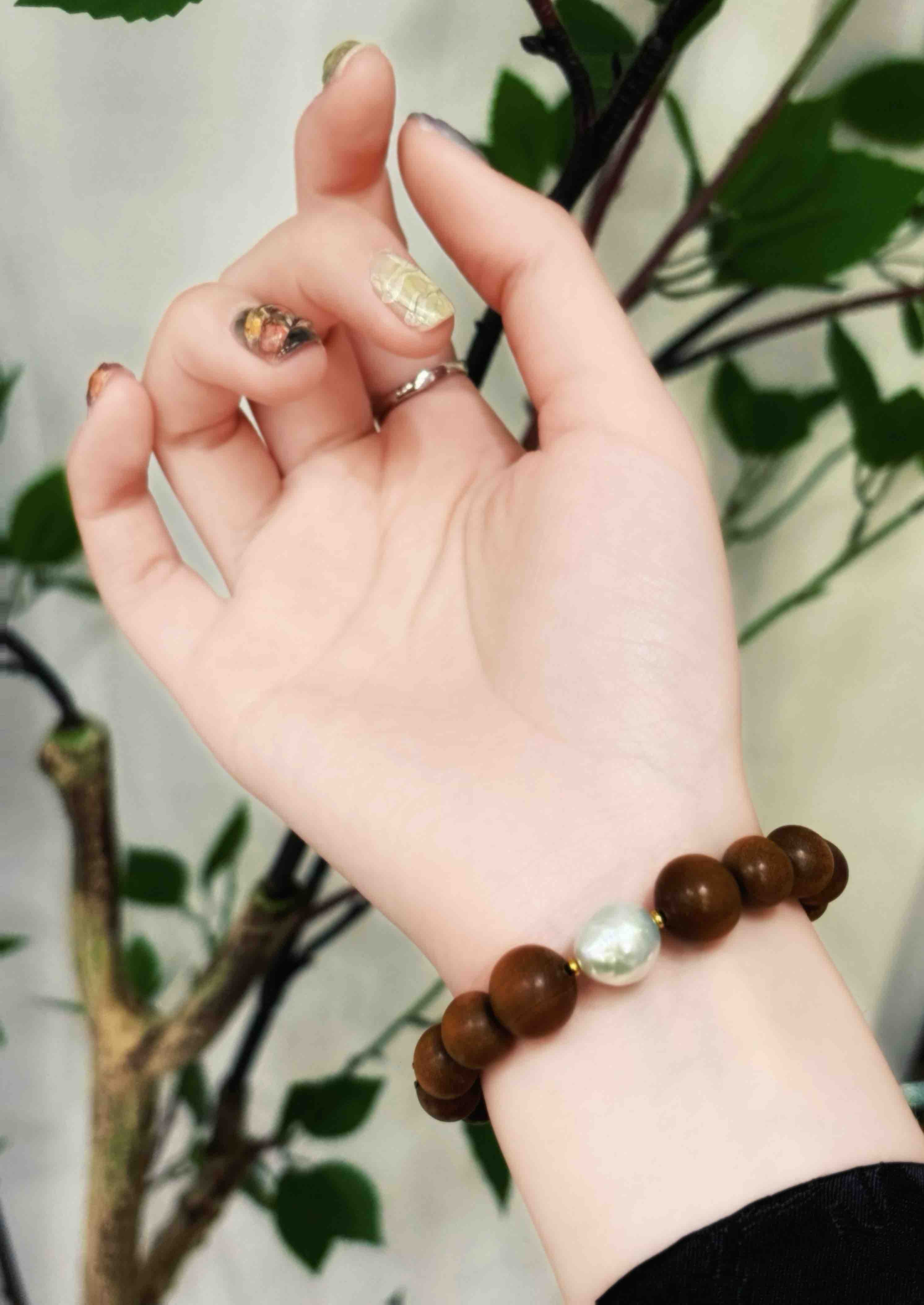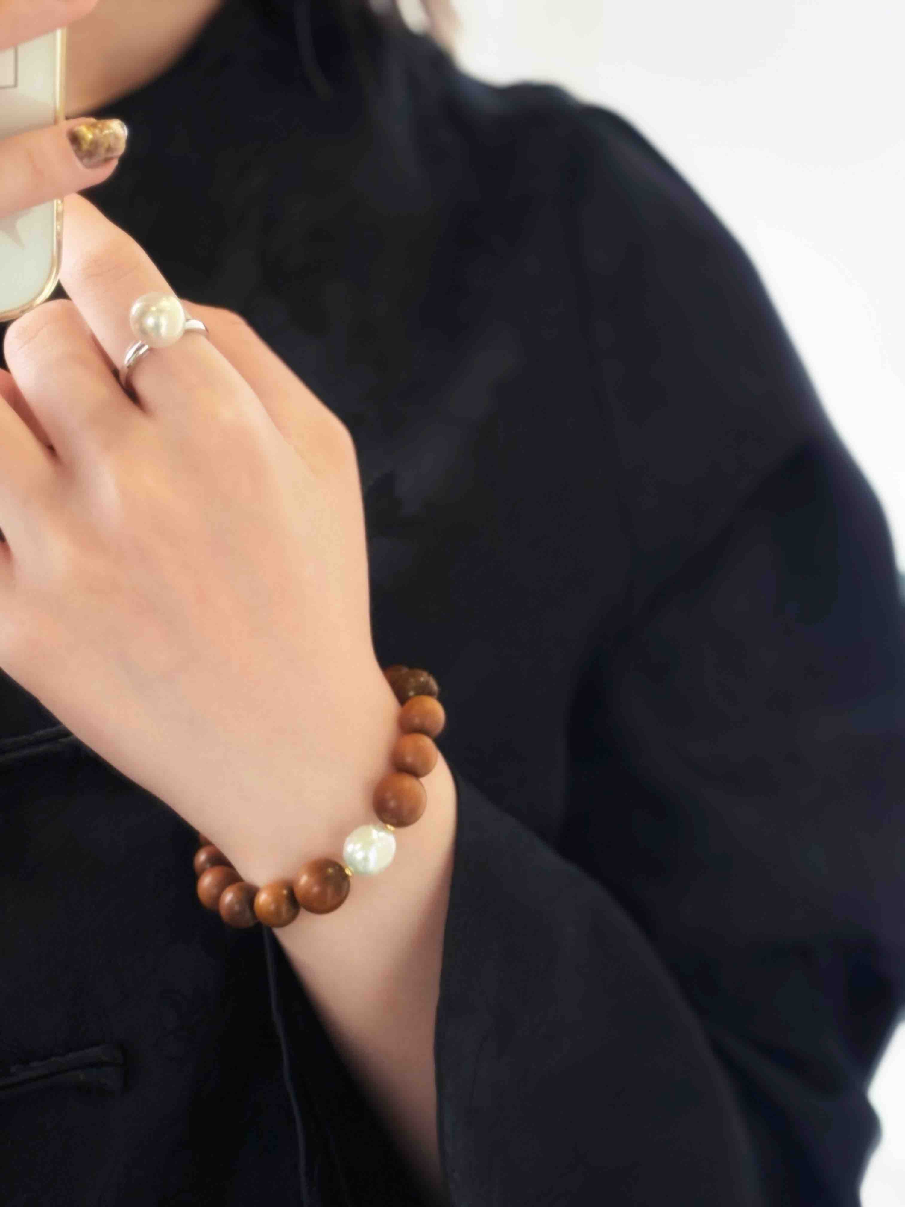 安静和自由肆意流淌 时髦和古风自在穿梭 檀香+巴洛克ji光淡水珍珠手串 8-12mm 纯天然无处理无添加 老山檀 香味好有治愈感