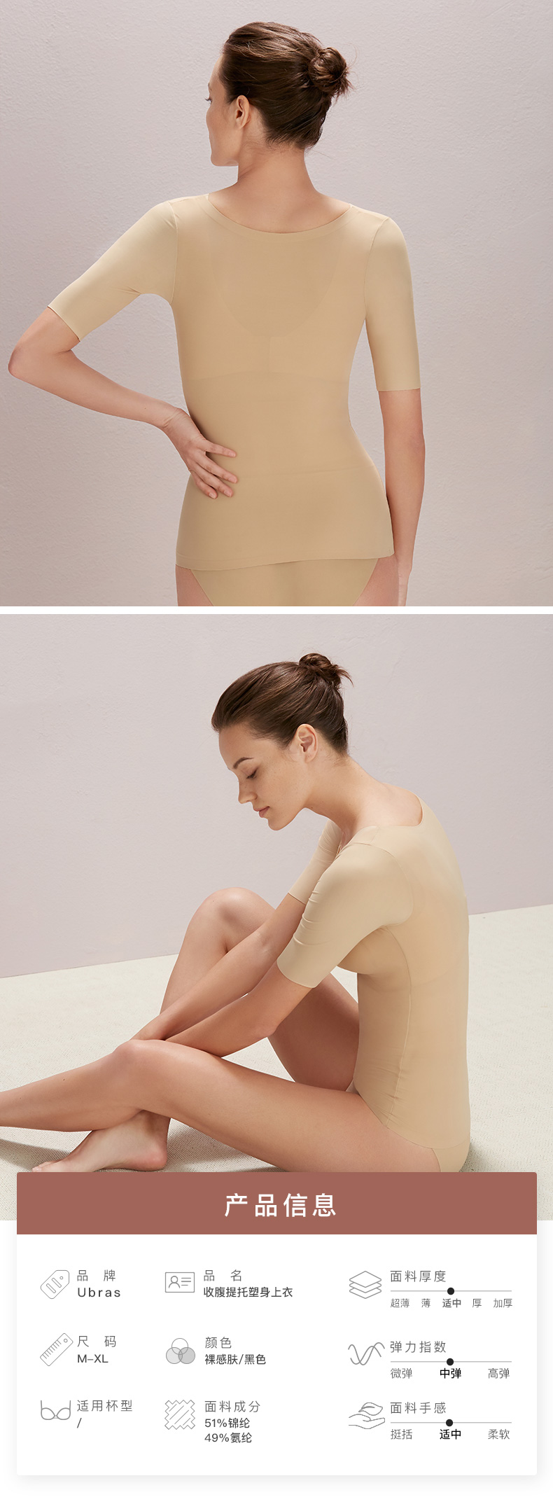 Ubras收腹提托塑身上衣无痕舒适透气打底上衣女收腹 束腰