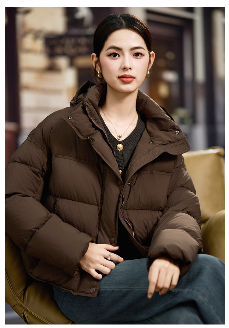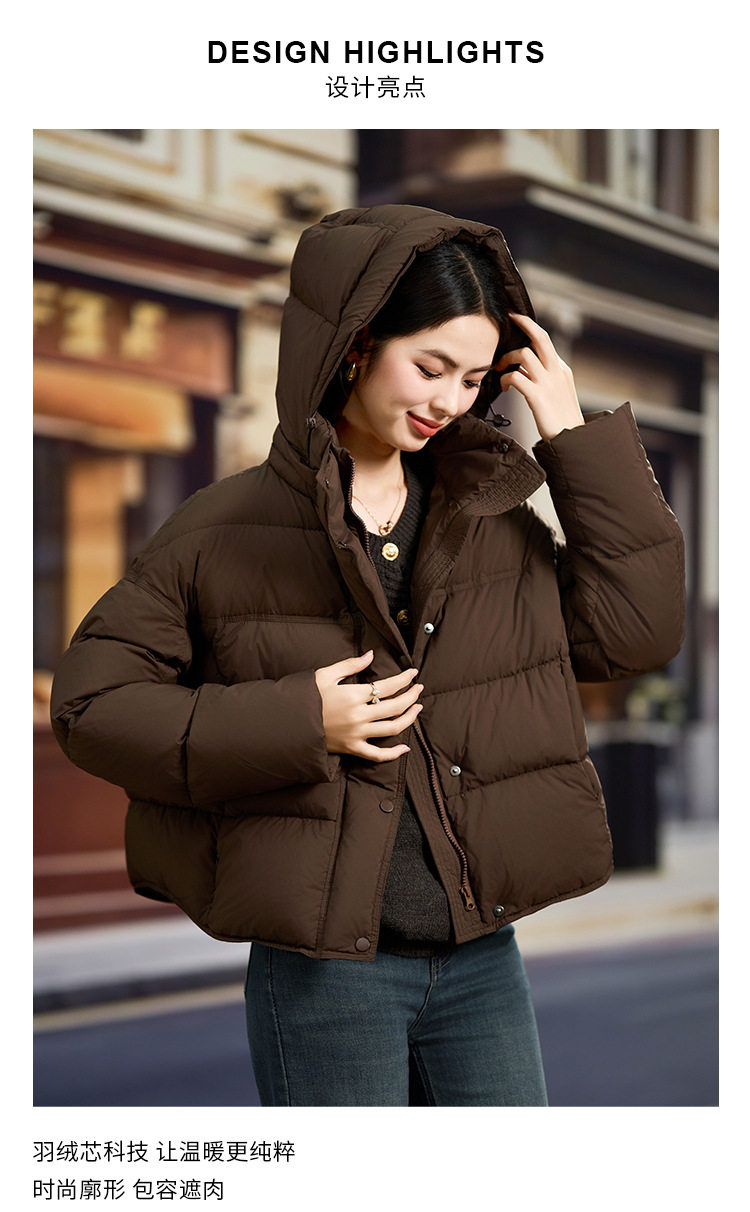 「高货kbnq」全新升级【铂金会员781/天猫1059/差价278】(11151)洛诗琳轻奢小个子羽绒服2025冬季新款连帽保暖短外套女