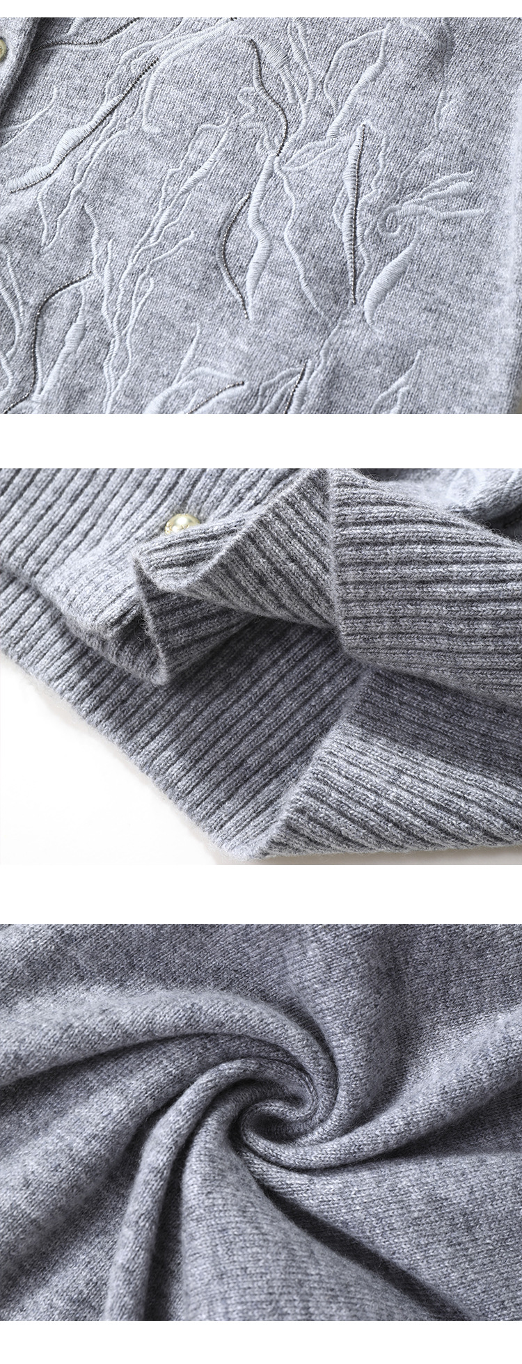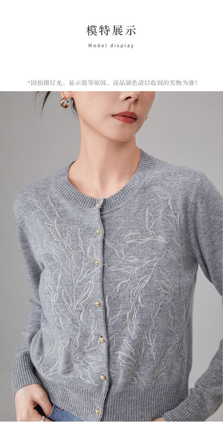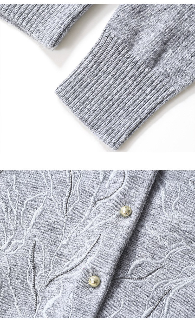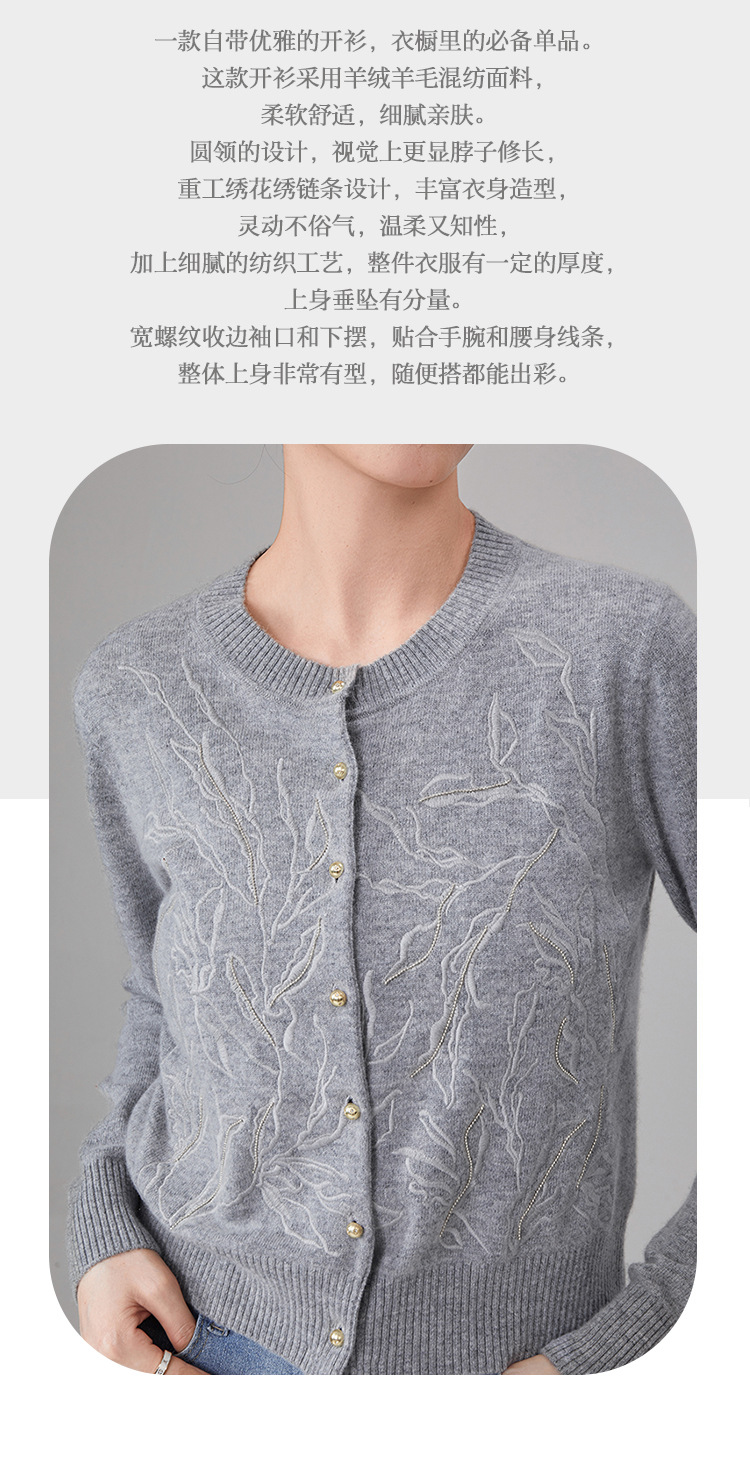【hrf】全新升级【铂金会员551/天猫739/差价188】(11822) 洛诗琳秋冬新款重工花卉链条刺绣百搭羊绒混纺针织开衫