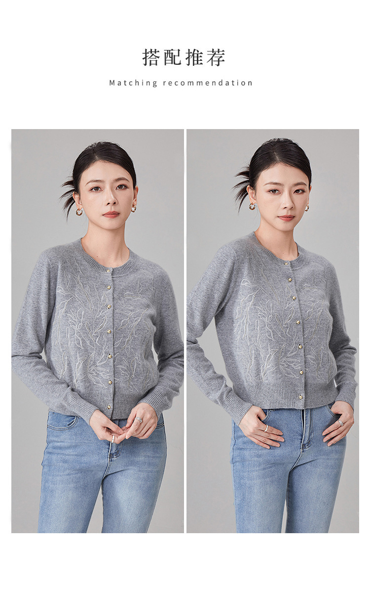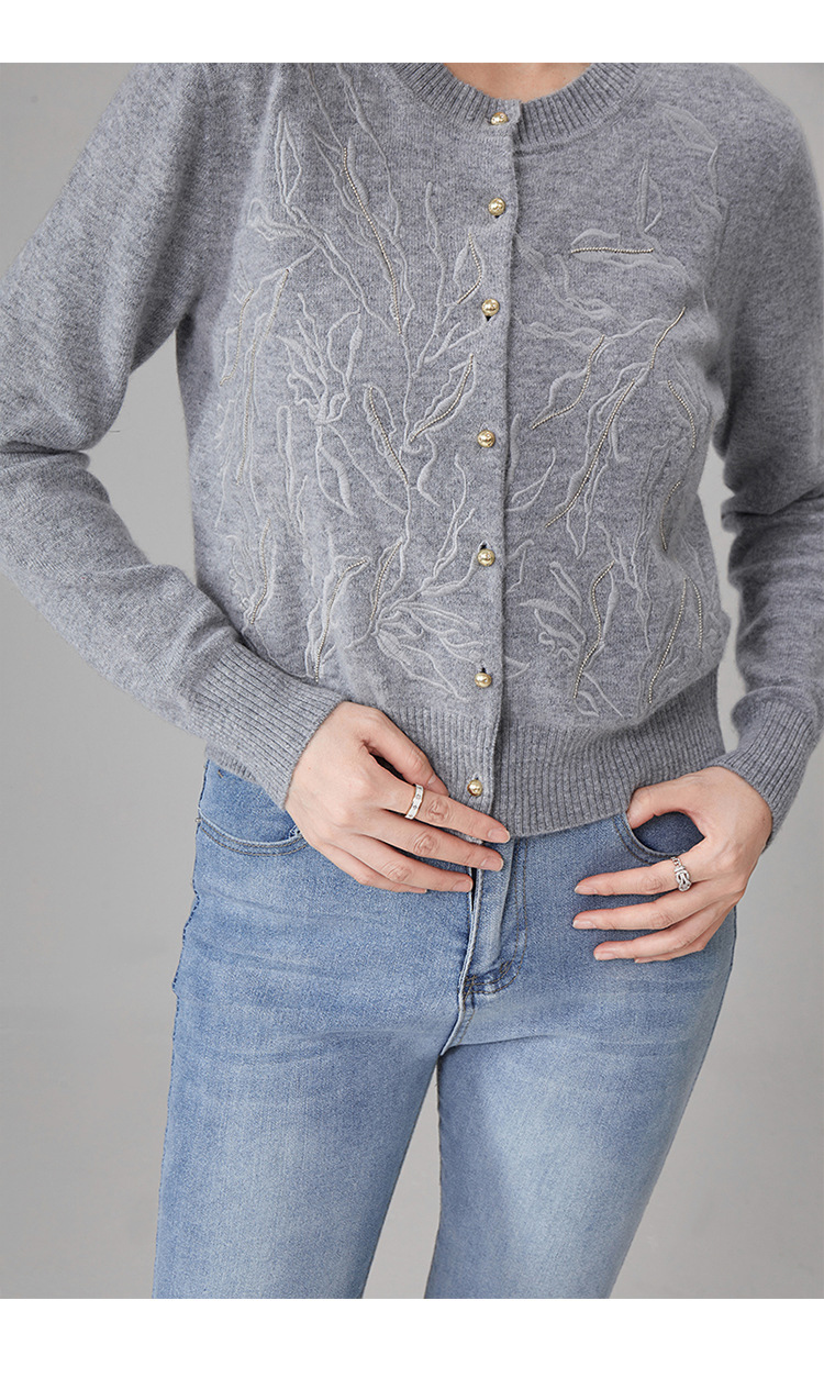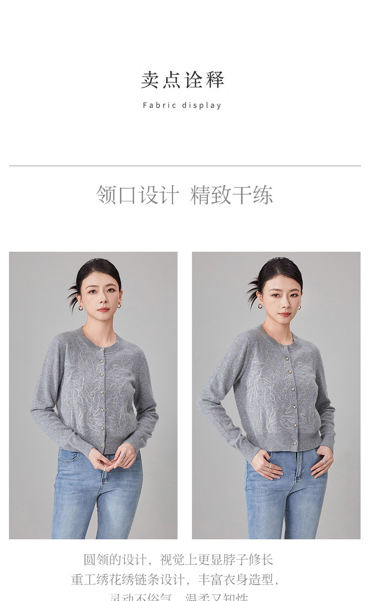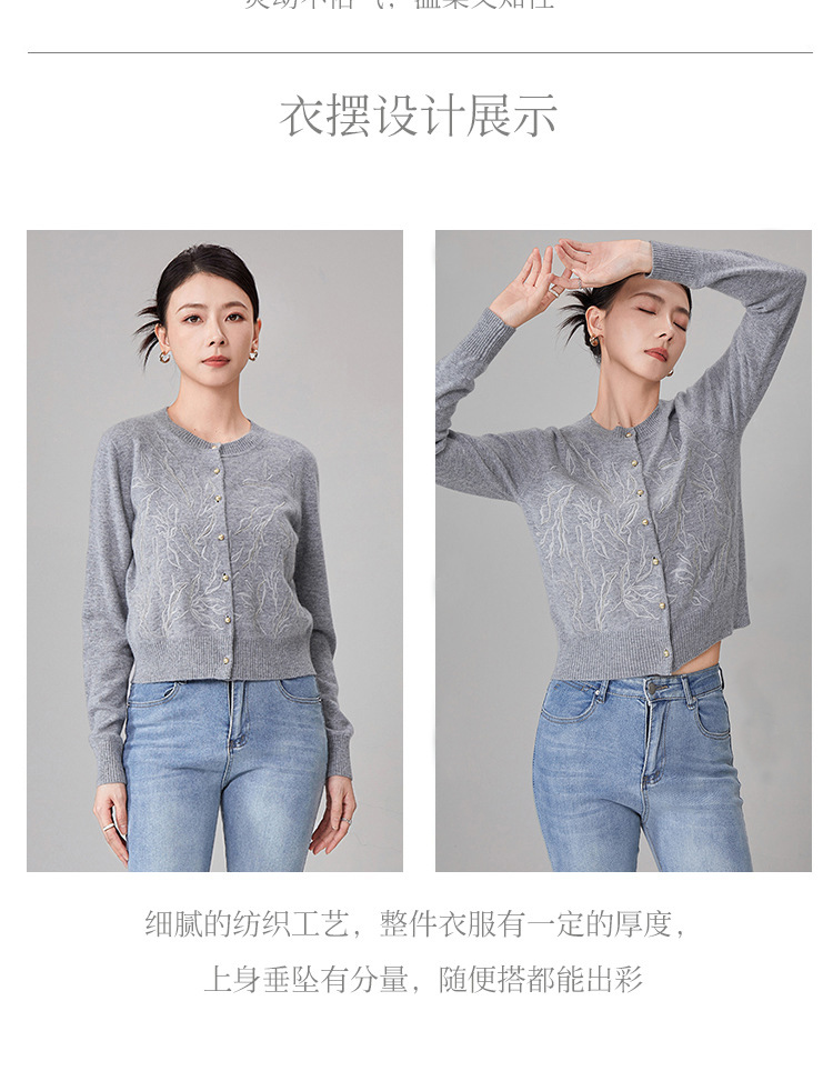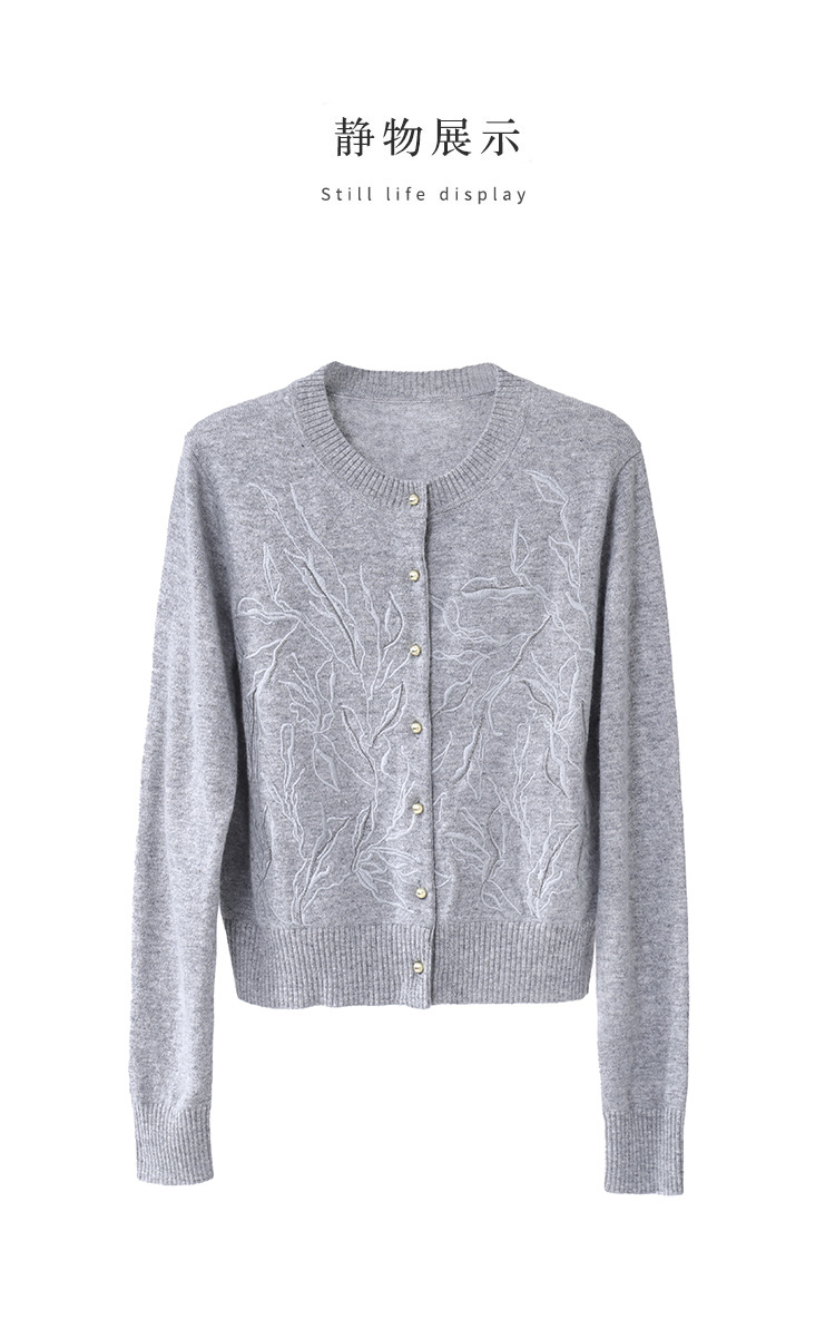 【hrf】全新升级【铂金会员551/天猫739/差价188】(11822) 洛诗琳秋冬新款重工花卉链条刺绣百搭羊绒混纺针织开衫