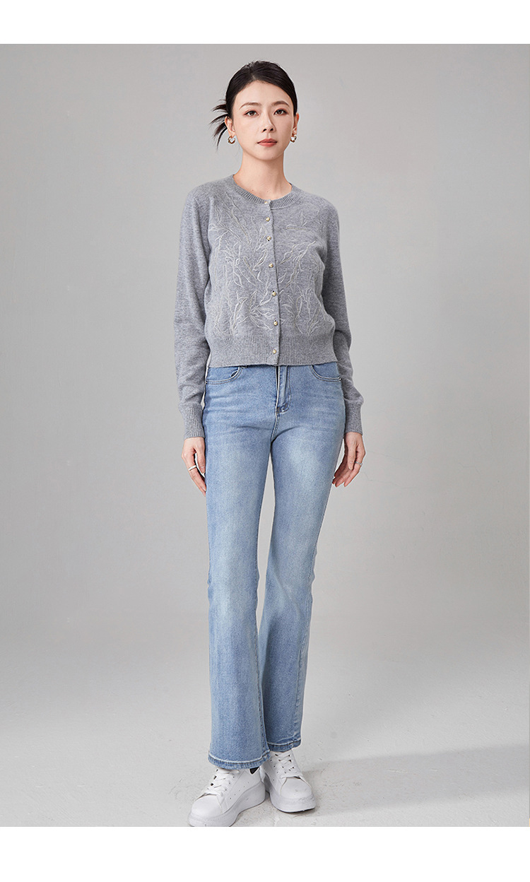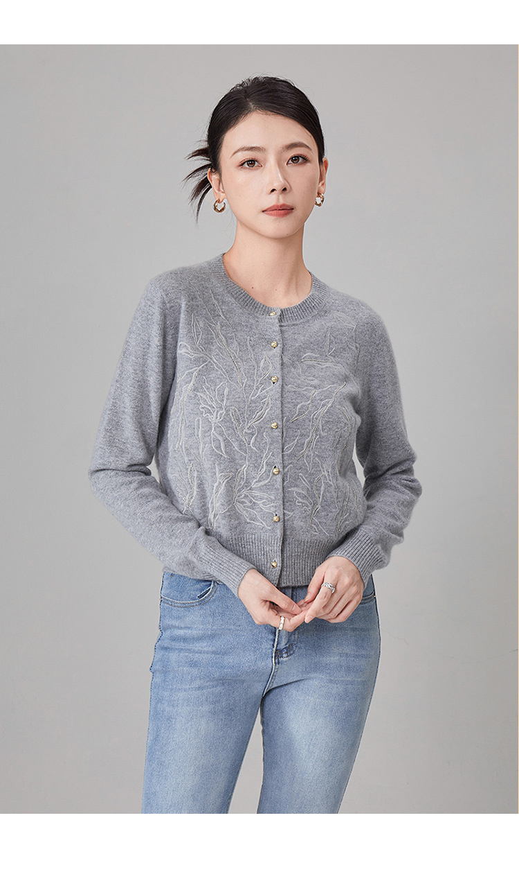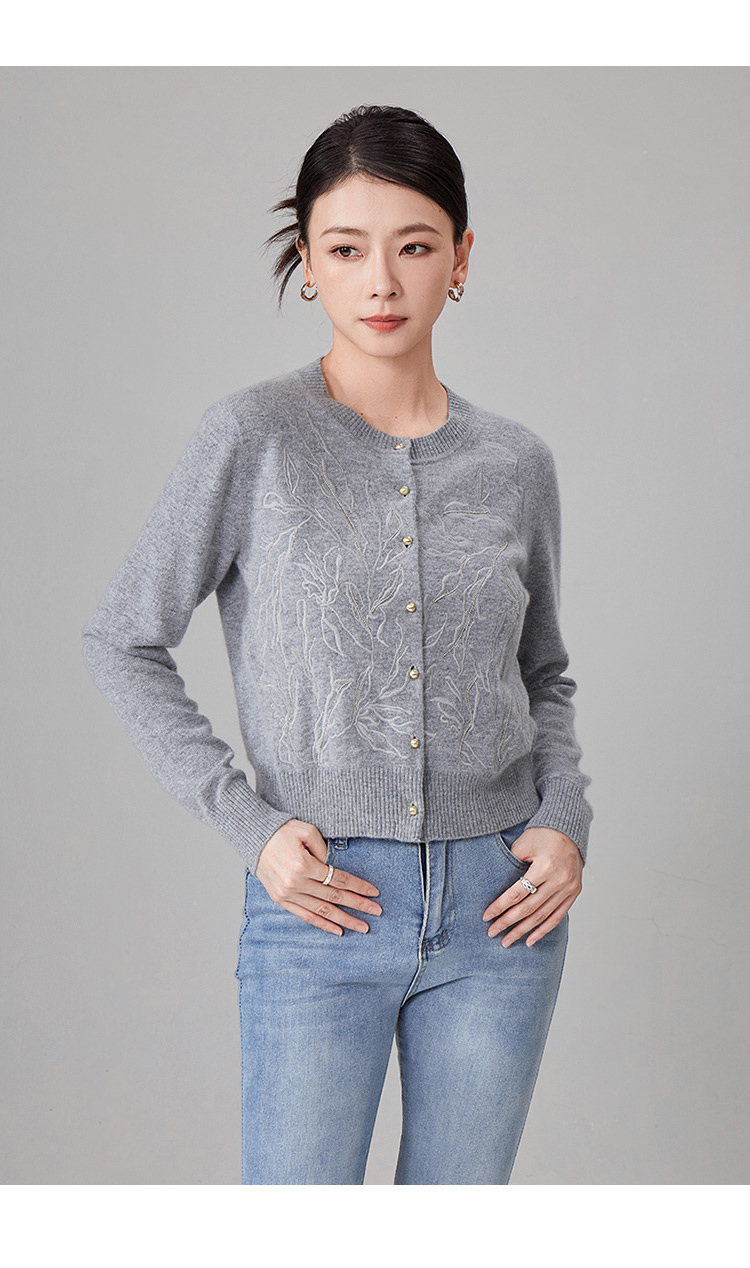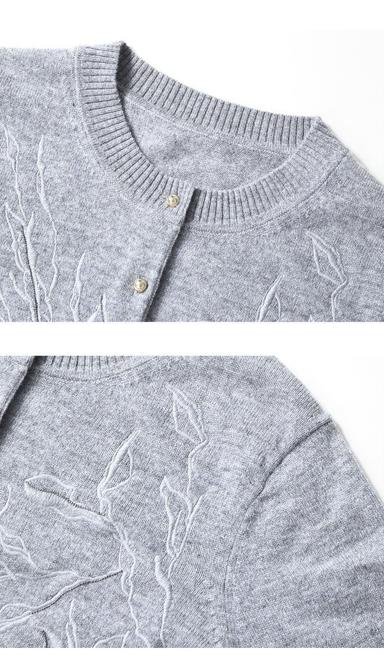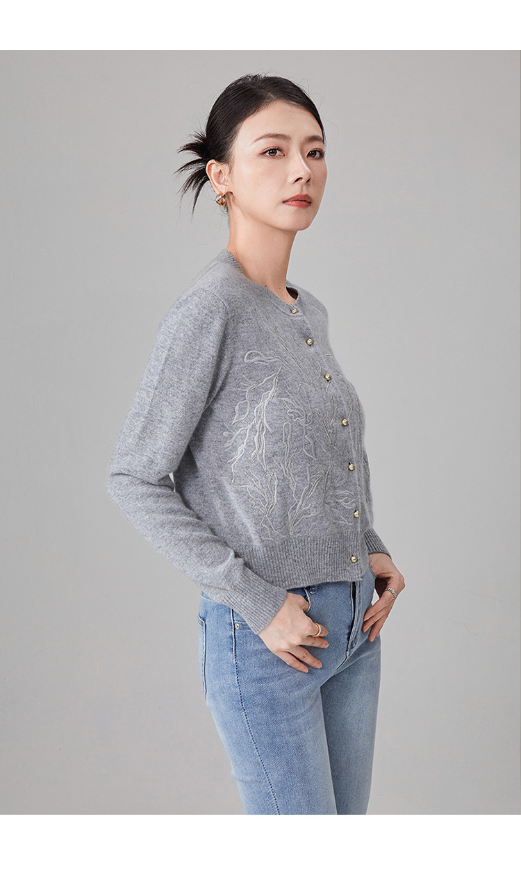 【hrf】全新升级【铂金会员551/天猫739/差价188】(11822) 洛诗琳秋冬新款重工花卉链条刺绣百搭羊绒混纺针织开衫
