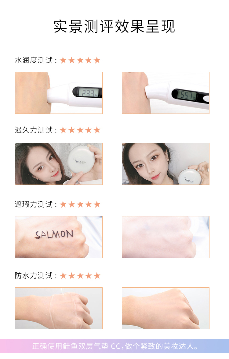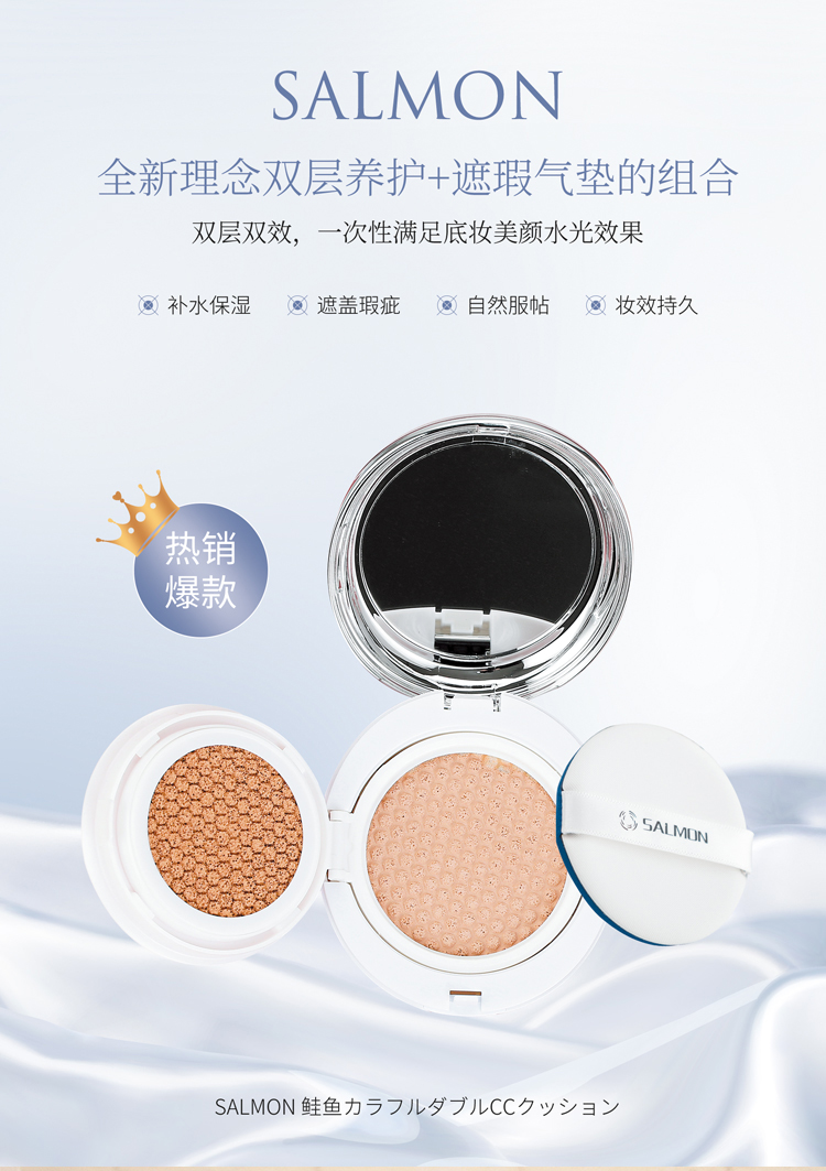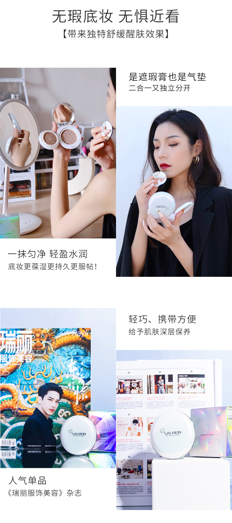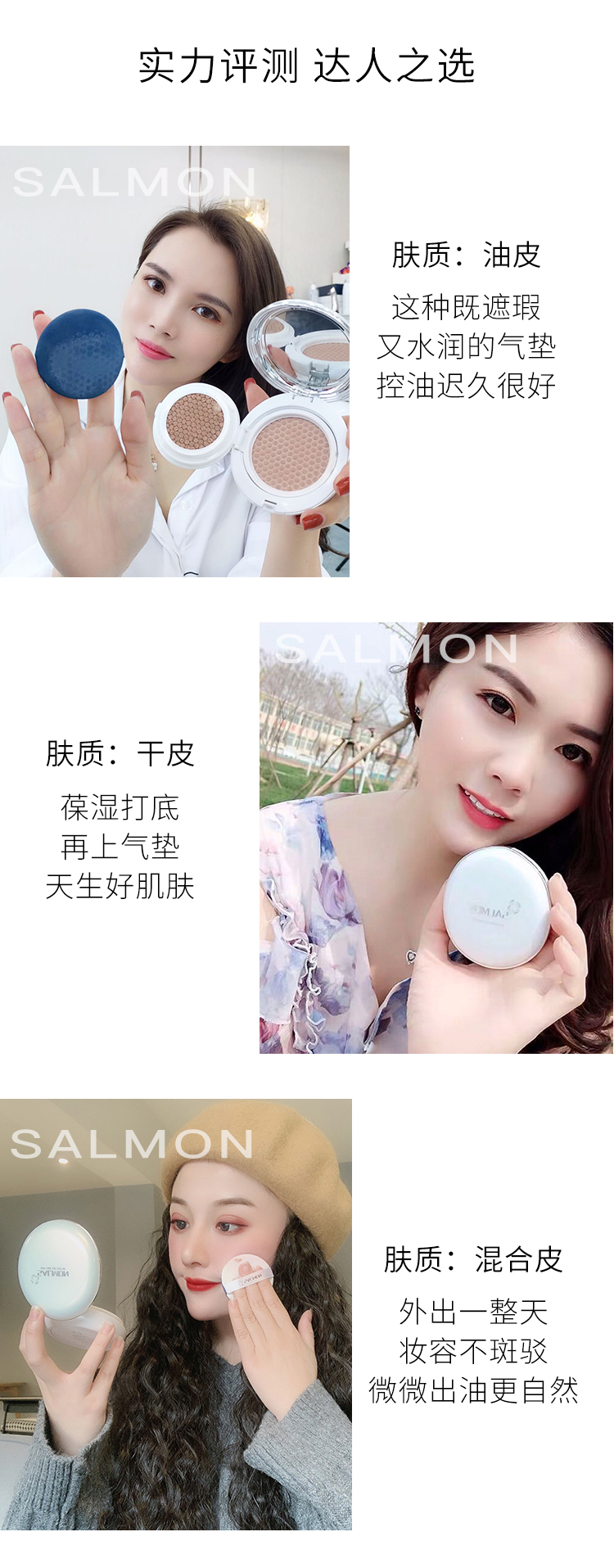 国内品牌方带防伪 日本SALMON鲑鱼气垫 双层bb霜保湿控油持久遮瑕