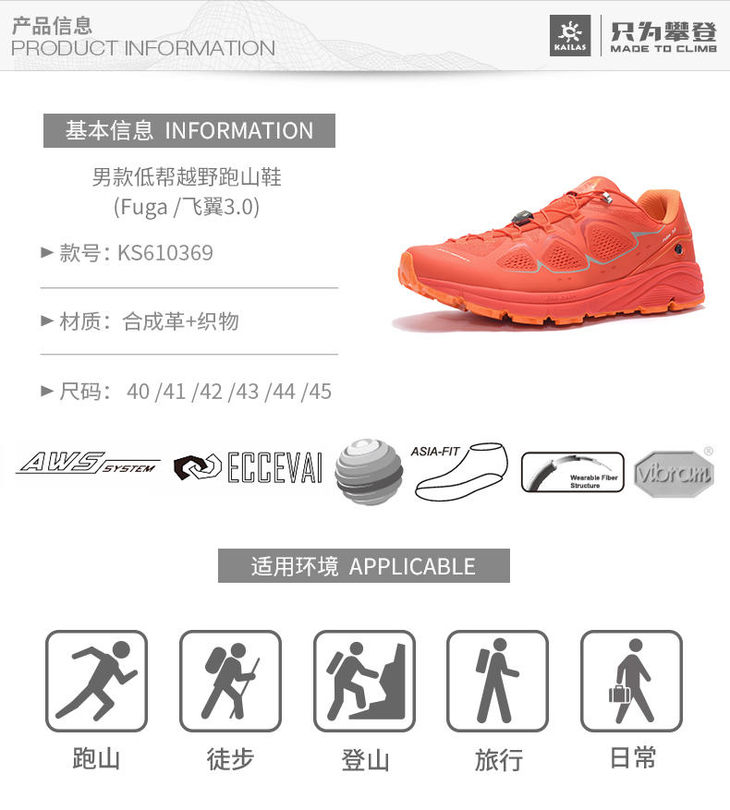 粤七 男款低帮越野跑山鞋(Fuga /飞翼3.0) KS610369跑马拉松比赛越野跑步耐力跑训练慢跑健身徒步运动
