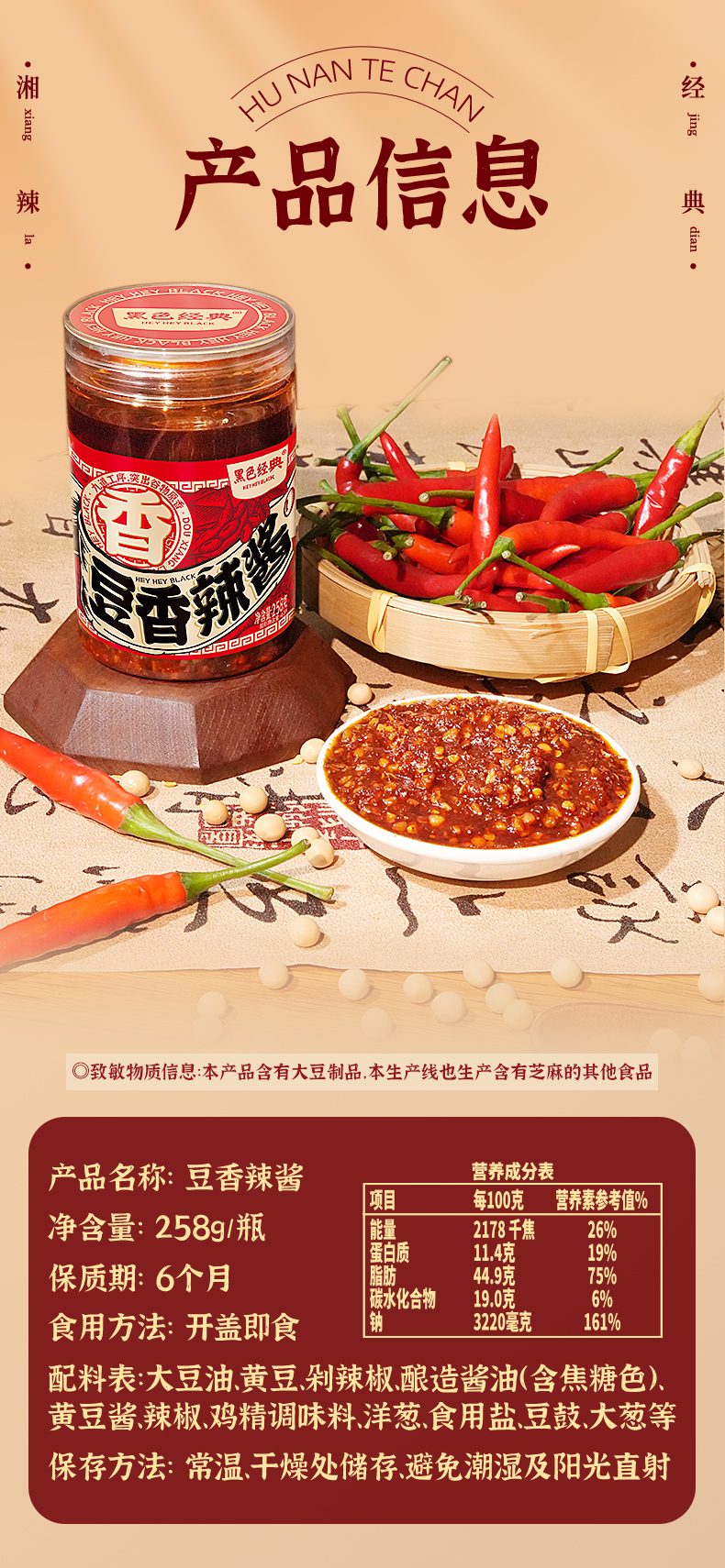【社群9.9秒杀】黑色经典原创豆香辣酱258g/瓶 九道工艺 豆香满满 门店臭豆腐同款原料大豆