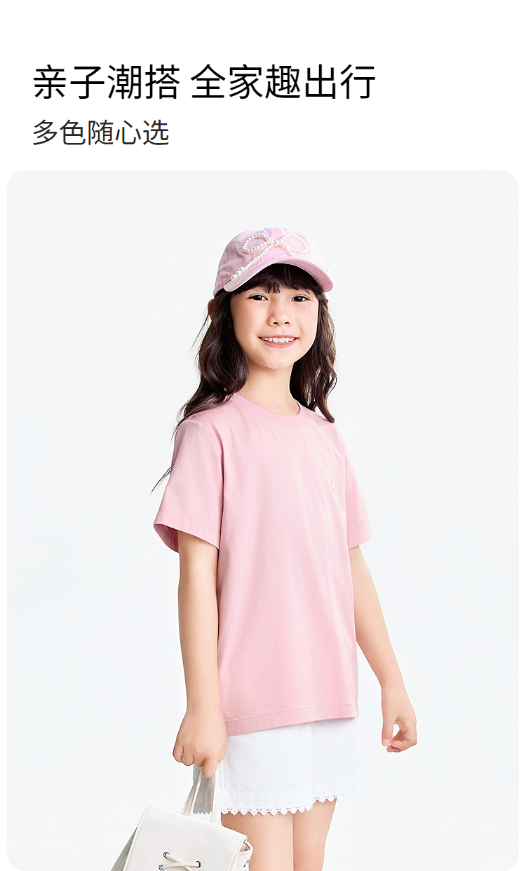 【超舒衣·新疆长绒棉】男女童安舒棉亲子T亲肤柔软圆领短袖T恤夏季新款安奈儿童装实体店同款AM621279