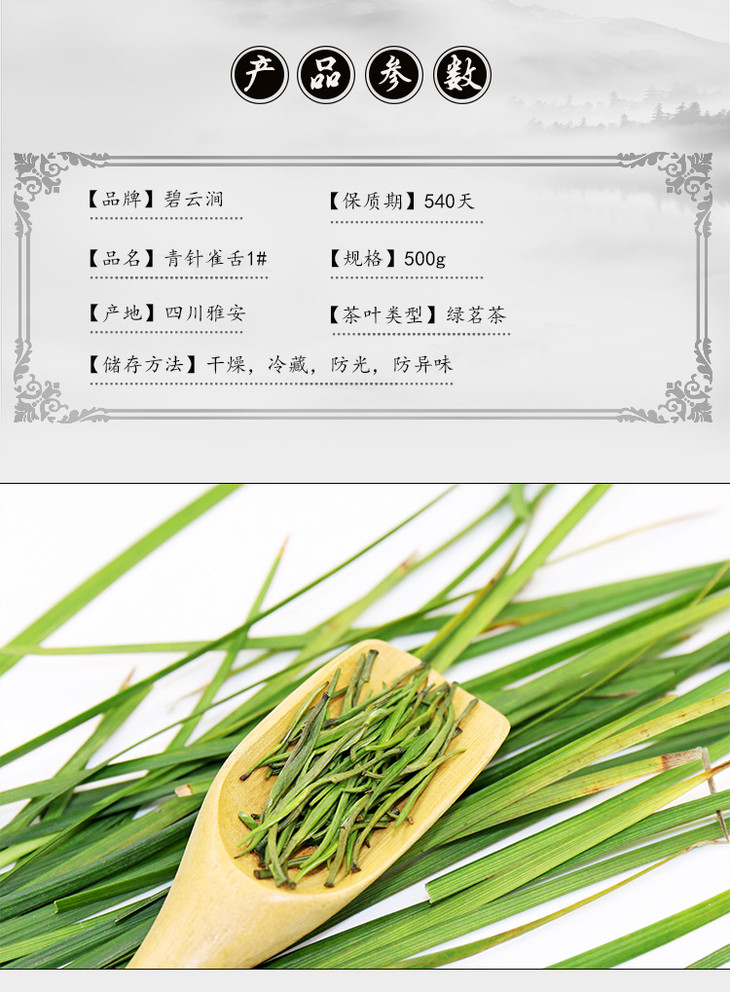 峨眉山云雾绿茶 特级单芽 雨前高山嫩芽 竹叶茶 青针雀舌 500g