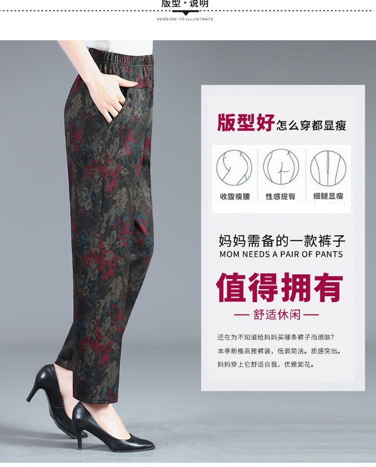 花裤子中老年人妈妈休闲外穿长裤 ZQ