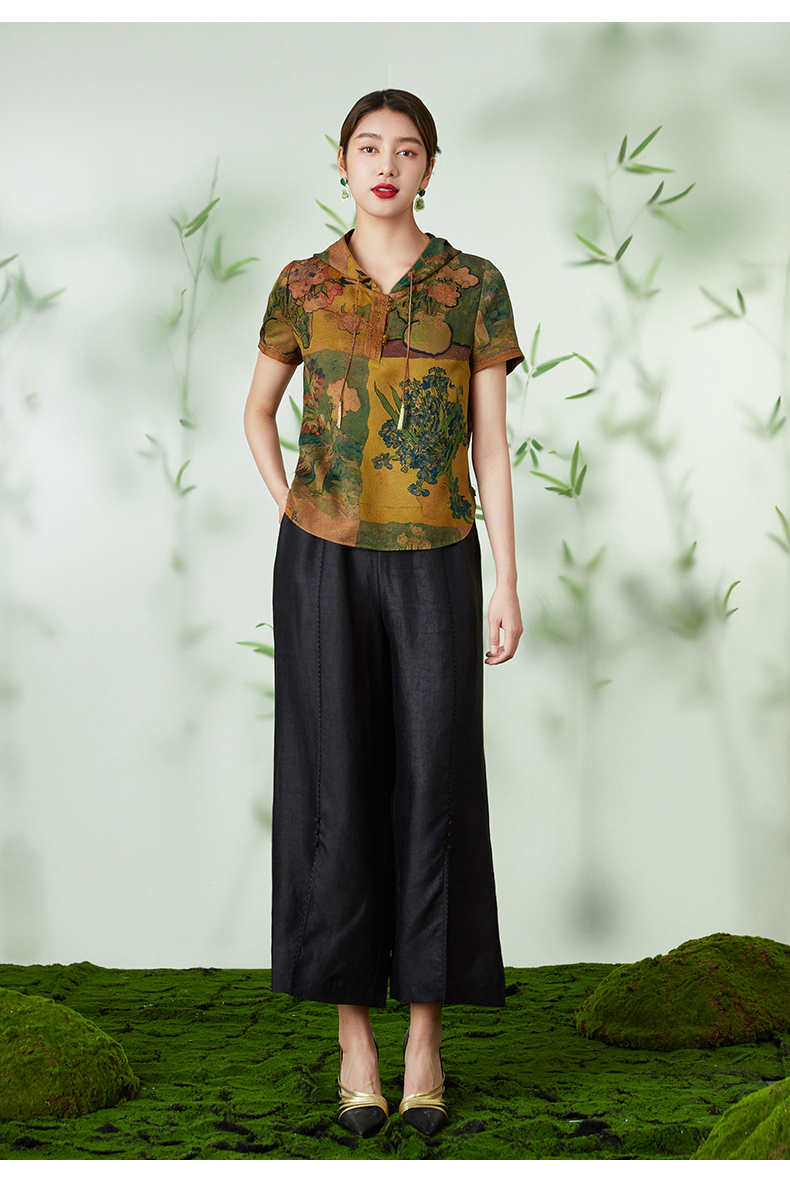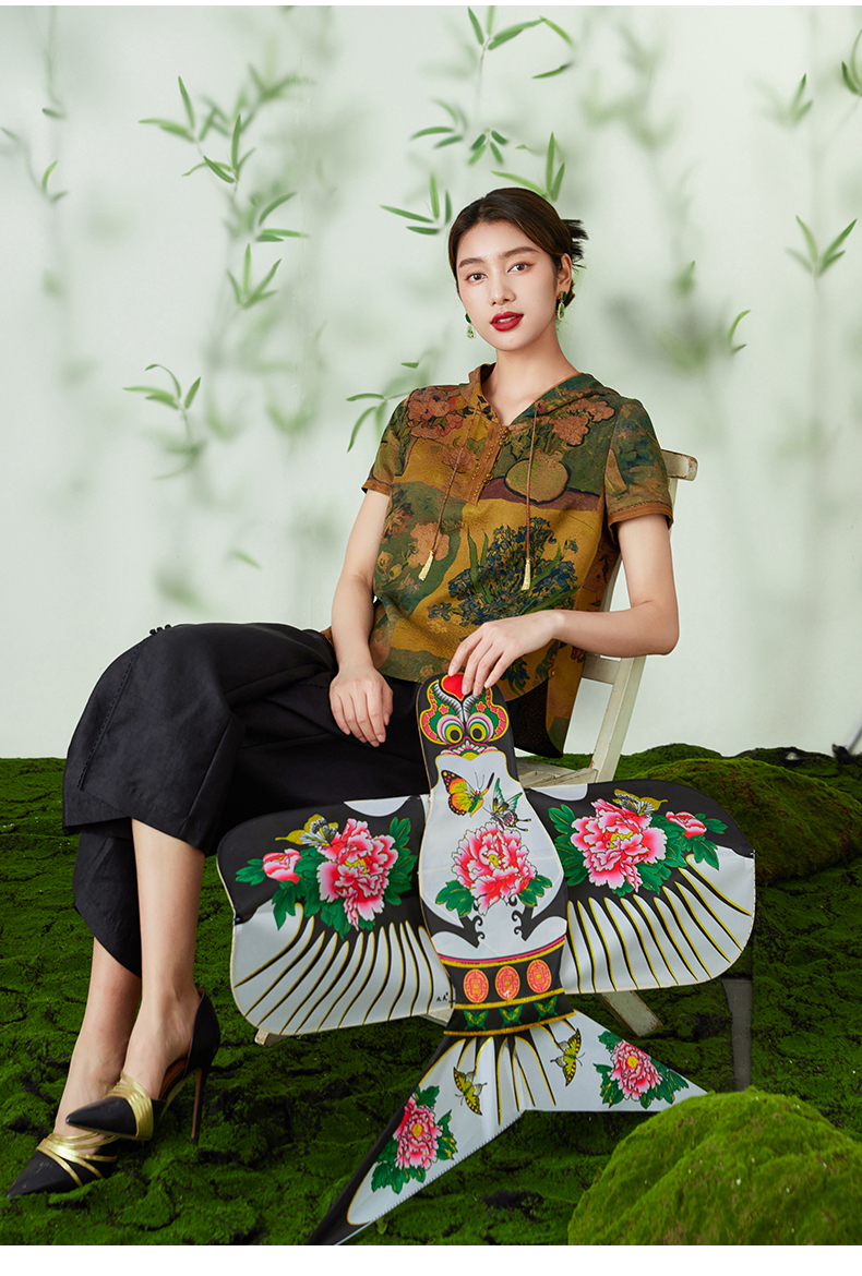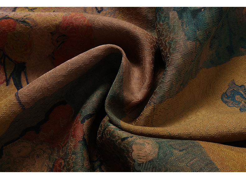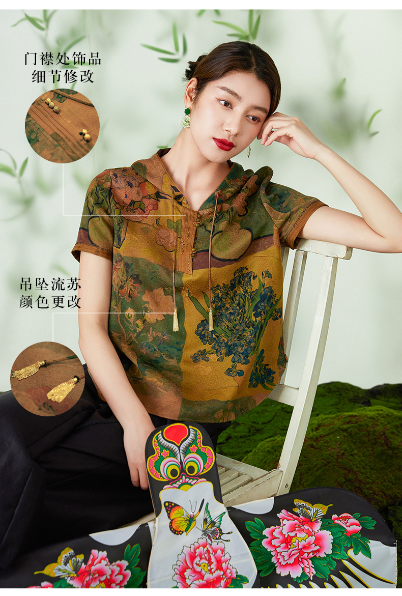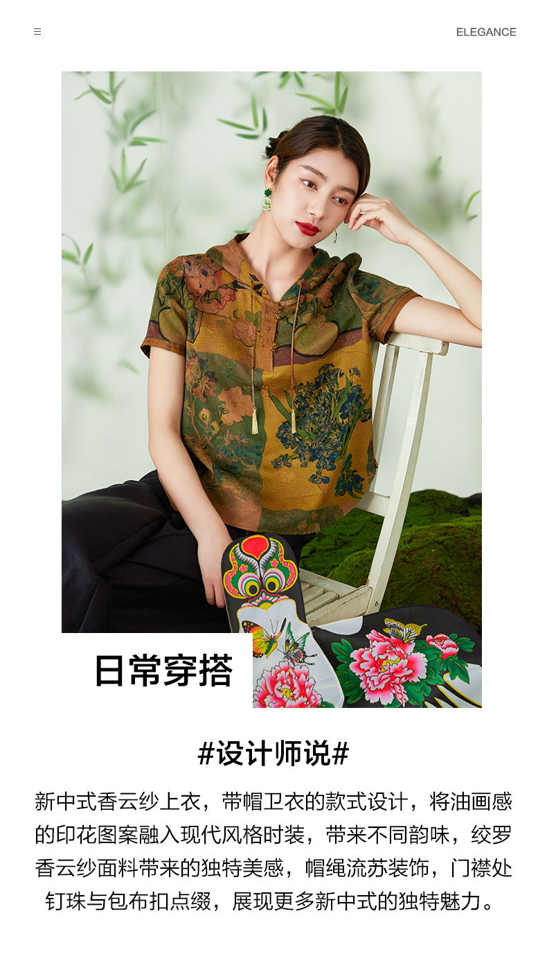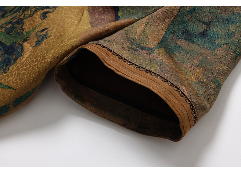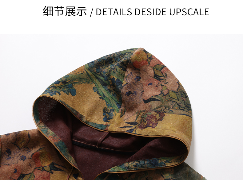 【梵高的向日葵】【香云纱】乔万尼24mm重磅真丝连帽上衣复古油画风EM2C771