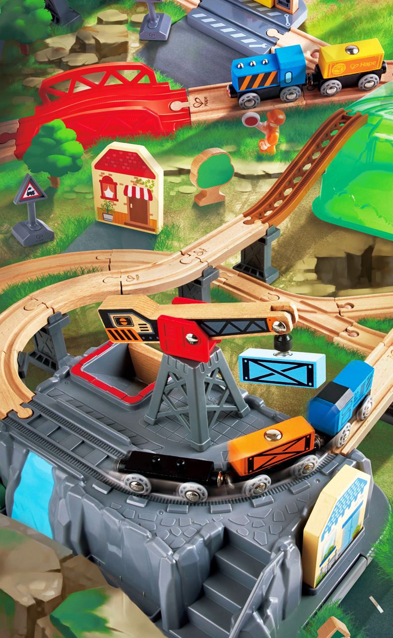 Hape(德国)儿童电动火车轨道玩具木质拼搭diy交运枢纽收纳套3岁+E3773