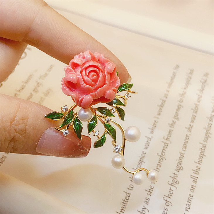 国色天香牡丹花胸针,高档珐琅手绘淡水珍珠胸花YH310