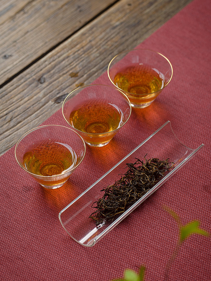 此款金骏眉采桐木当地头春芽尖与近茶区的外地芽拼配而成,