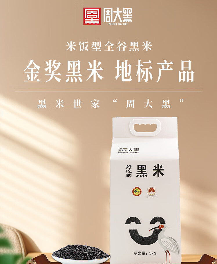 【千年贡米 地标认证】周大黑洋县黑米2025年新米朱鹮之乡长粒黑米厂家直发无染色真空锁鲜包装 洋县黑米黑米2.5kg