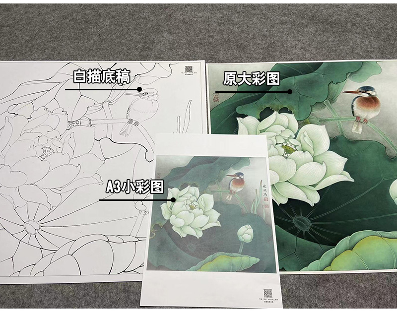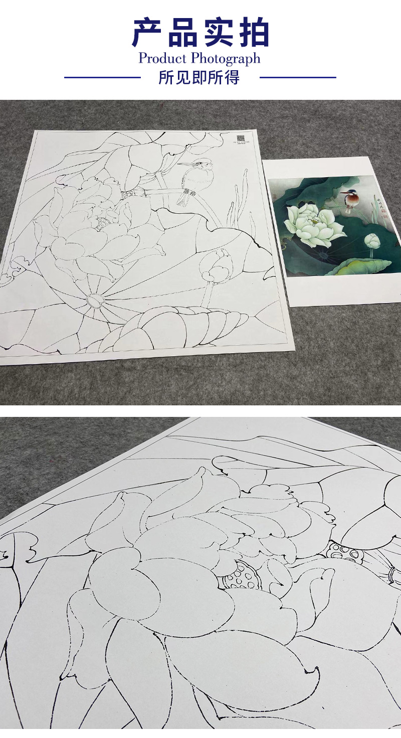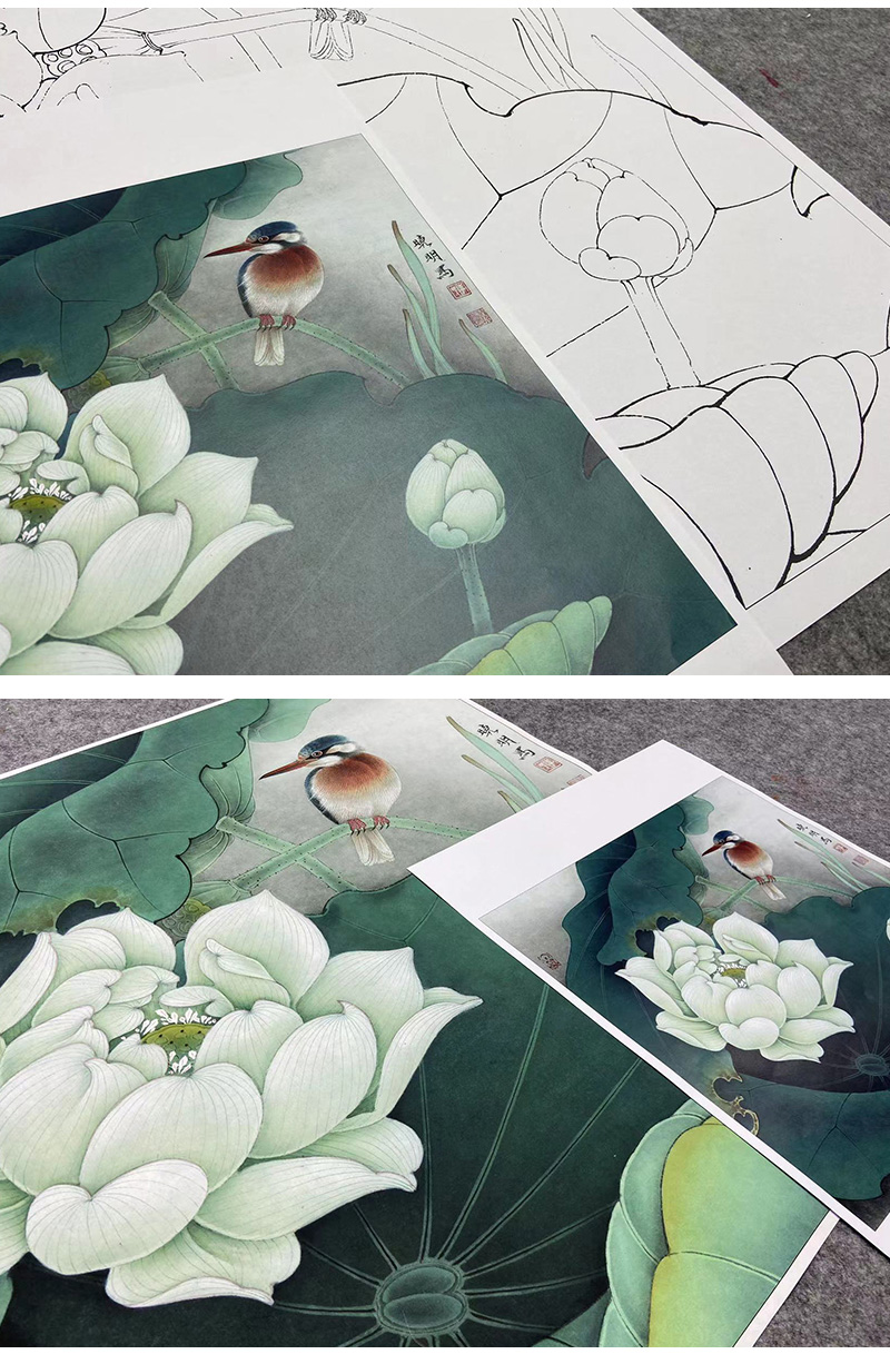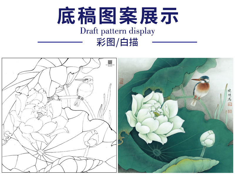 【大彩图】李晓明工笔画白描底稿斗方小品《白荷栖翠》荷花临摹勾线花鸟线稿K082