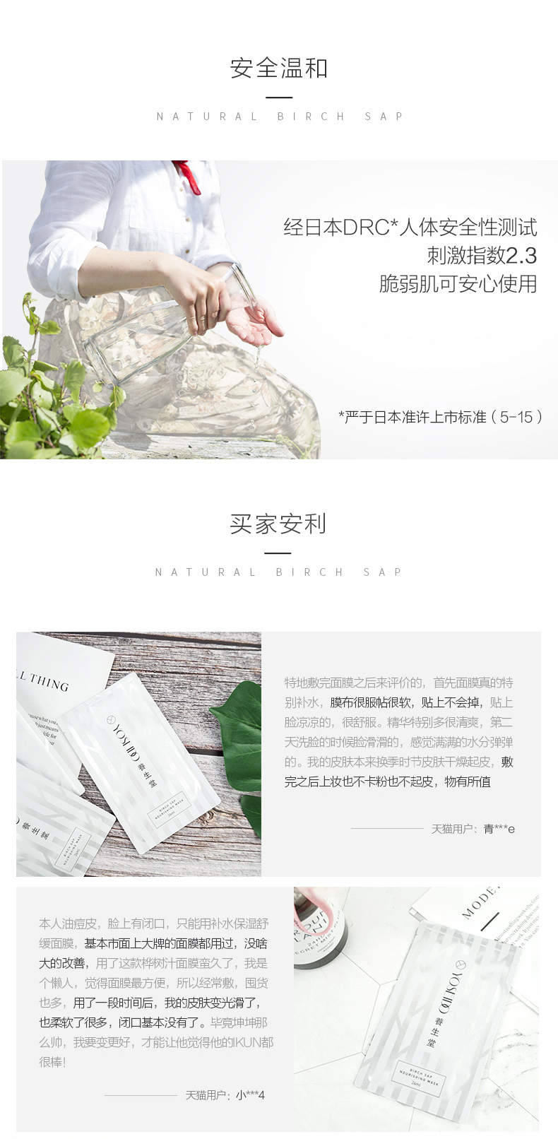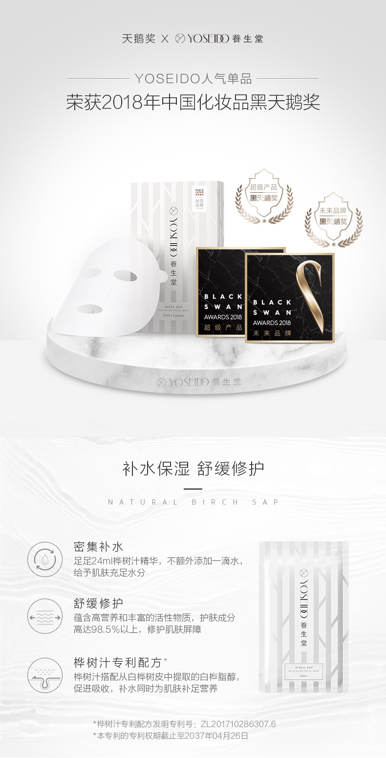 养生堂天然桦树汁补水保湿面膜5片/盒