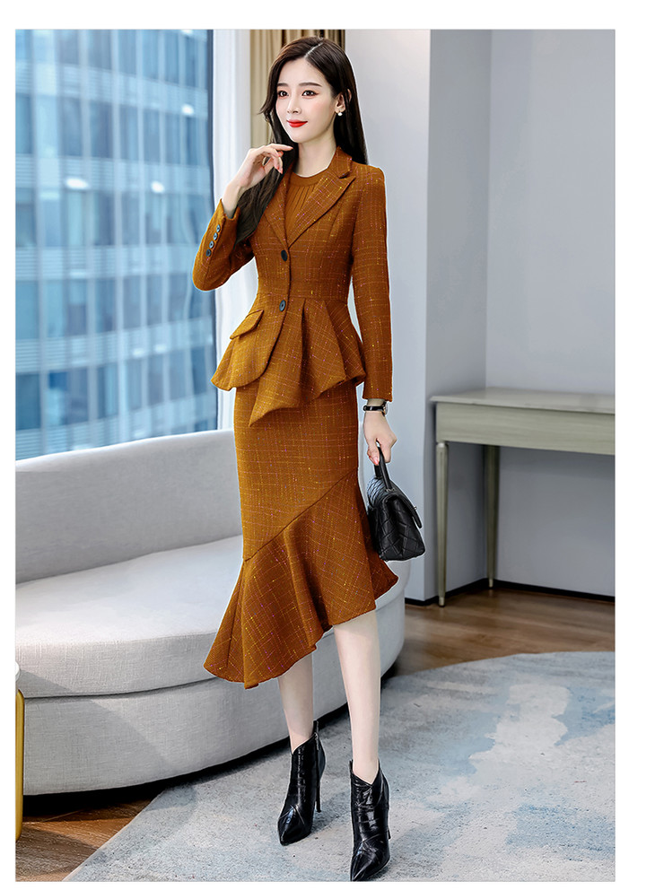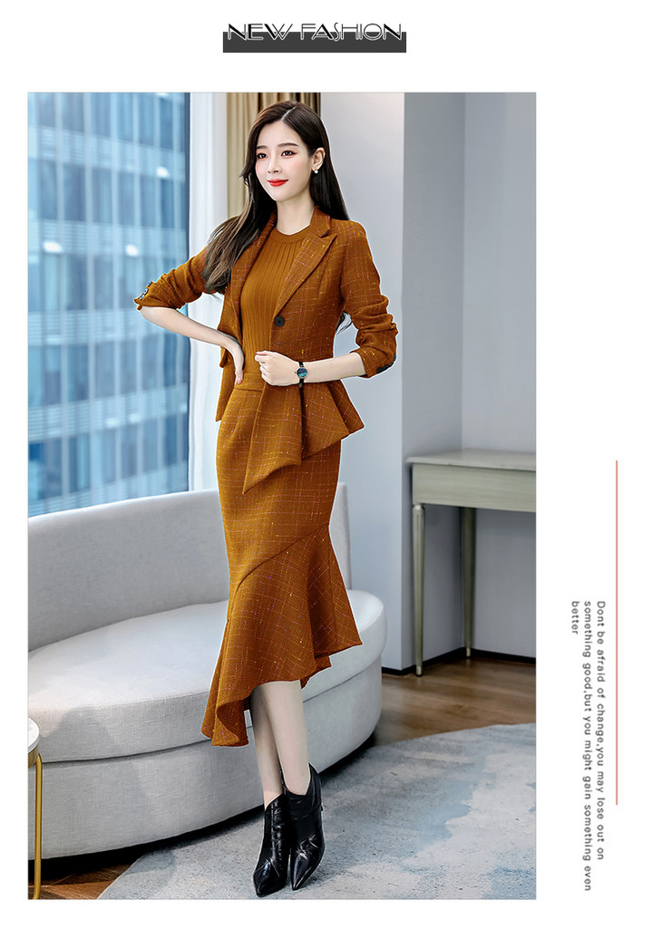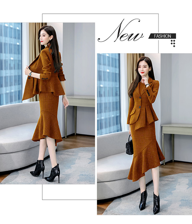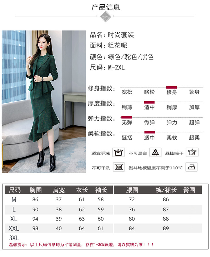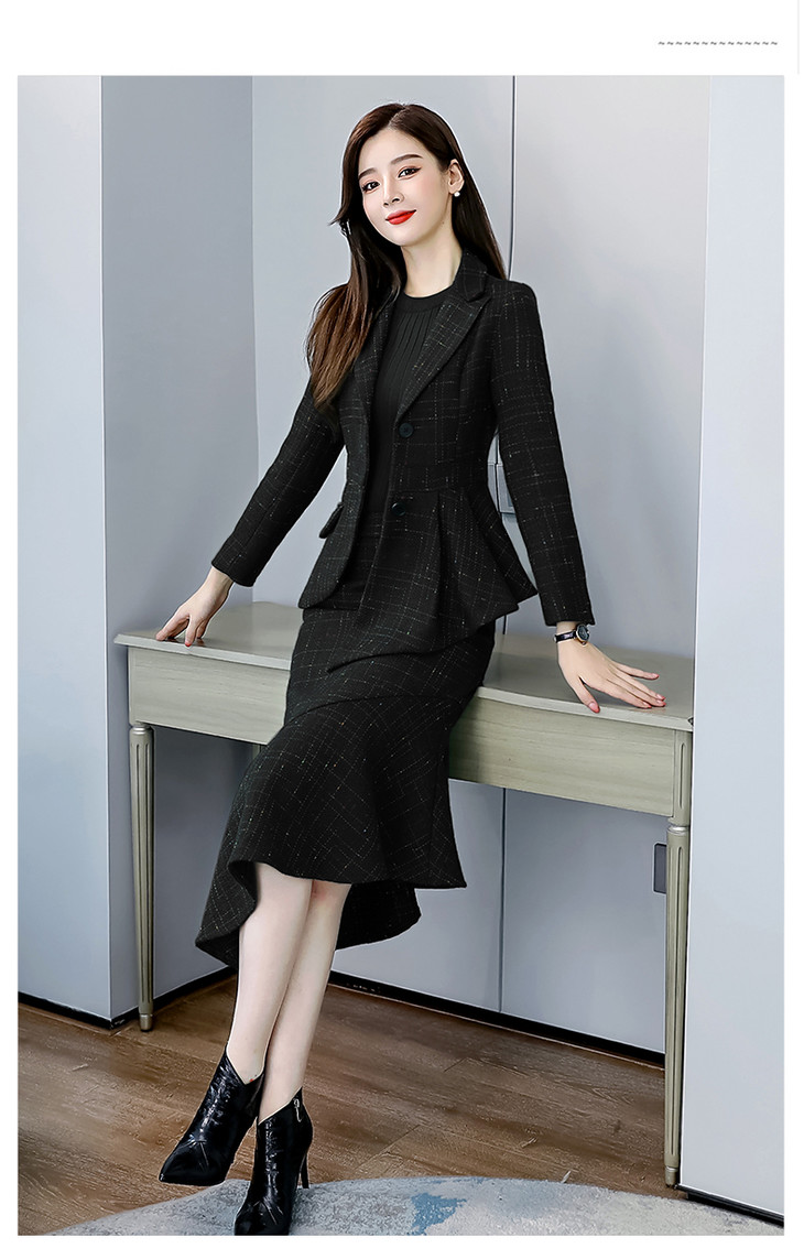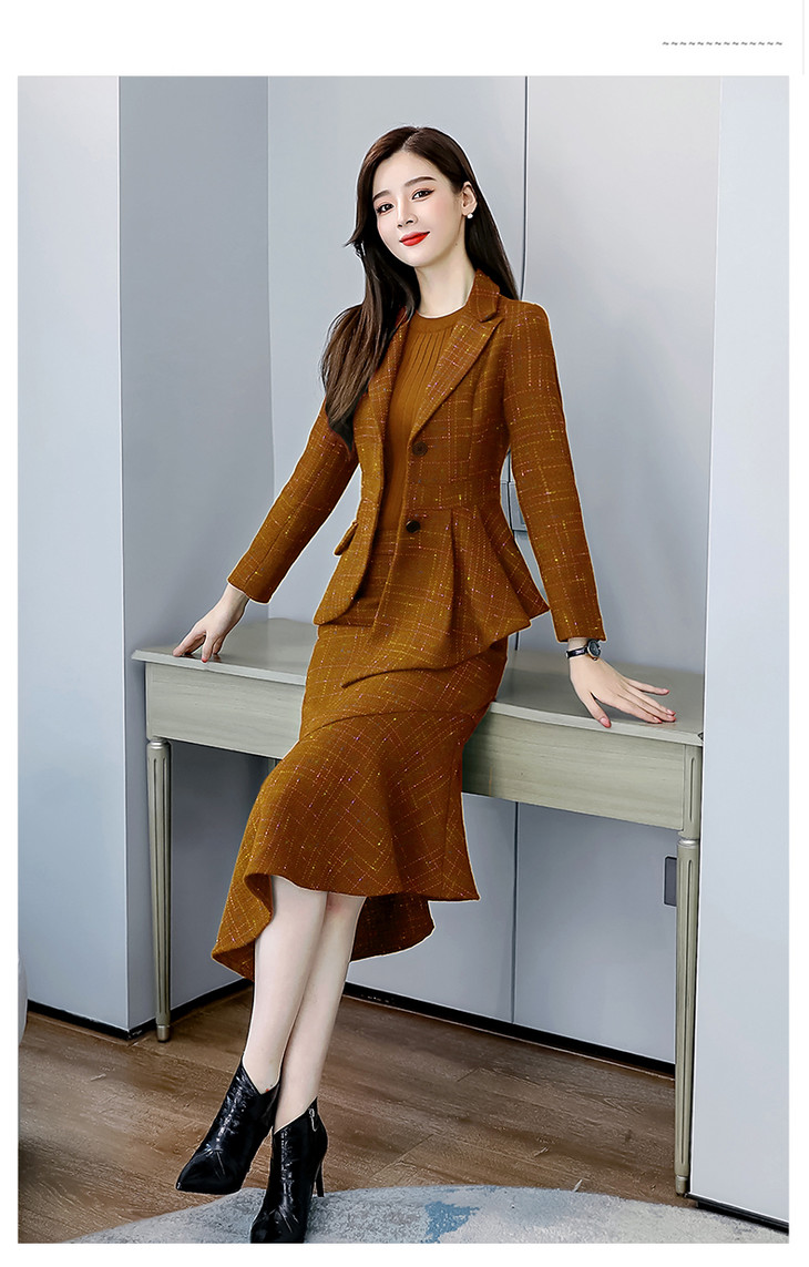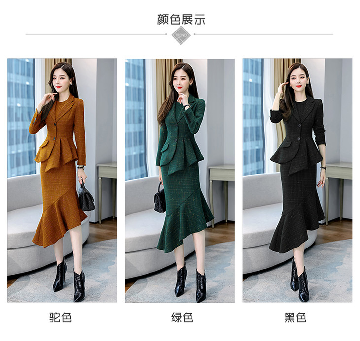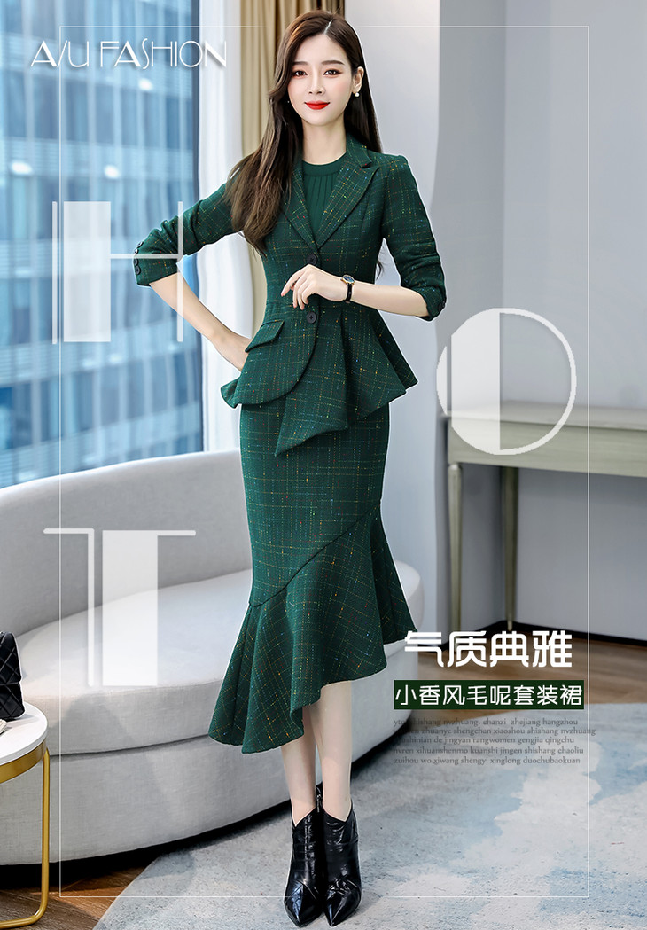 WZNH- CZJ7985 2021冬装新款小香风毛呢西装毛呢鱼尾裙套装两件套