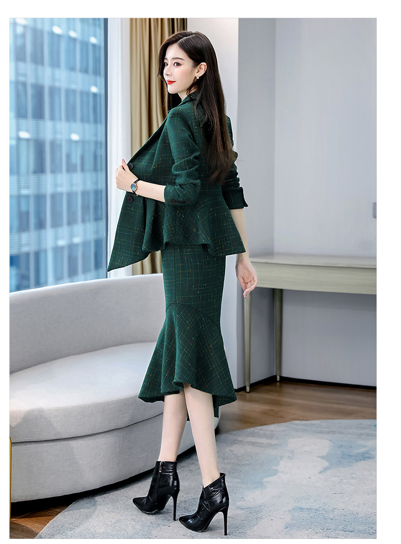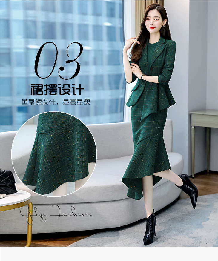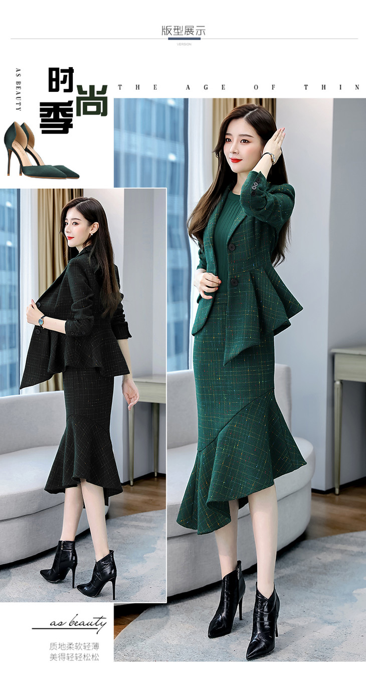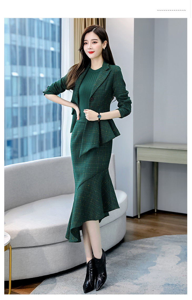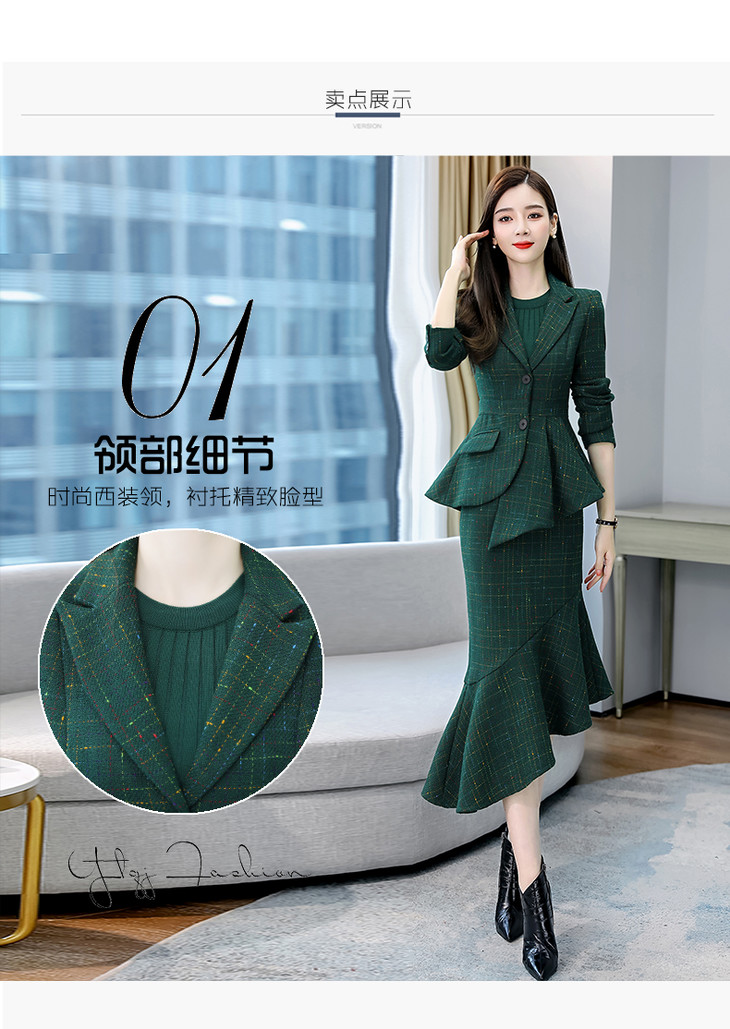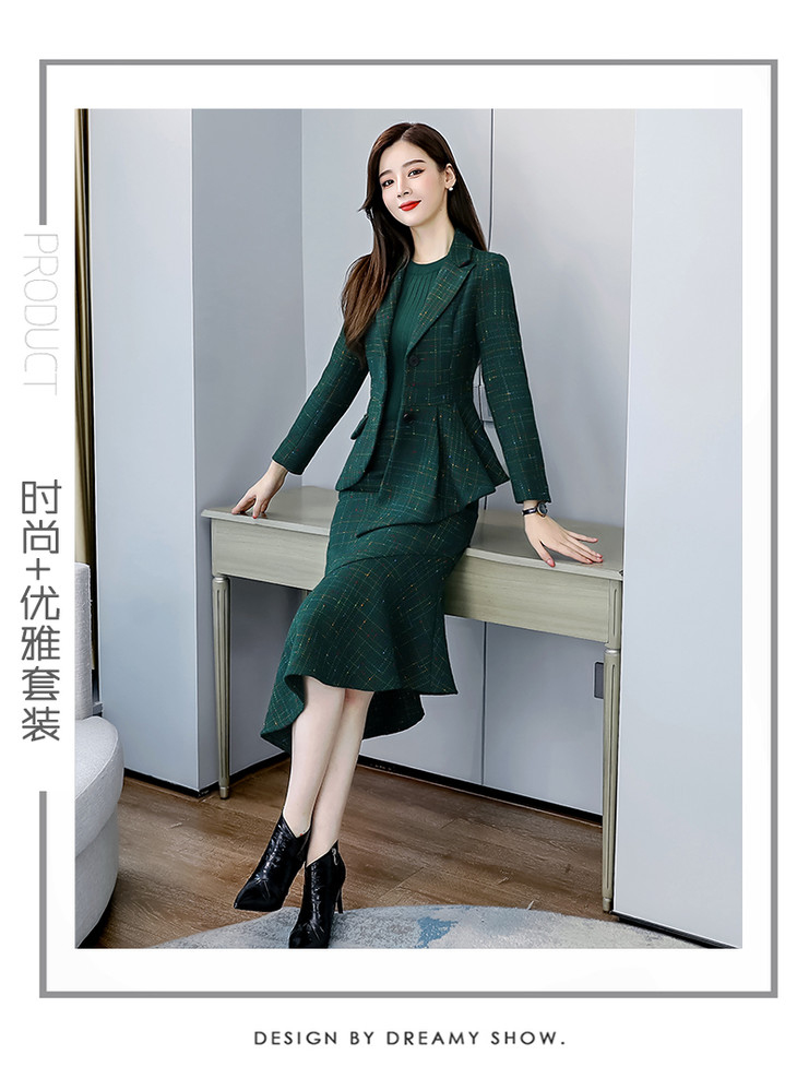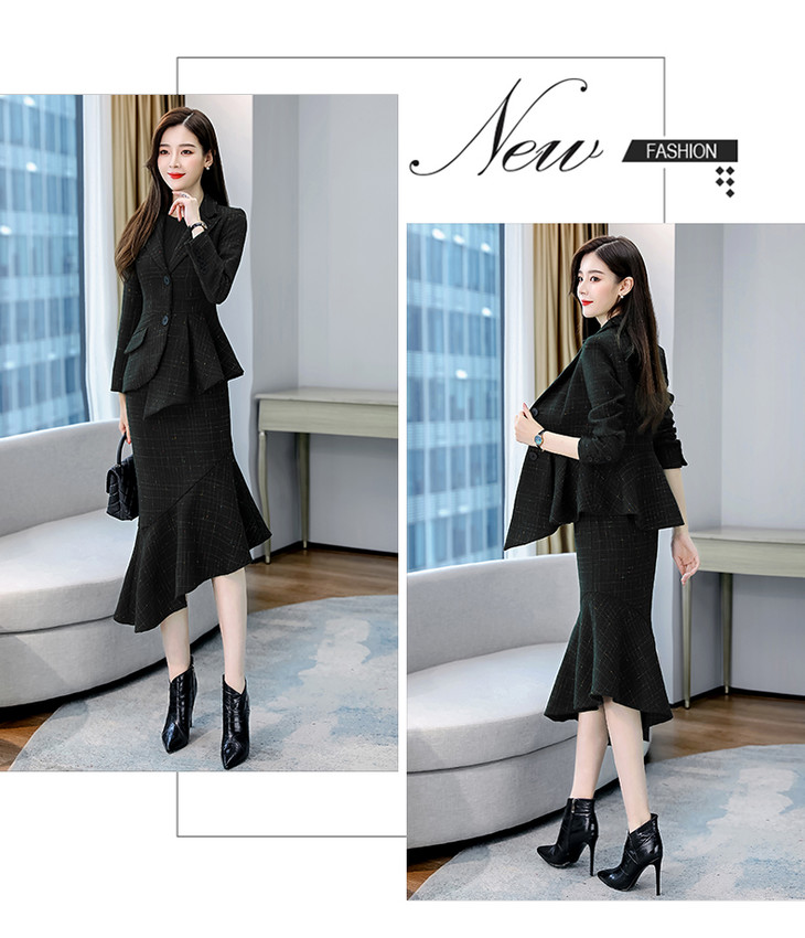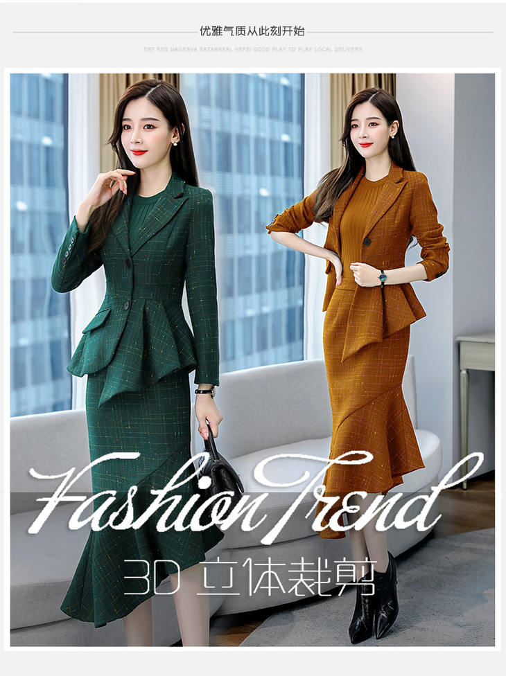 WZNH- CZJ7985 2021冬装新款小香风毛呢西装毛呢鱼尾裙套装两件套