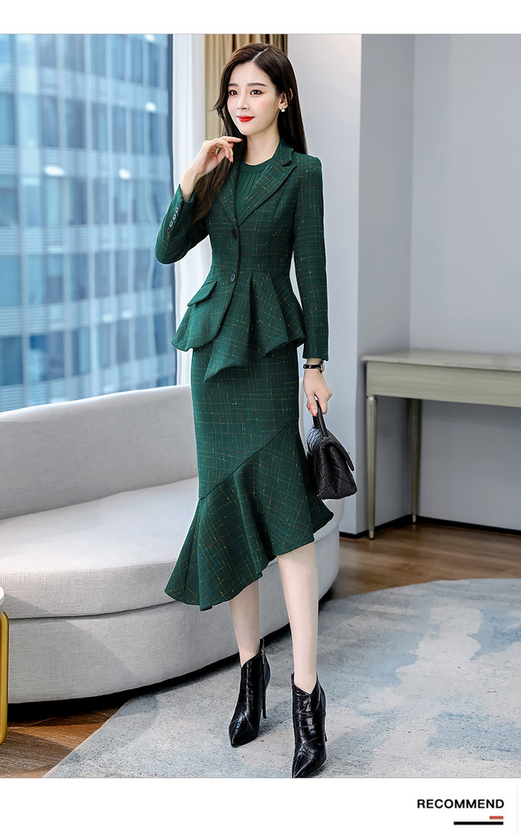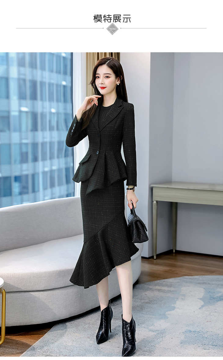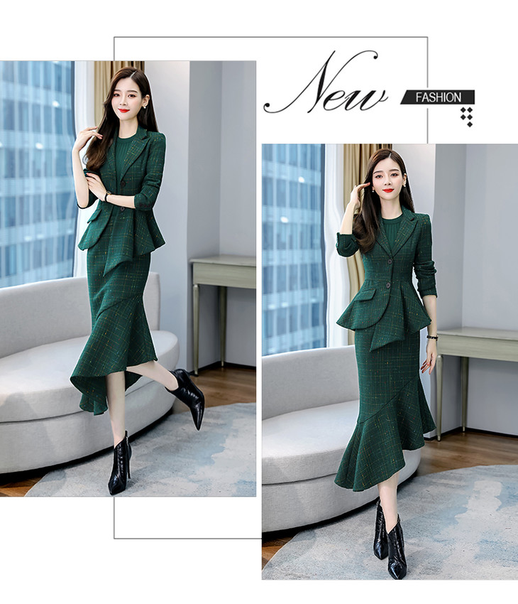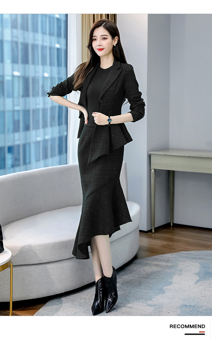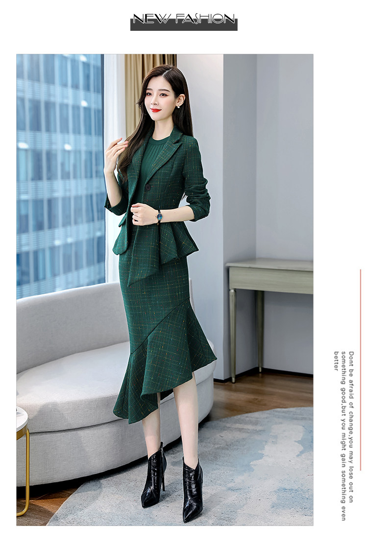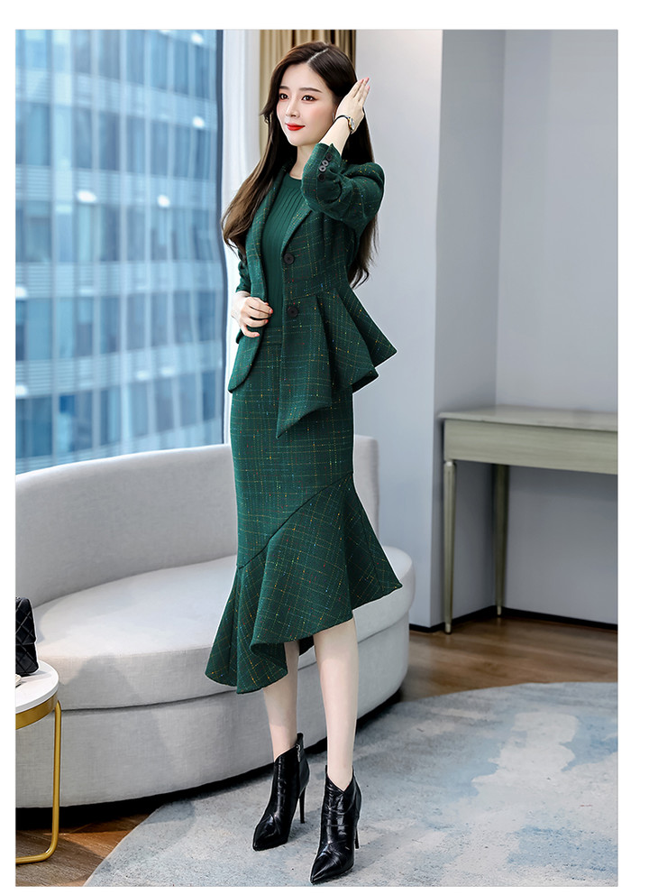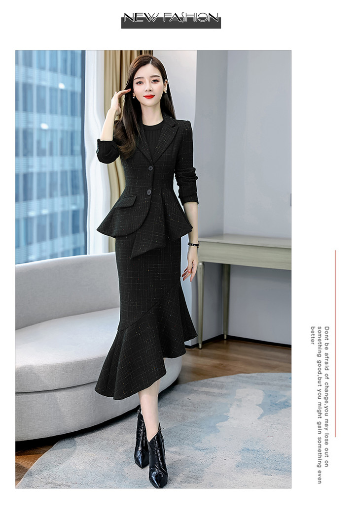 WZNH- CZJ7985 2021冬装新款小香风毛呢西装毛呢鱼尾裙套装两件套
