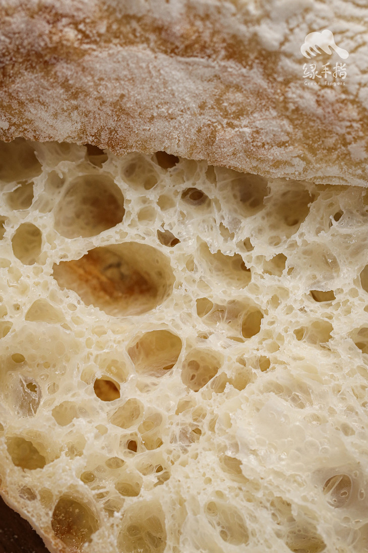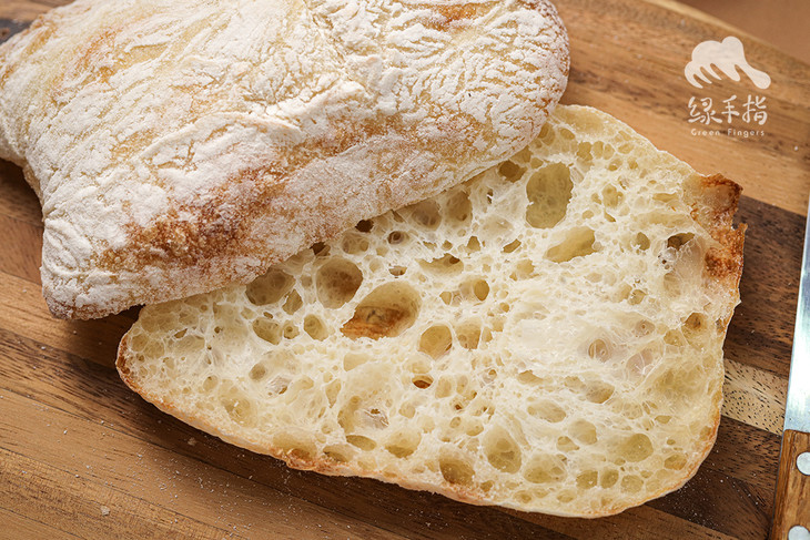 恰巴塔作为意大利人的主食代表面包,由最初无油无糖的配方,到现在加入少量的橄榄油,和大家对健康的追求精准契合。恰巴塔面团含水量高,软糯胶质的口感,成为了很多人的日常口粮。