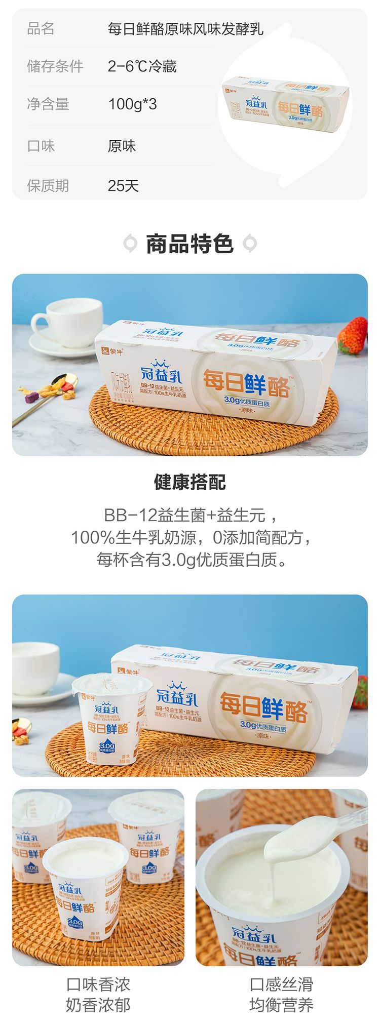 蒙牛100g*3冠益乳原味每日鲜酪风味发酵乳