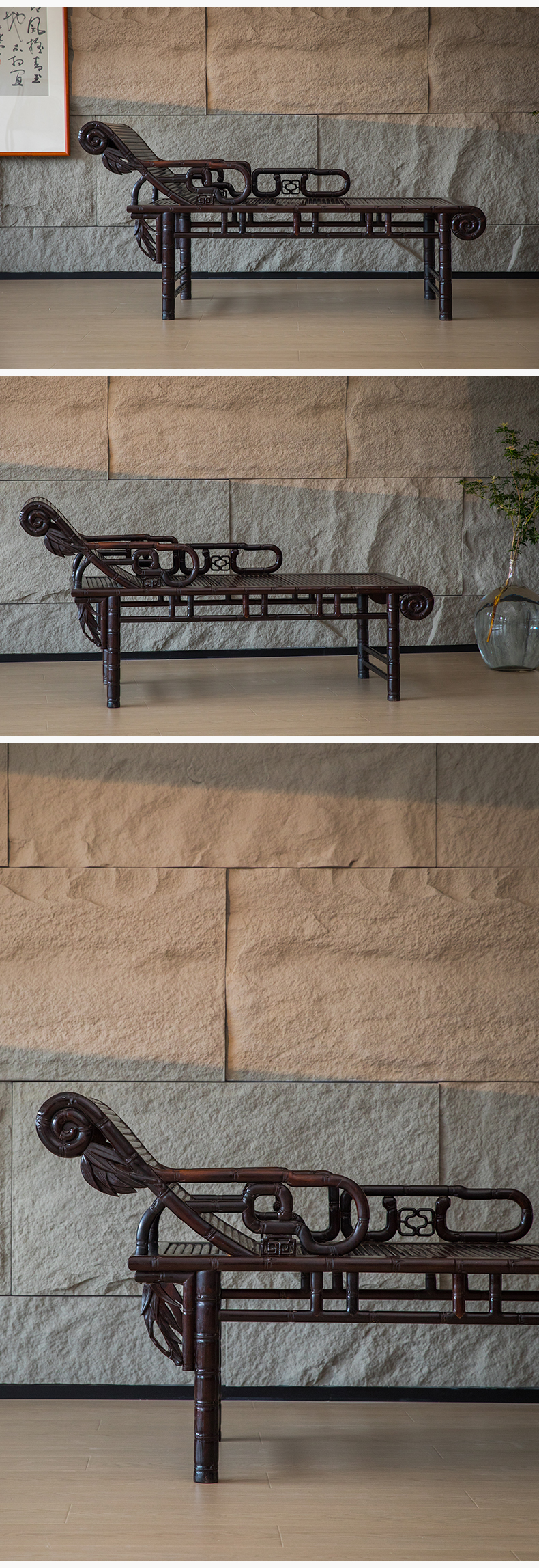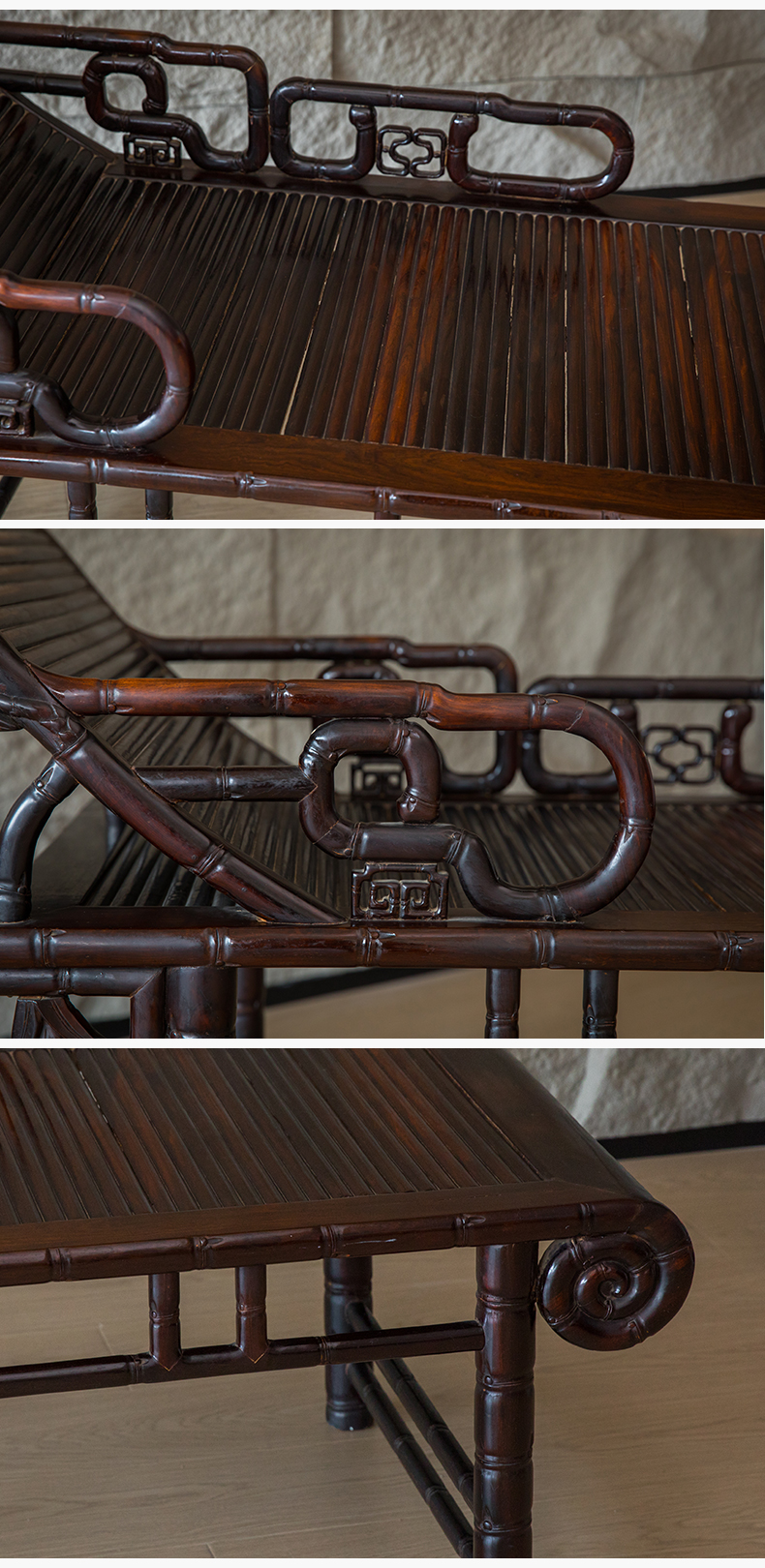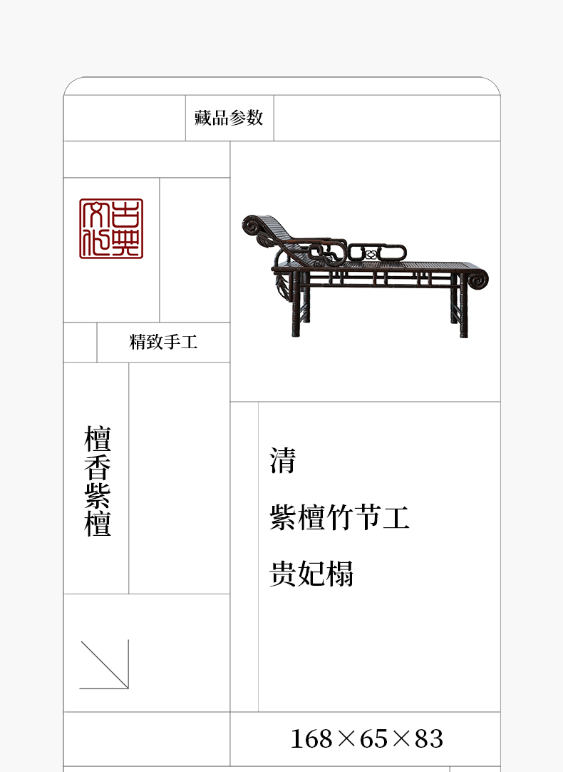 清 紫檀竹节工贵妃榻