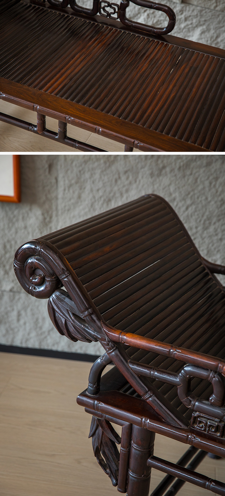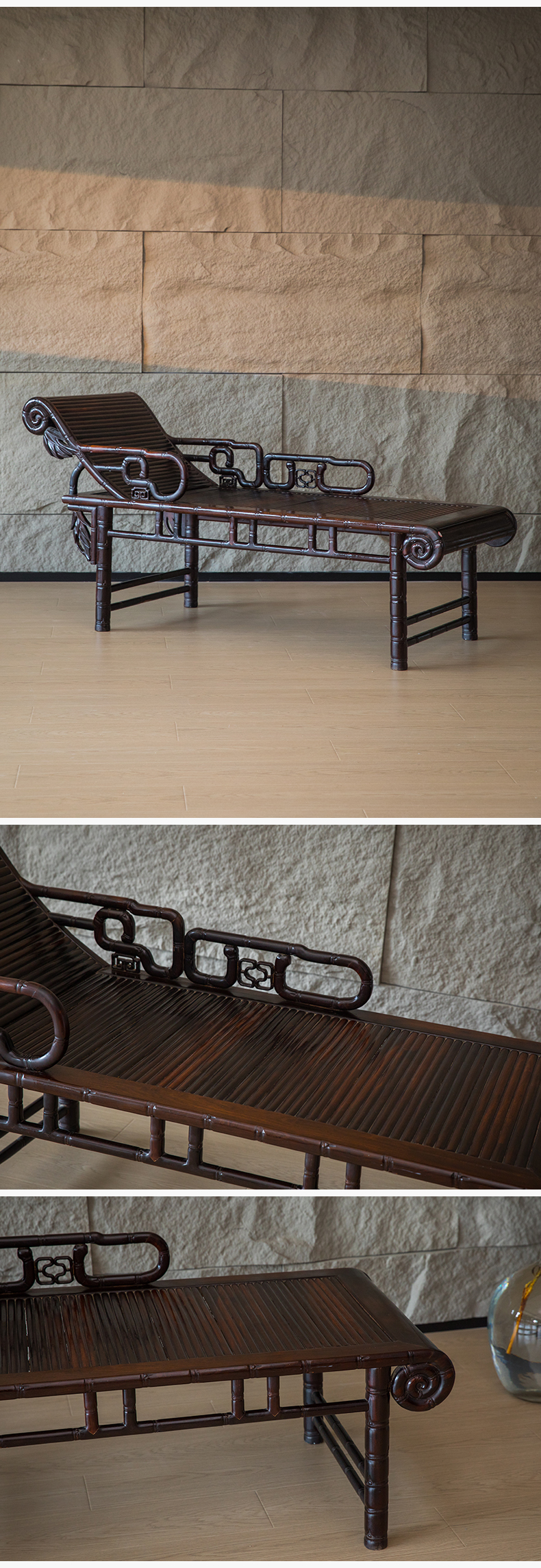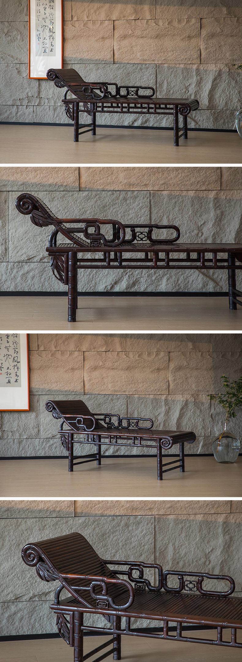 清 紫檀竹节工贵妃榻