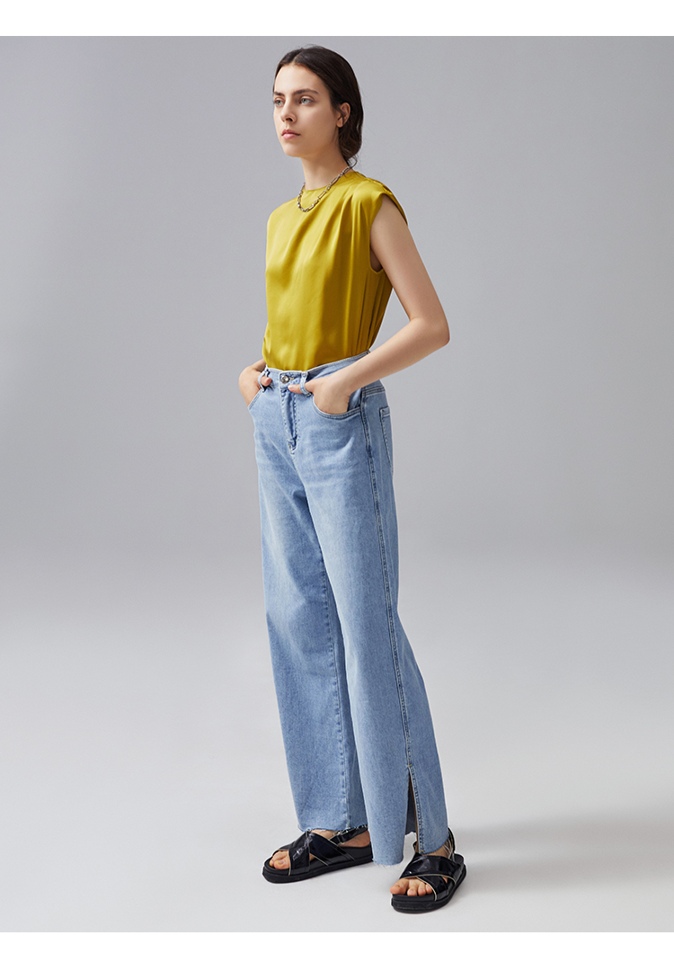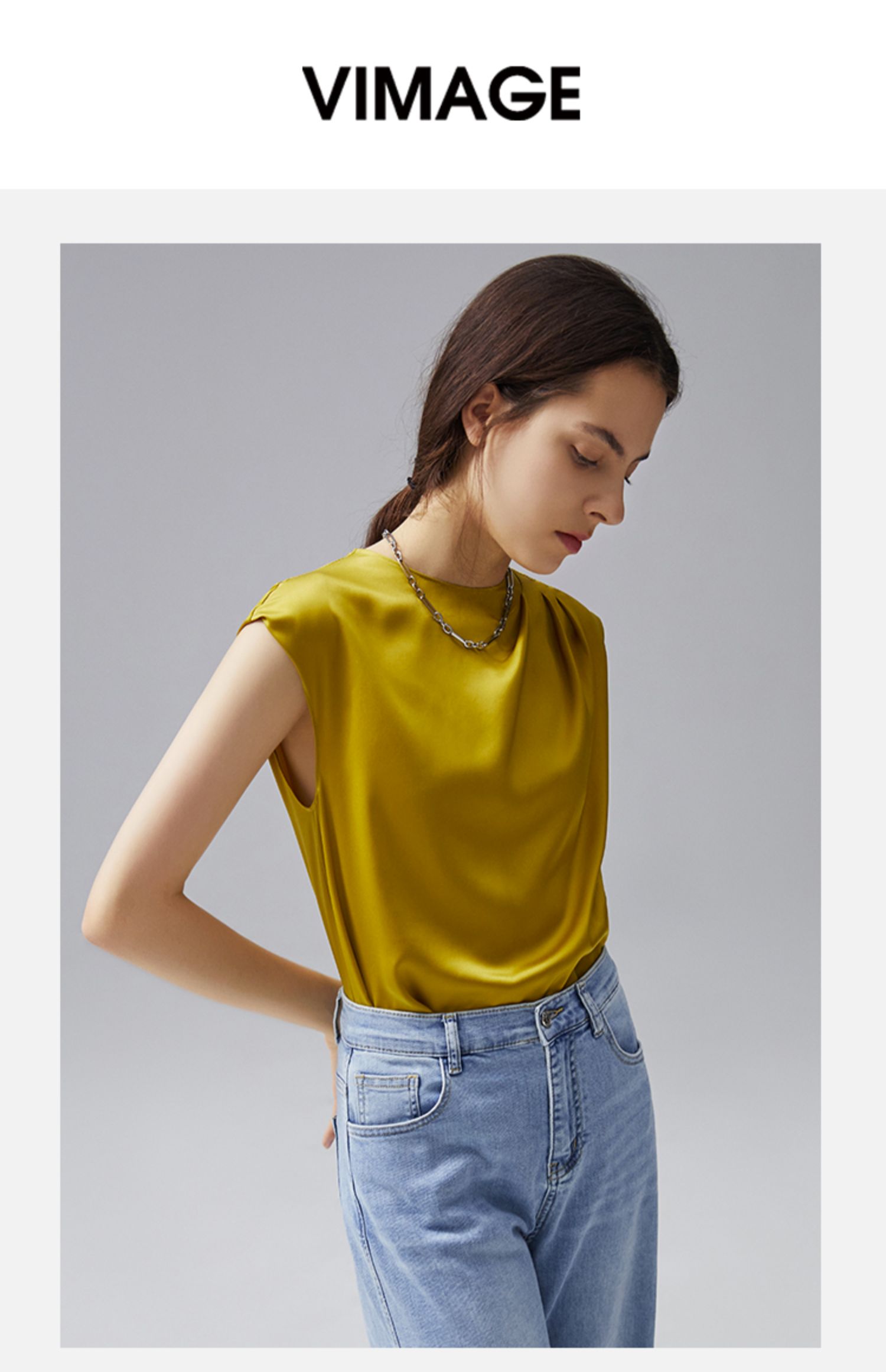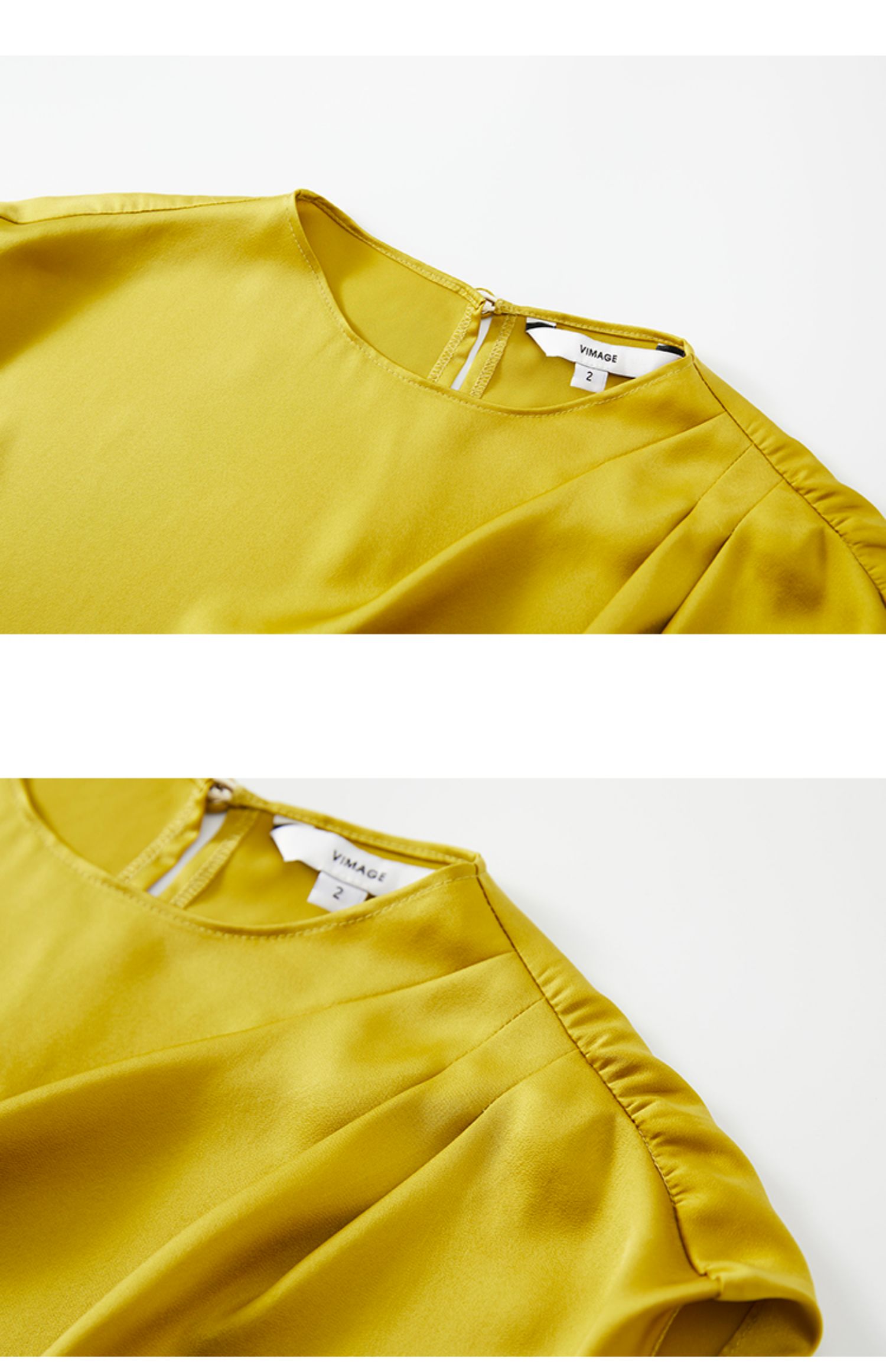 VIMAGE/纬漫纪夏季新款女装飞袖纯色简约优雅小上衣VC2113220