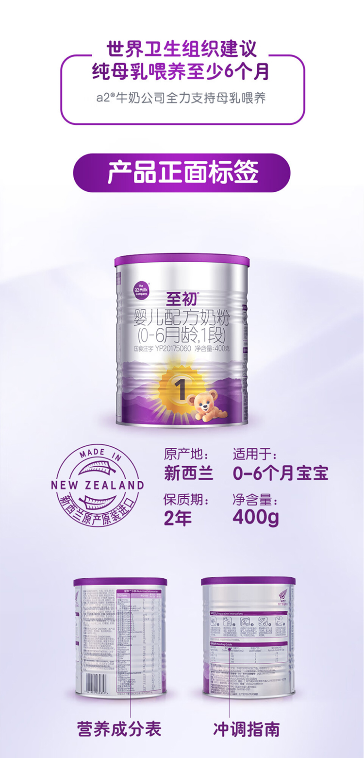 a2至初牛奶粉1段400g