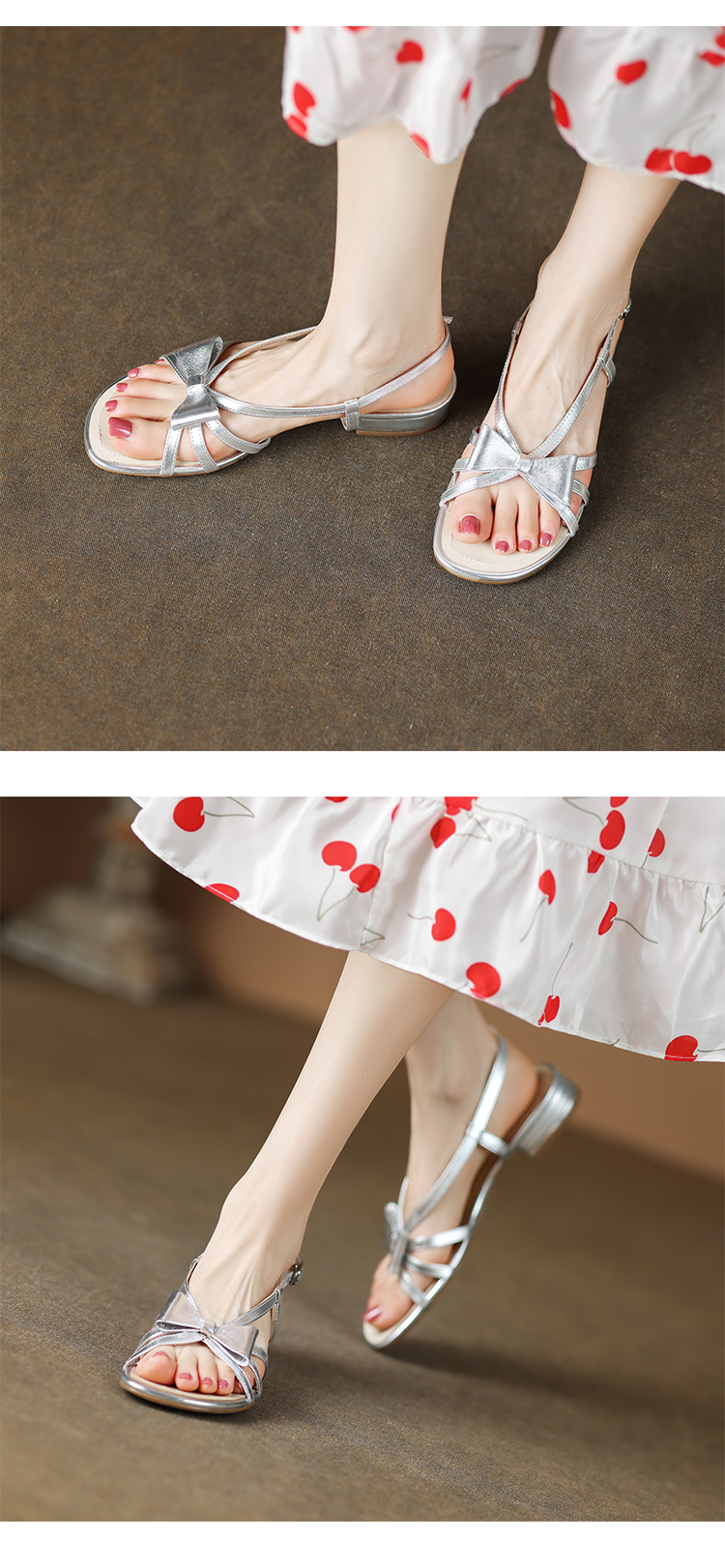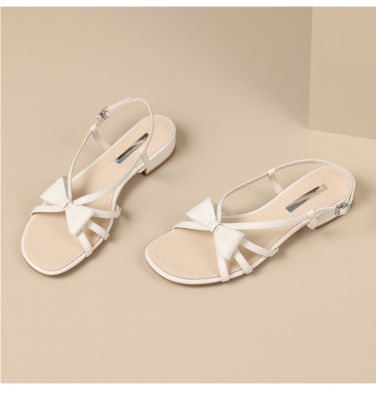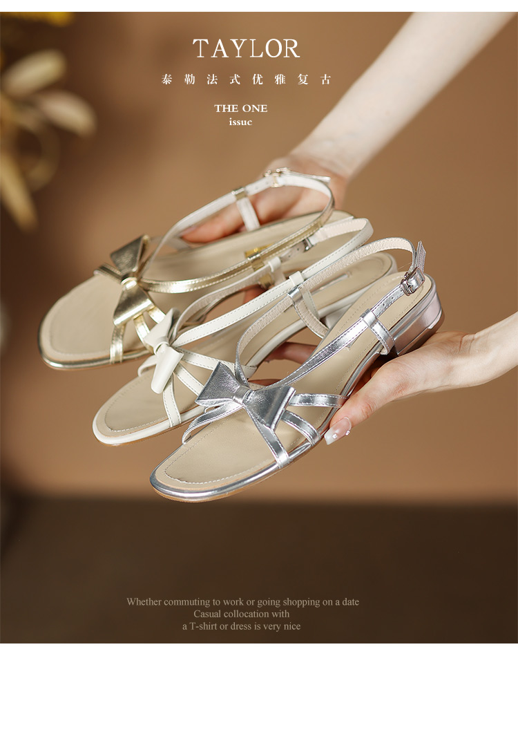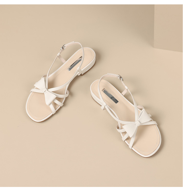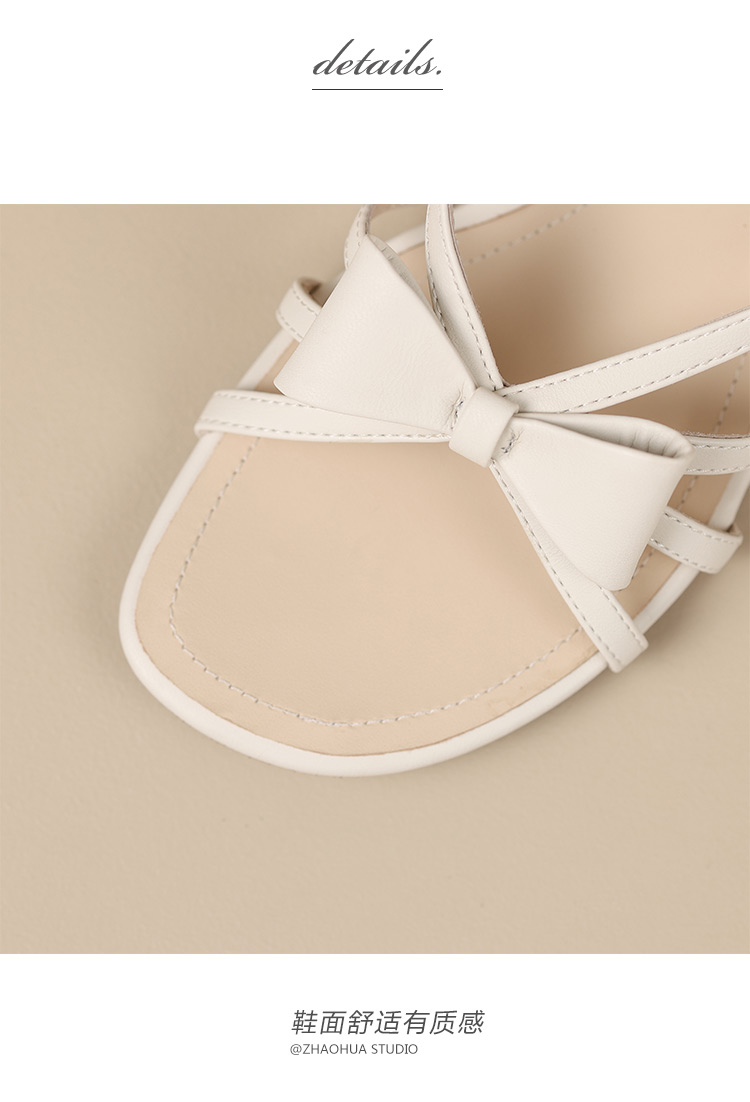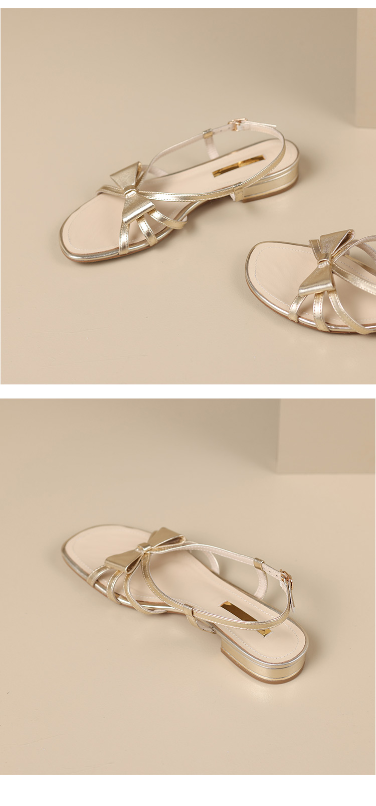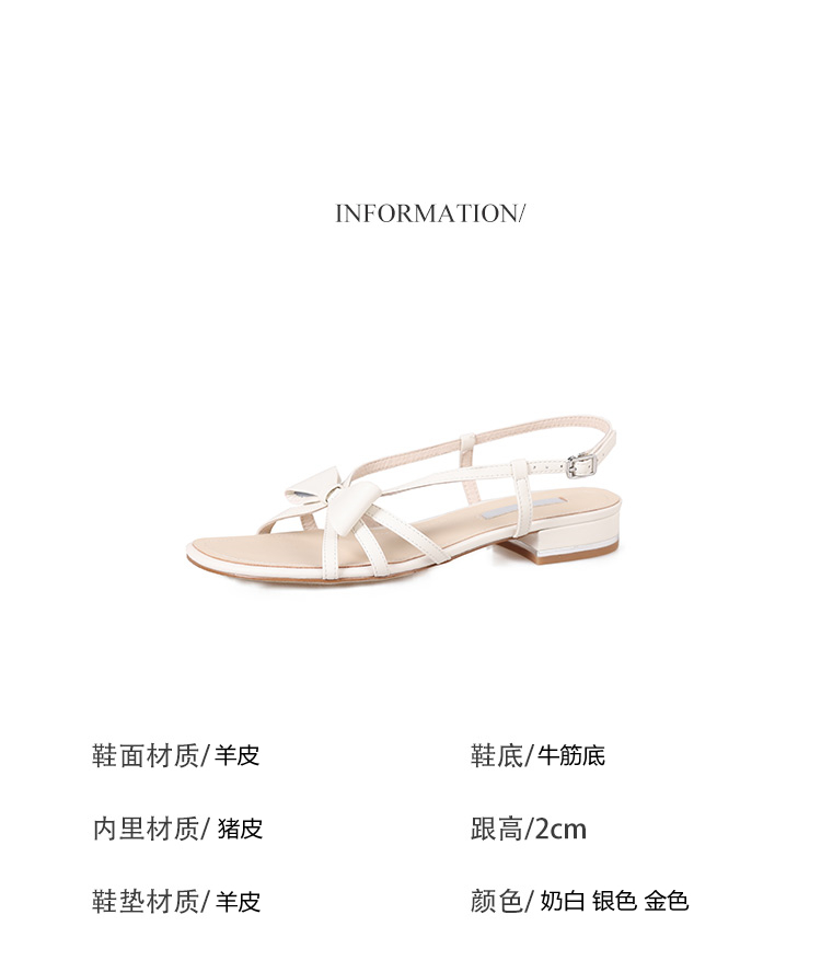 舒适减龄,甜美蝴蝶结里外全皮低跟凉鞋QQJ-850F