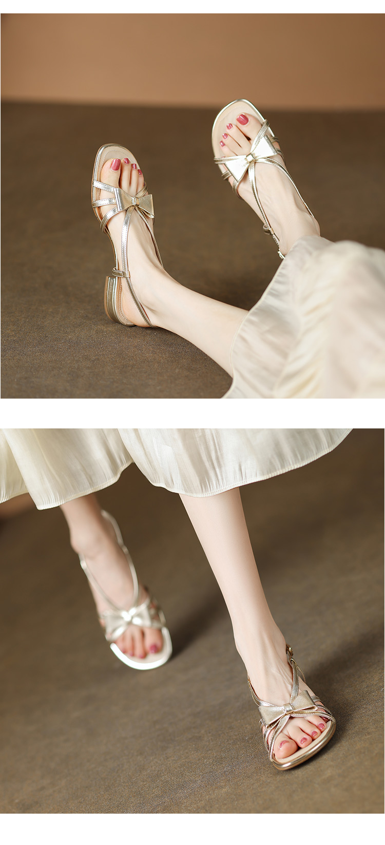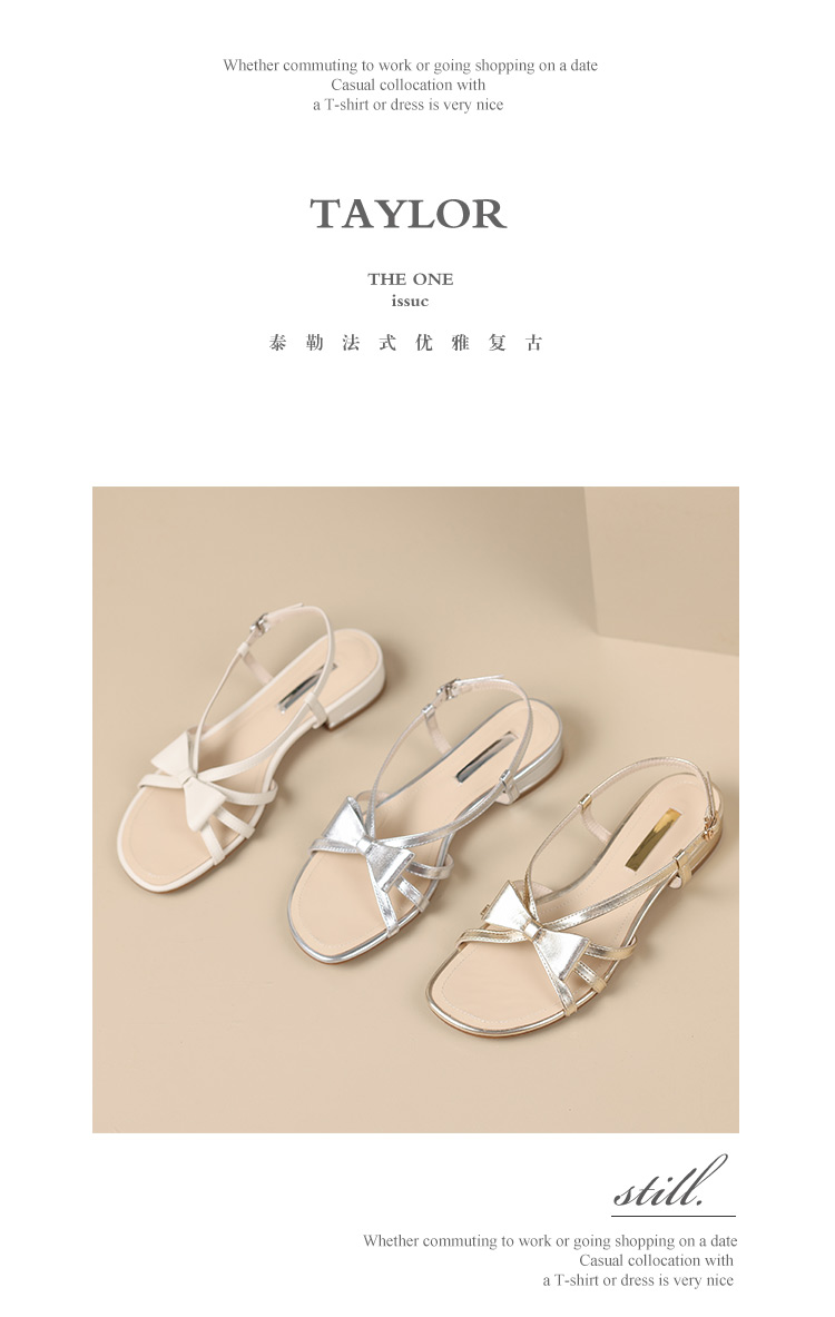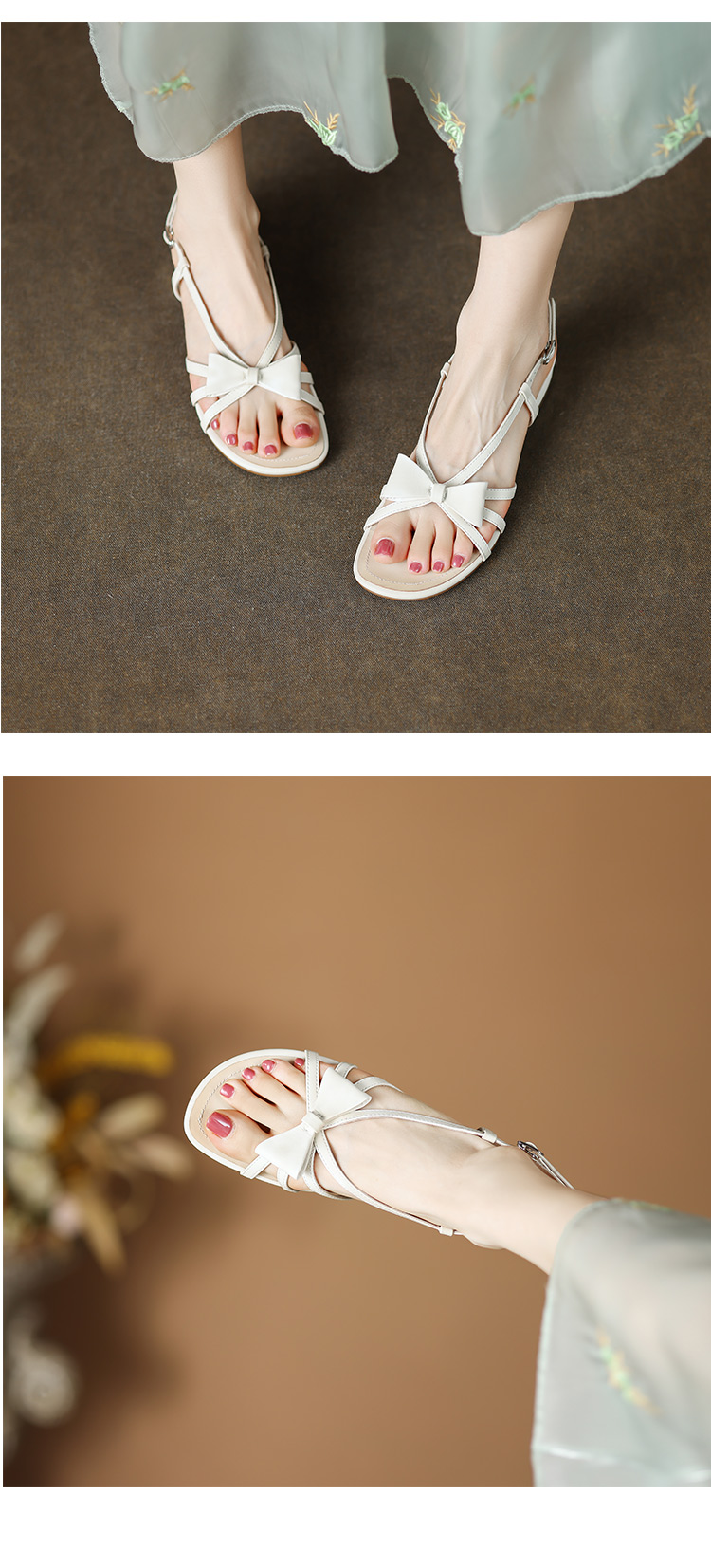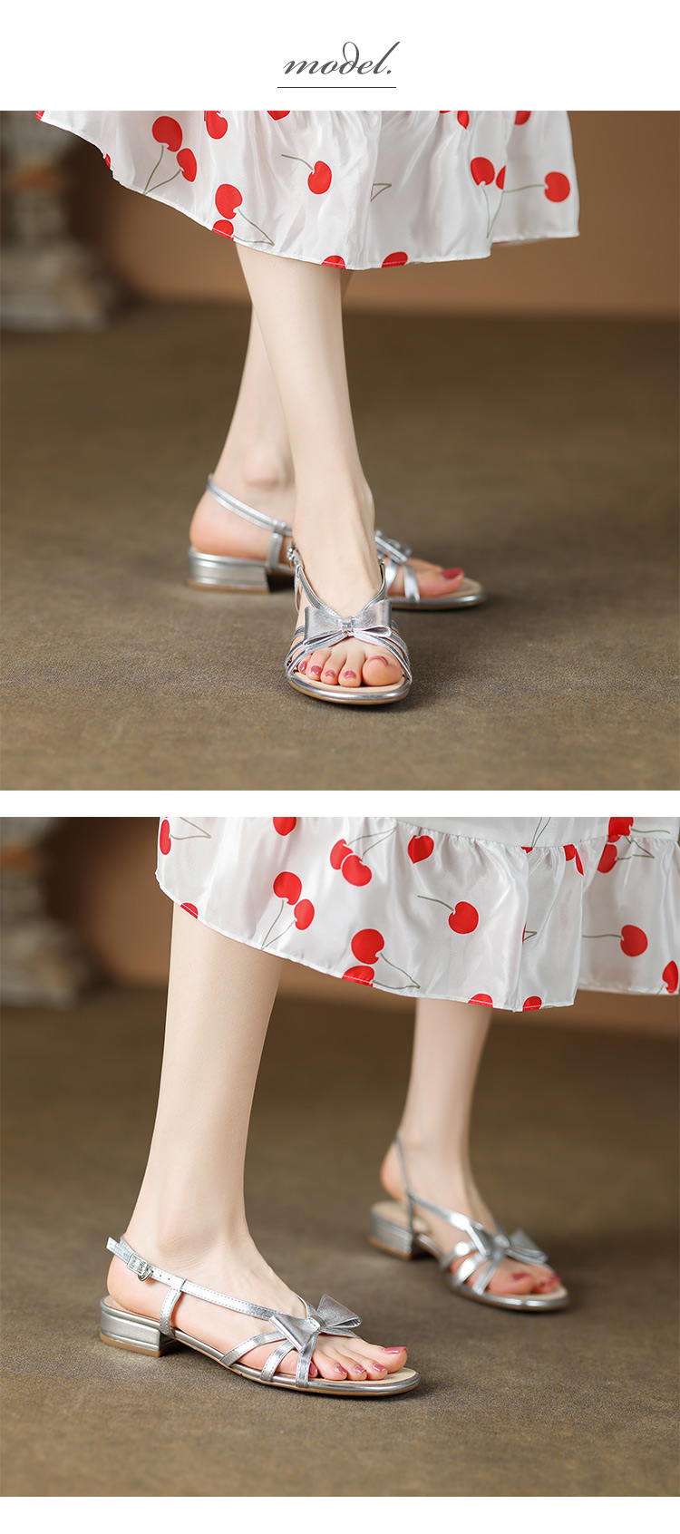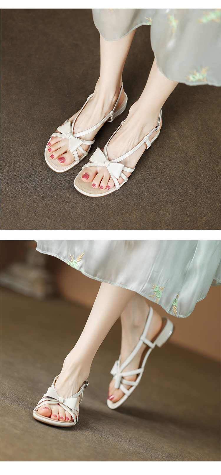 舒适减龄,甜美蝴蝶结里外全皮低跟凉鞋QQJ-850F