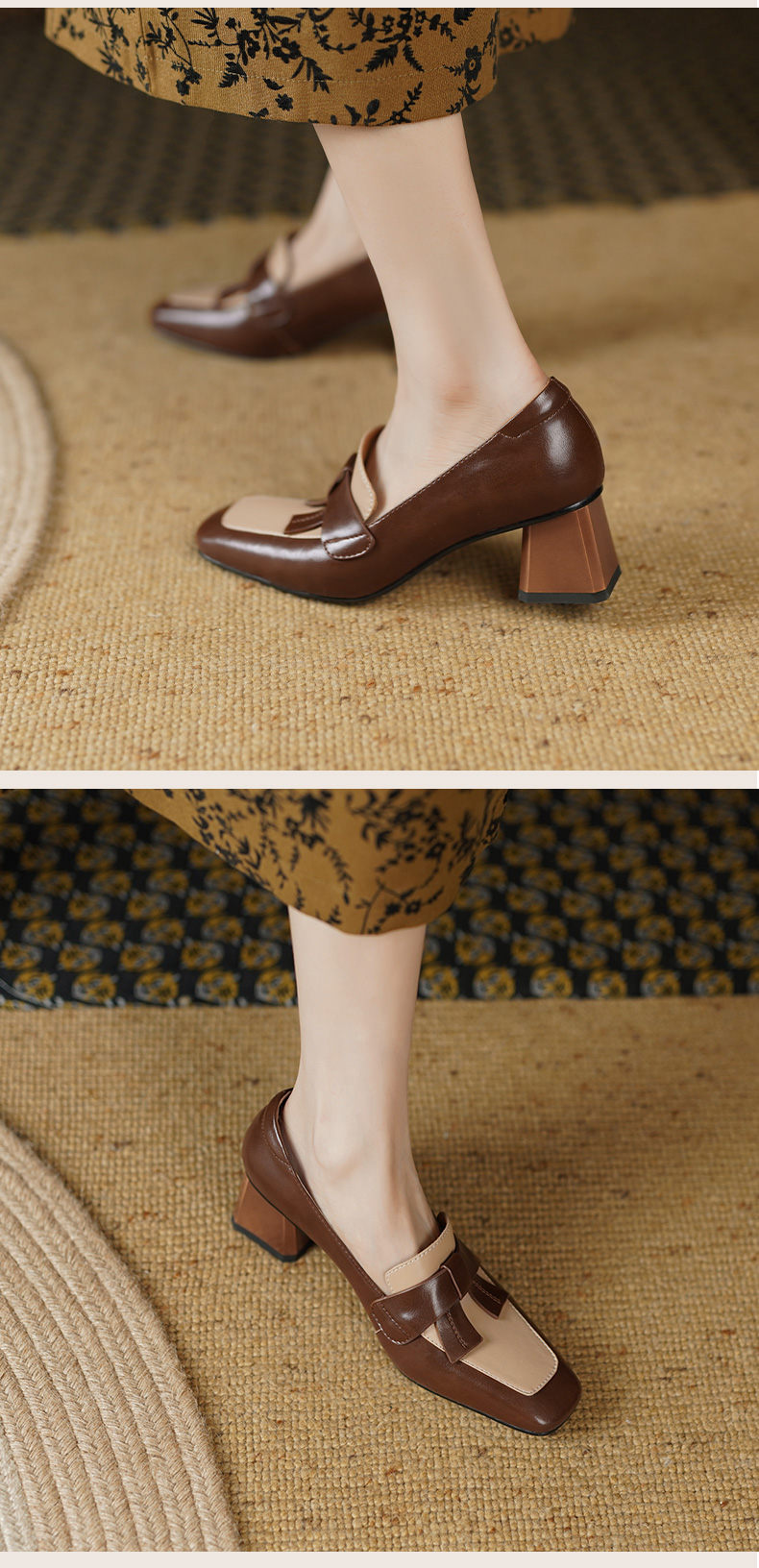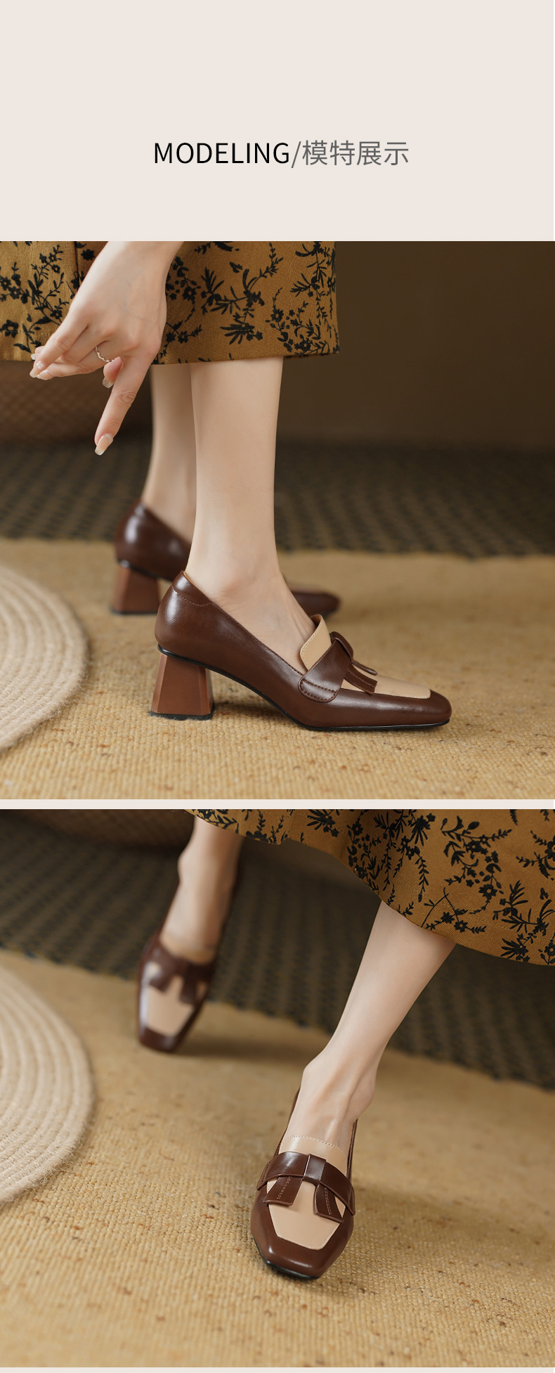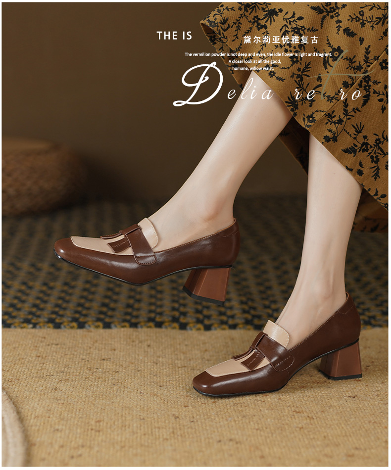 复古拼色小香风,爆款里外全皮单鞋YD-K012