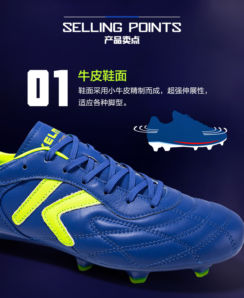 卡尔美足球鞋男FG长钉成人防滑青少年小牛皮专业比赛训练鞋