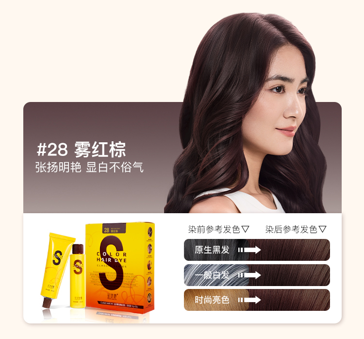 2号自然黑-28号雾红棕-32黑紫可遮盖50-80%白发