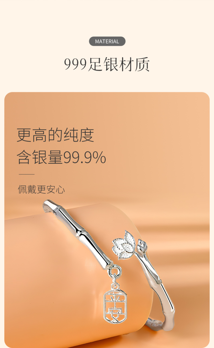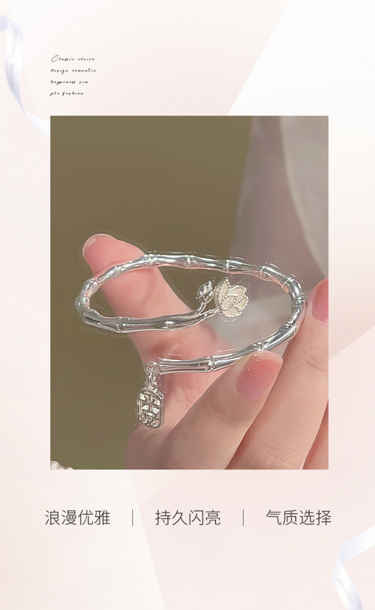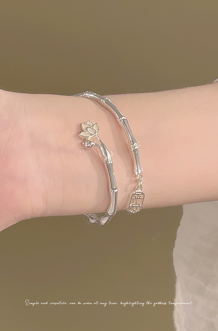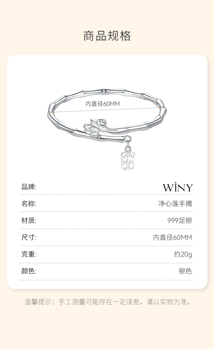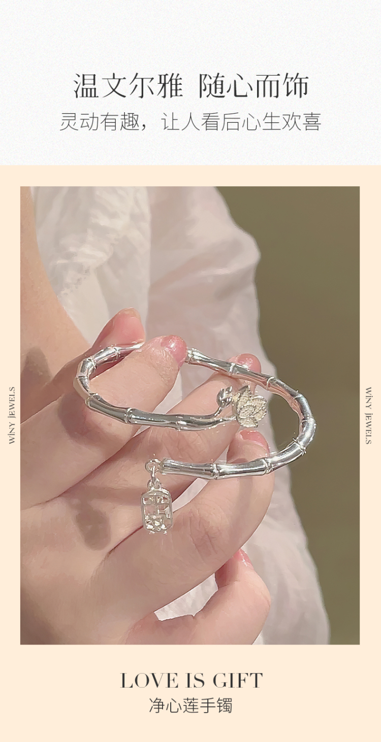 Winy9999足银净心莲手镯新中式小众精致银镯子送女友生日礼物