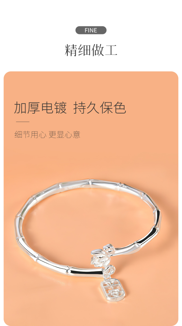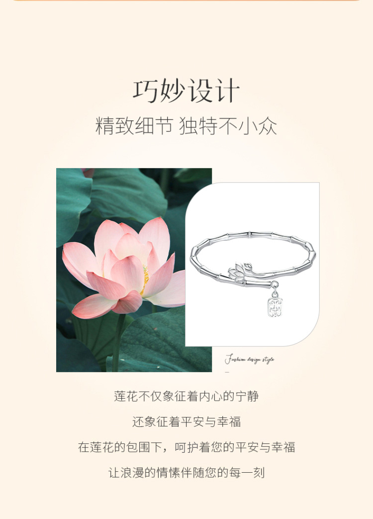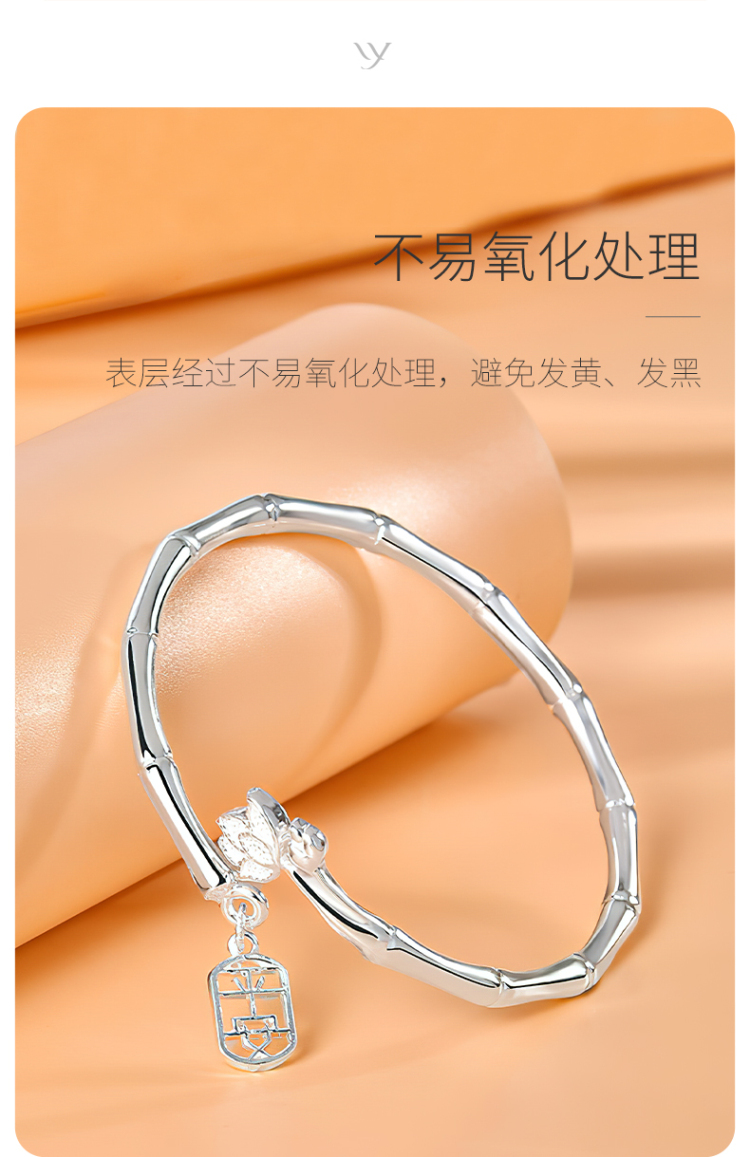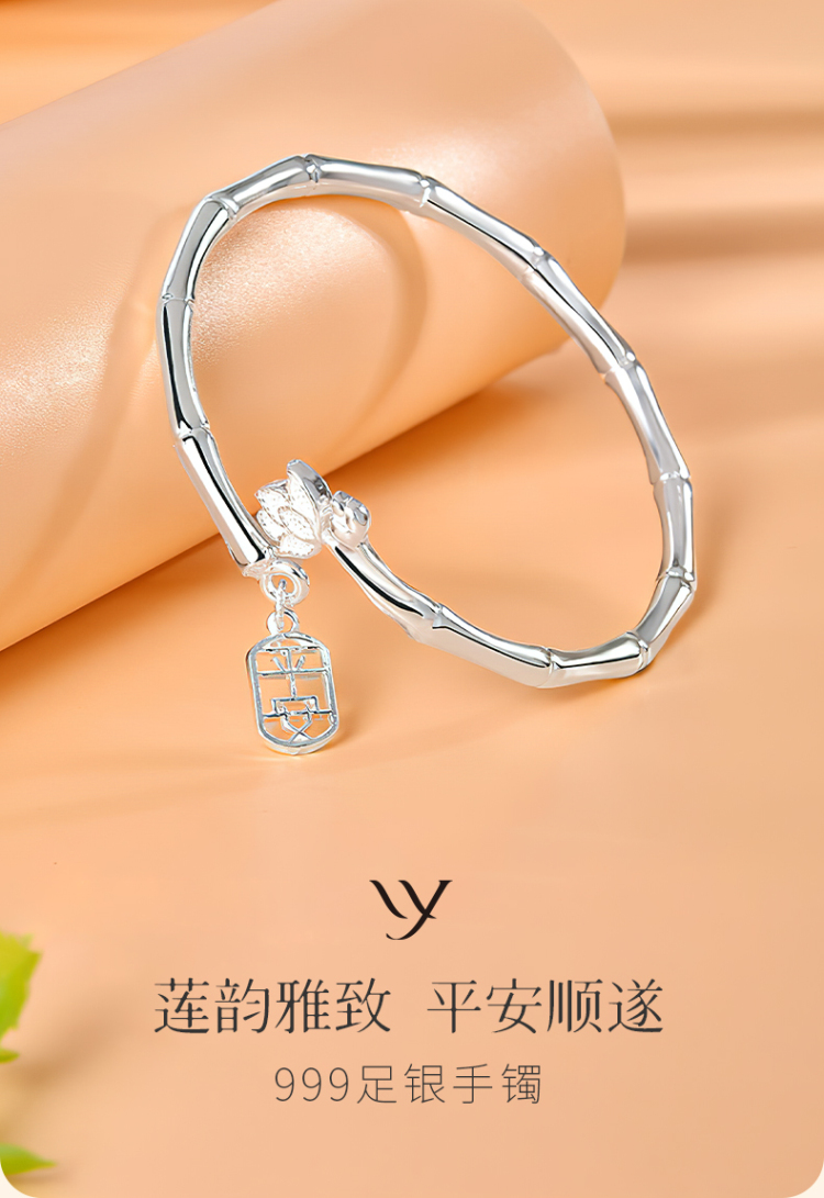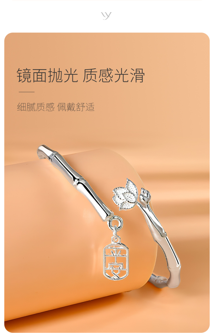 Winy9999足银净心莲手镯新中式小众精致银镯子送女友生日礼物