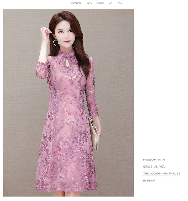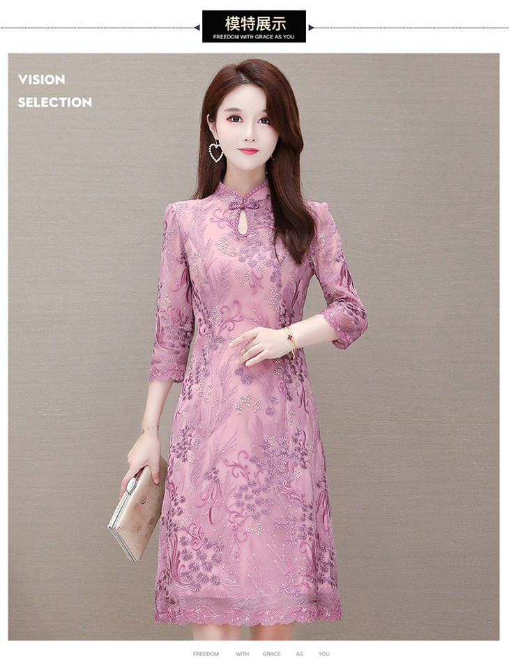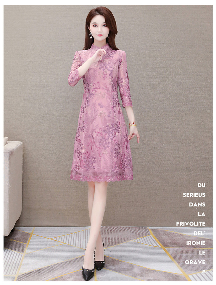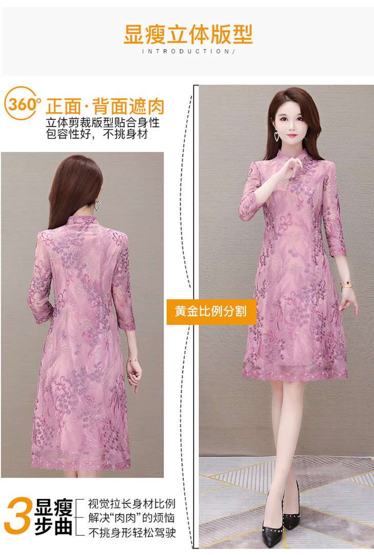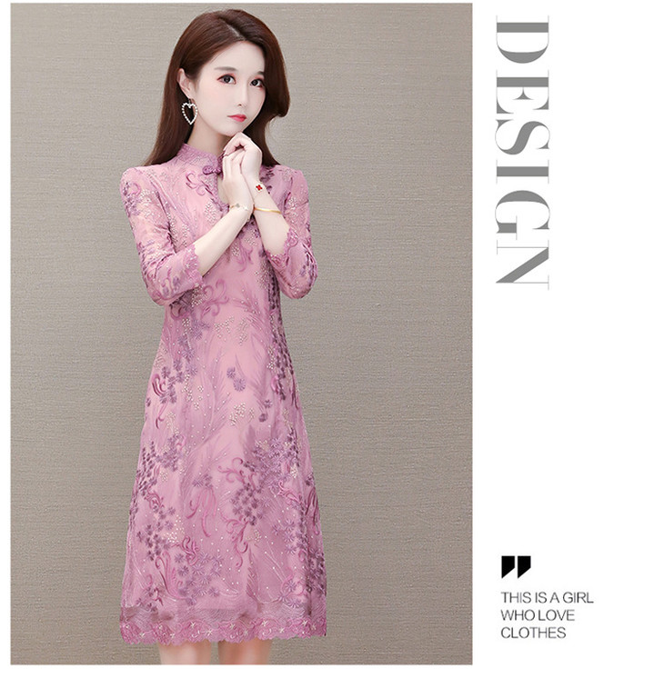 YW-KED91285复古立领,长袖气质改良版刺绣连衣裙