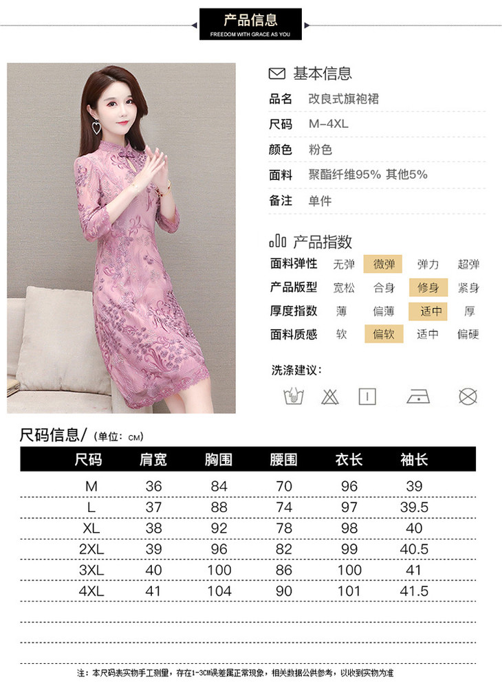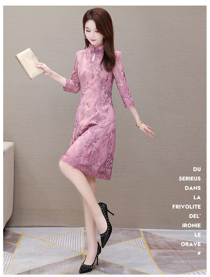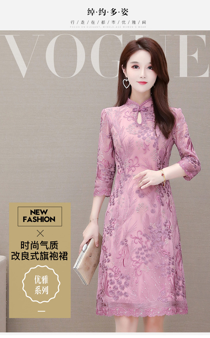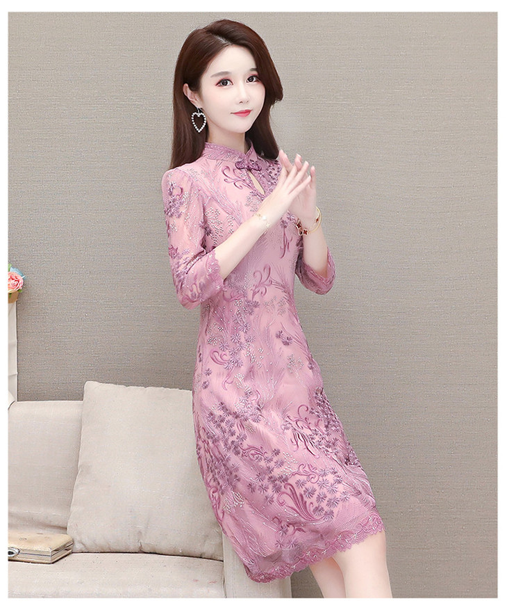 YW-KED91285复古立领,长袖气质改良版刺绣连衣裙