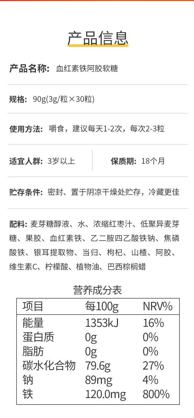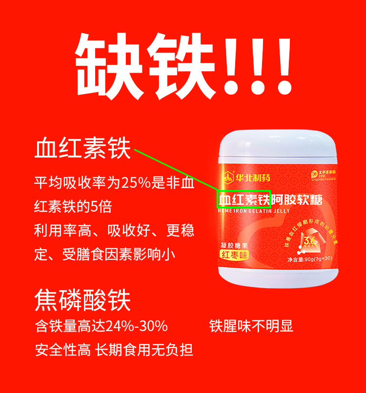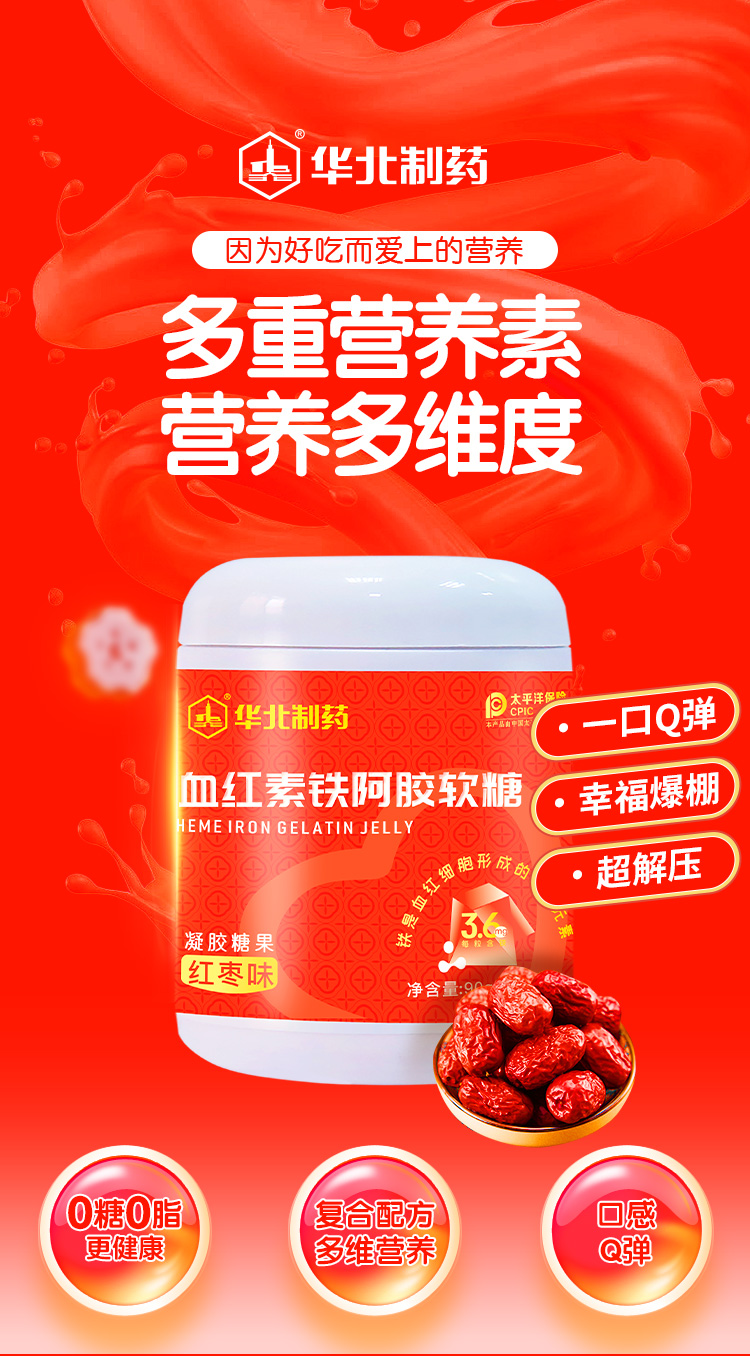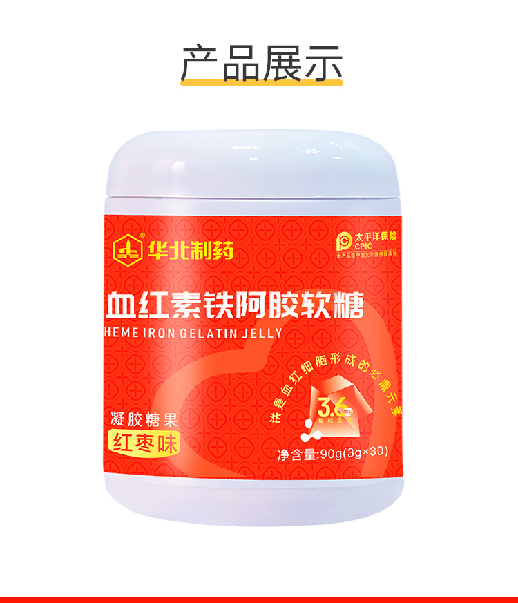 华北制药血红素铁阿胶软糖 红枣味Q弹随心享