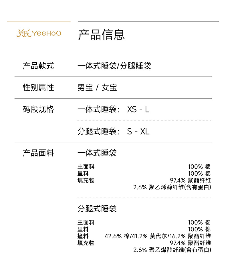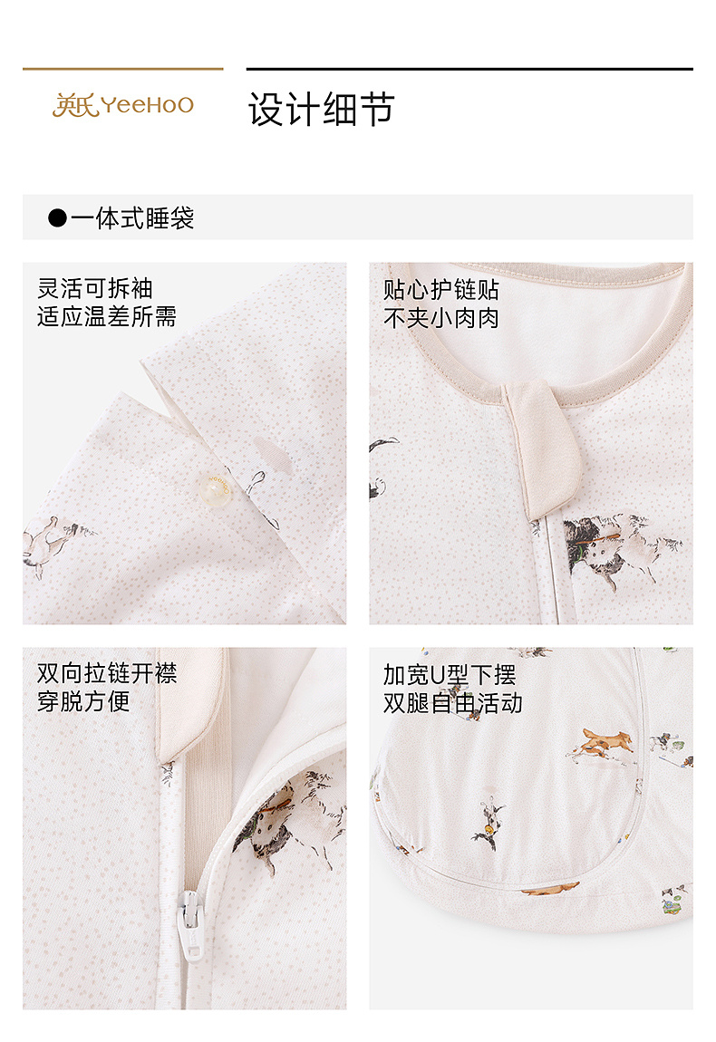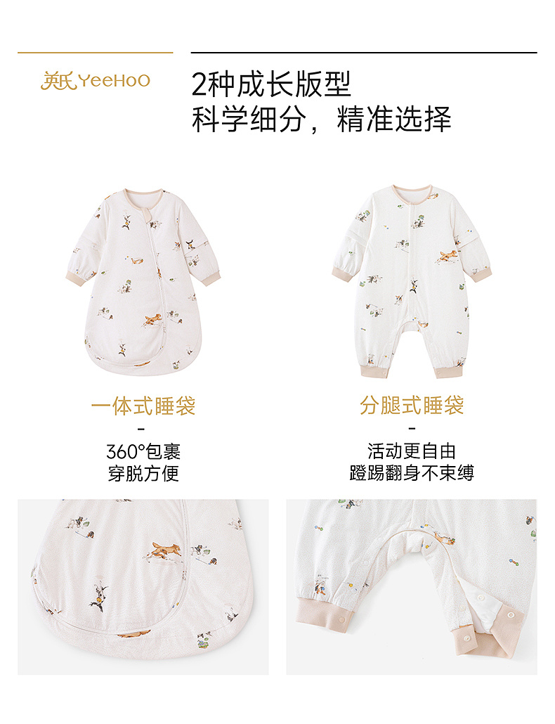 【商场同款】英氏婴儿宝宝睡袋四季通用睡袋纯棉防踢被分腿睡袋