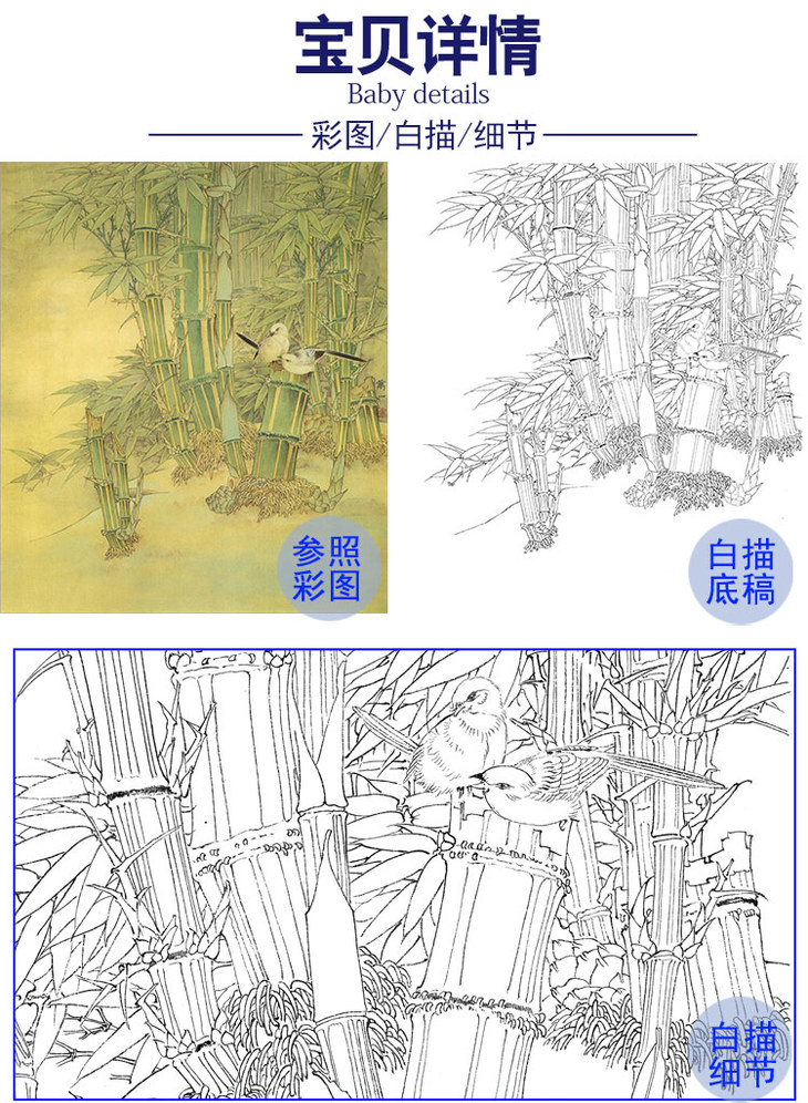 万一工笔花鸟白描底稿-《金竹》斗方小品册页-多种白描尺寸可选-WT02