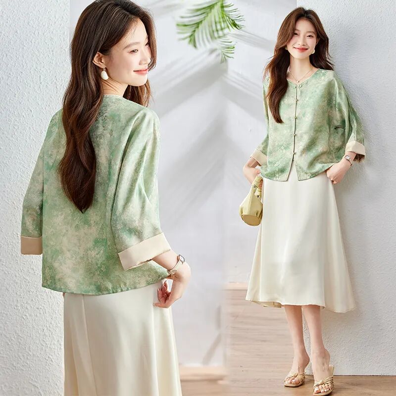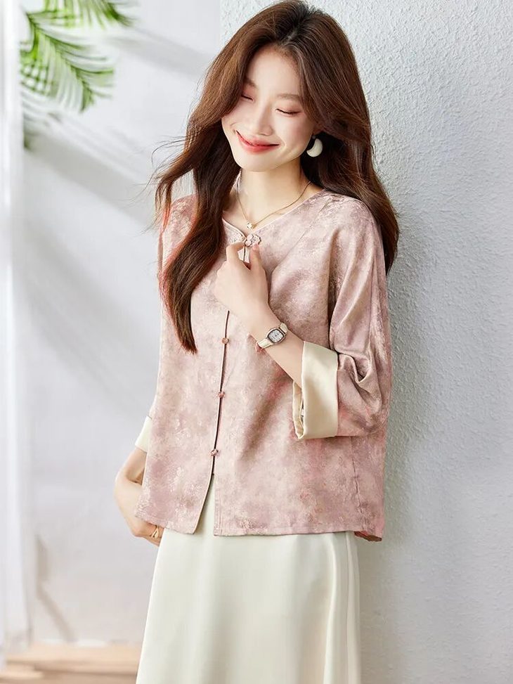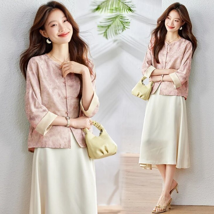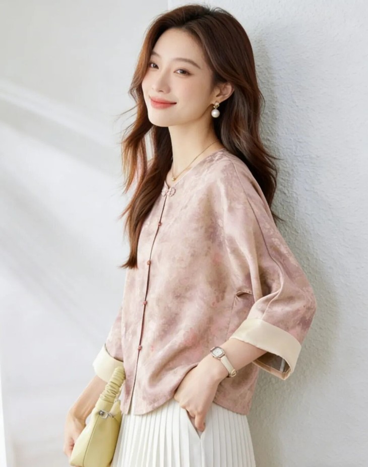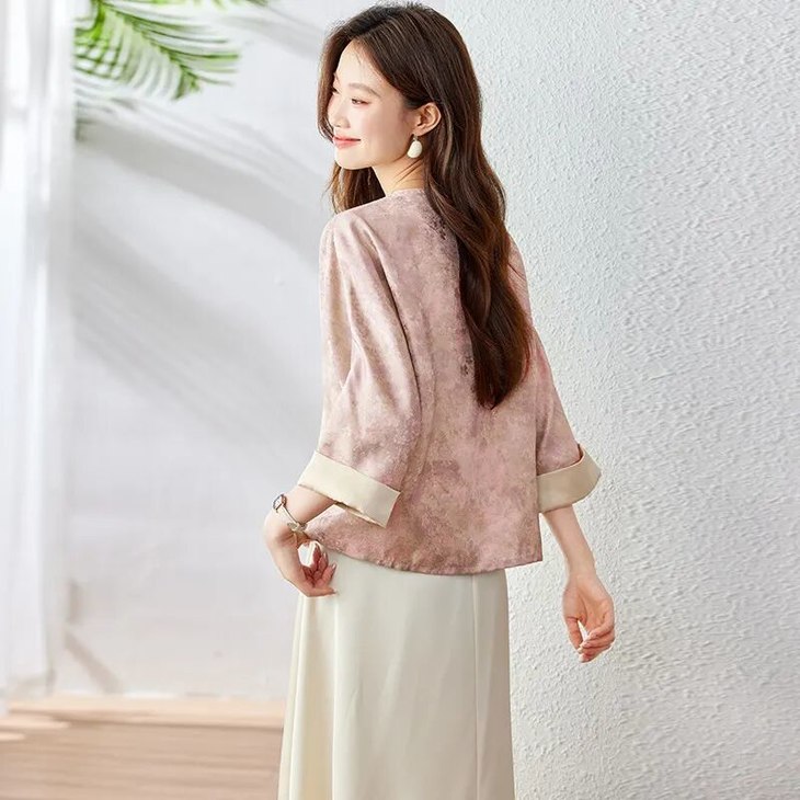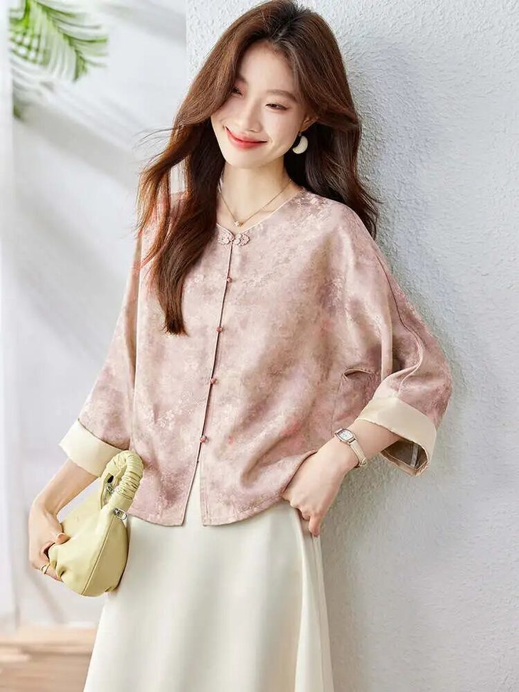新中式晕染盘扣上衣,清透豆绿与温柔豆沙粉两大配色,