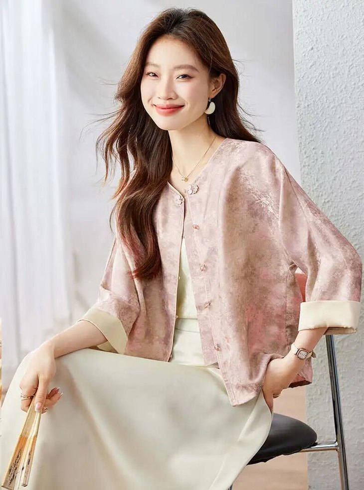 印花遍布衣身却不杂乱,人丝提花立体精致感,既保留东方写意美感,又避免视觉臃肿,让每一处细节都藏着春日诗意,上身自带氛围感滤镜。