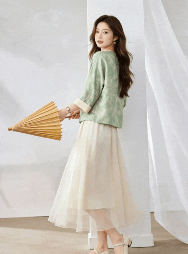 🌿 清透豆绿款:把江南春色穿在身上。