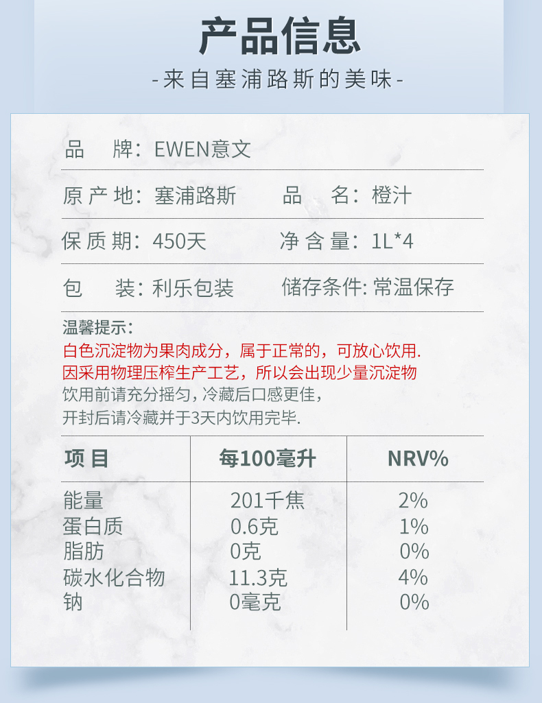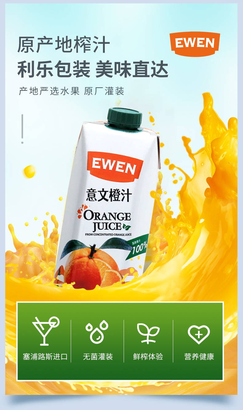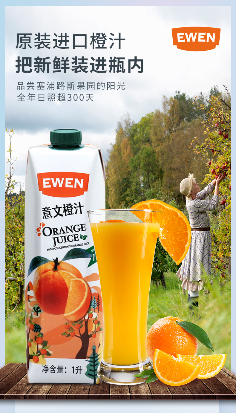 意文(EWEN) 塞浦路斯进口 橙汁 1L/盒